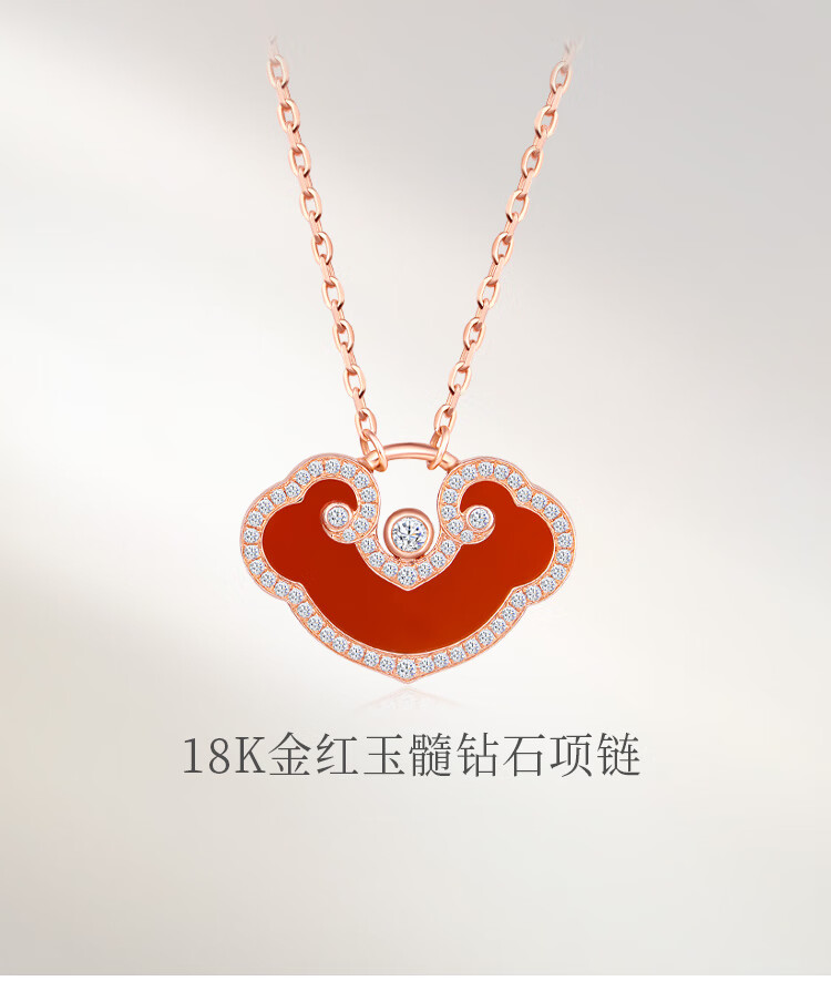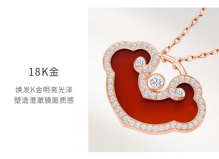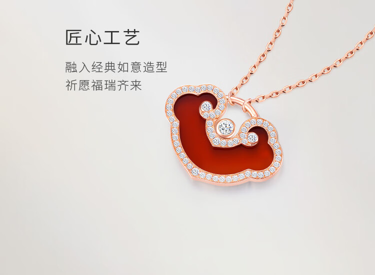 Chow Tai Fook ENZO 18K Rose Gold Diamond Carnelian Ruyi Necklace EZV8185 Birthday Gift EZV8185