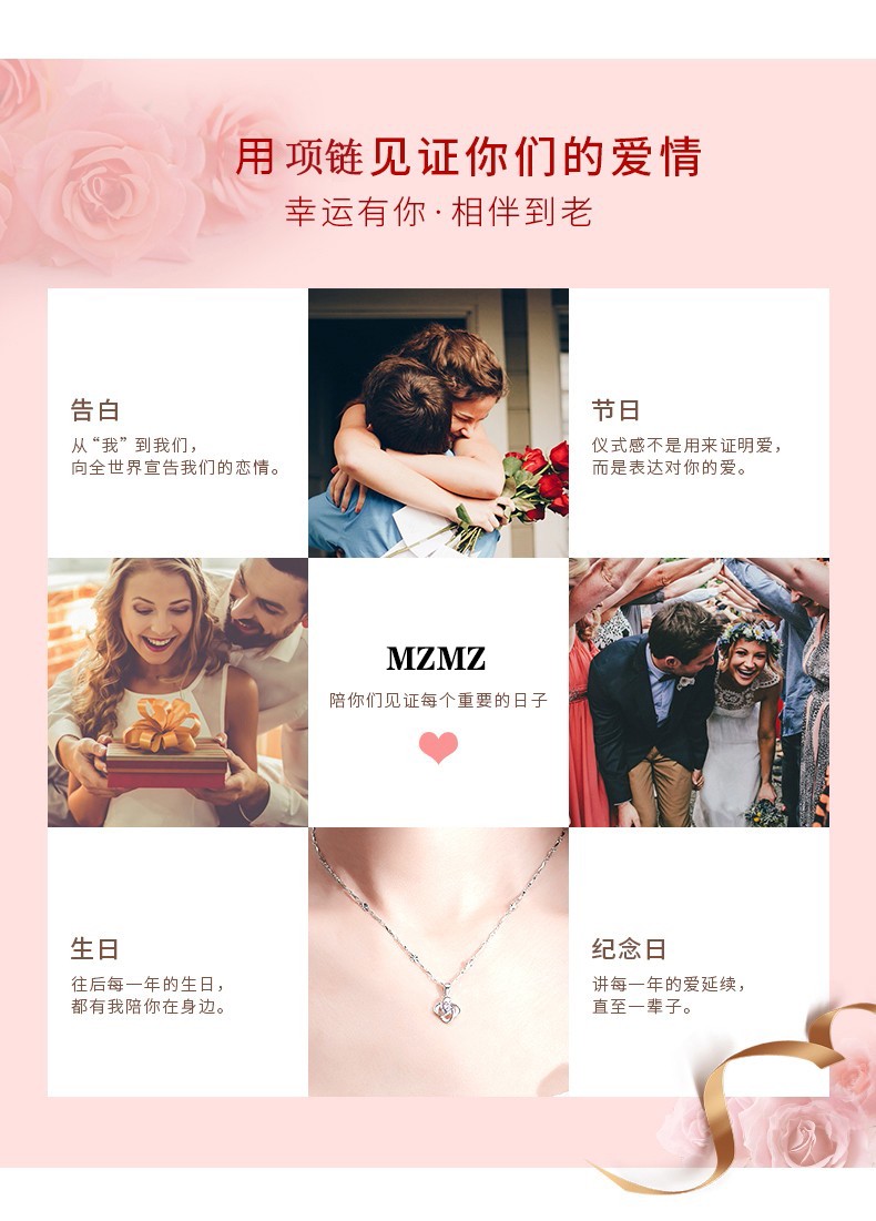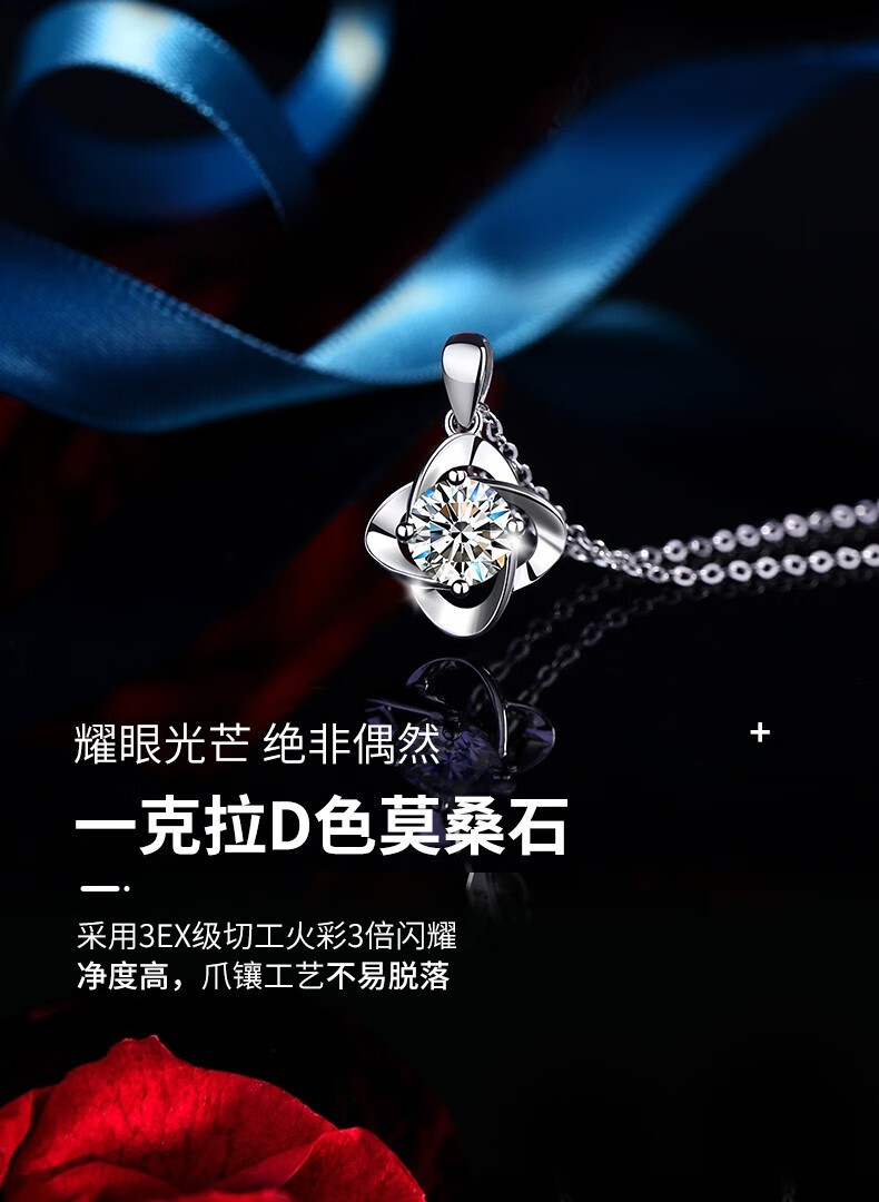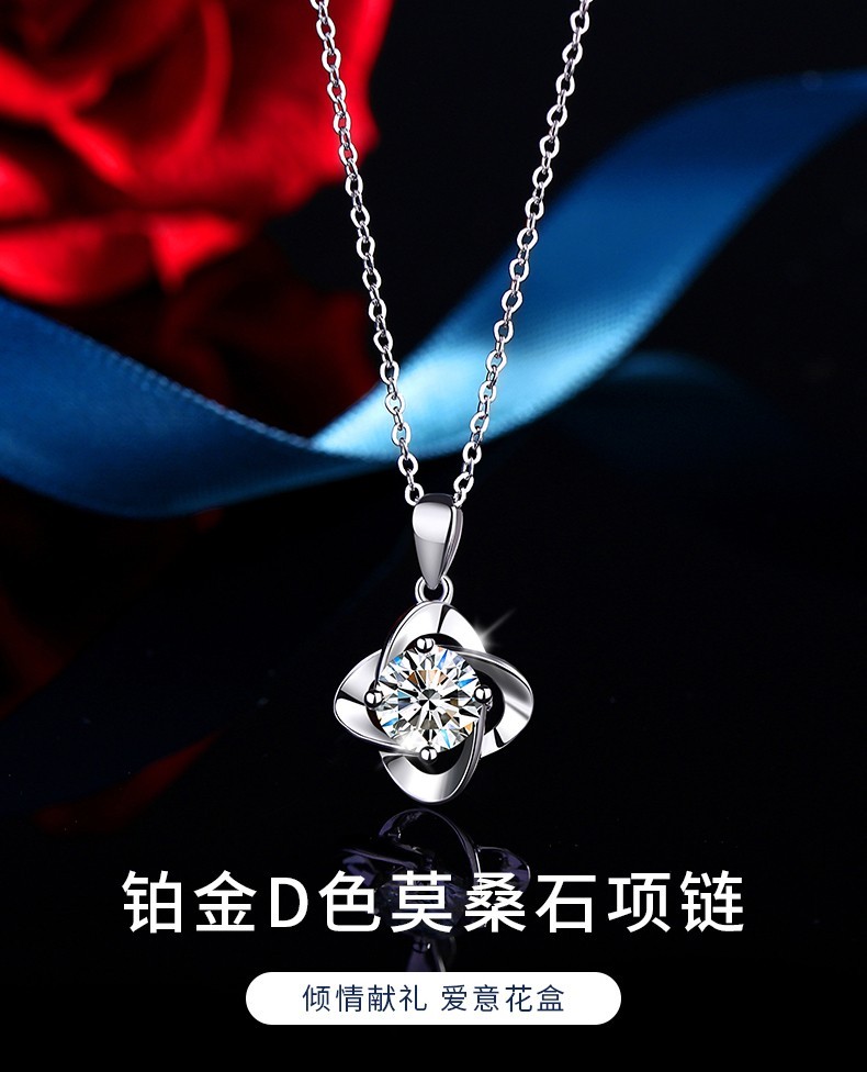 MZMZ platinum four-leaf clover necklace for women PT950 platinum pendant moissanite diamond birthday anniversary gift for girlfriend engraving/greeting card please take this photo