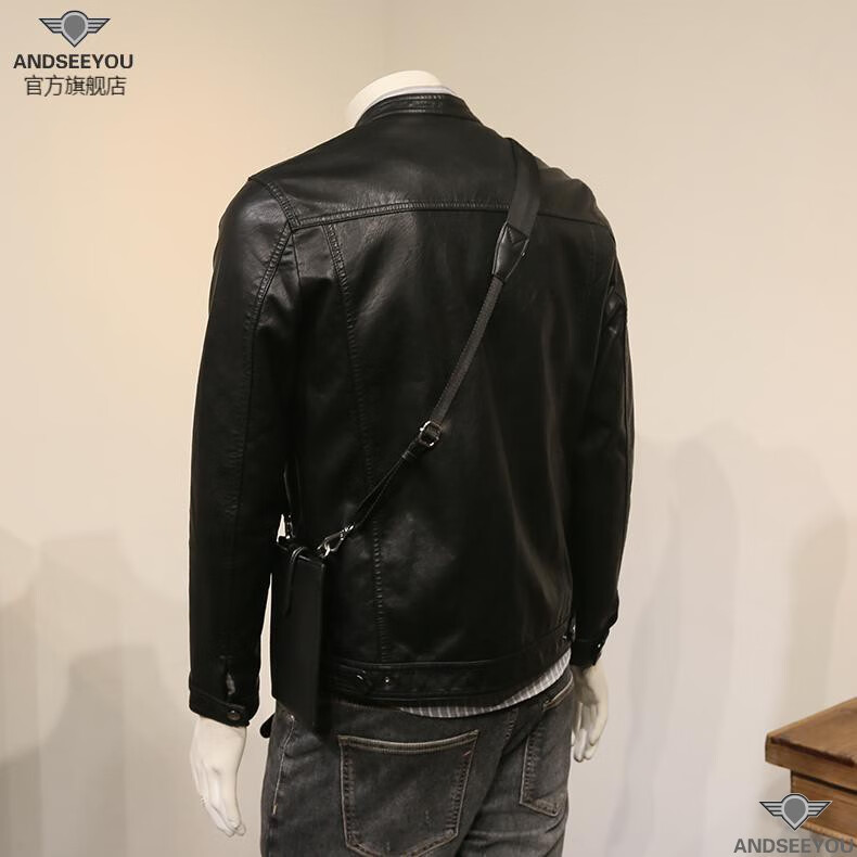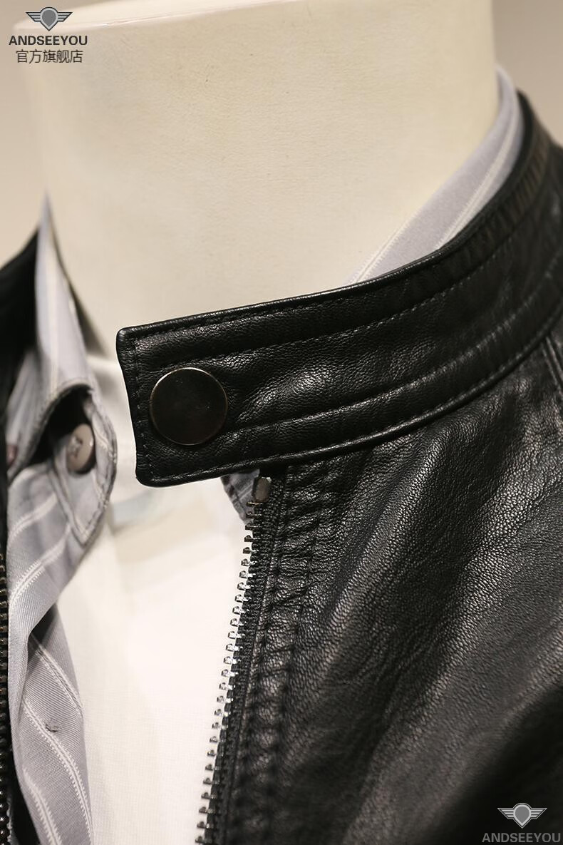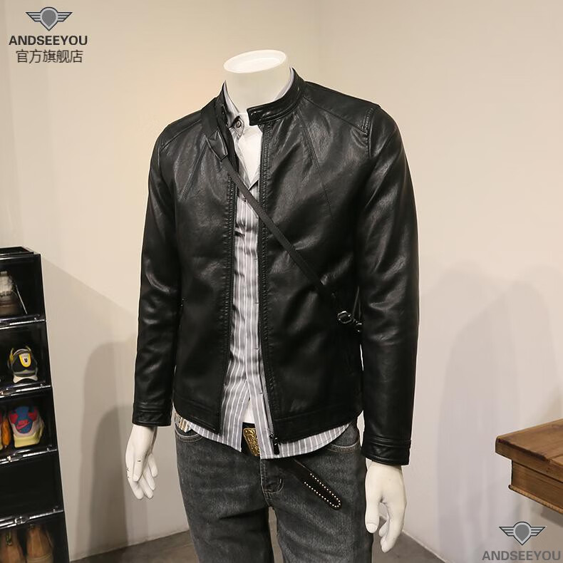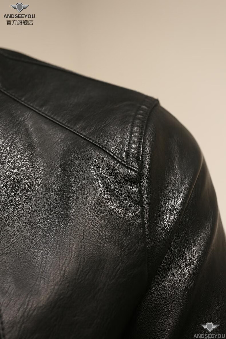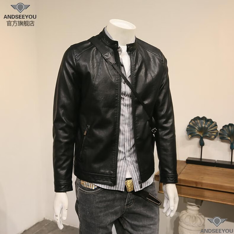 ANDSEEYOU trendy brand men's leather jacket winter new British style slim motorcycle leather jacket coat boutique national fashion men's clothing black XL