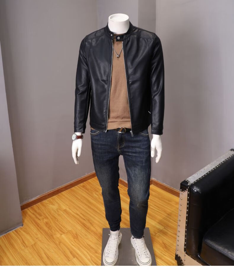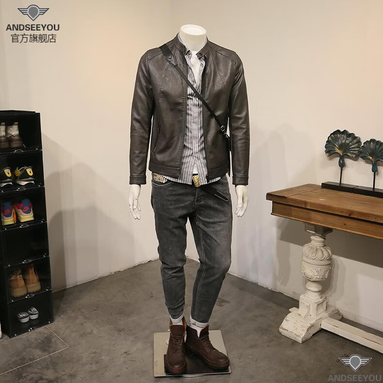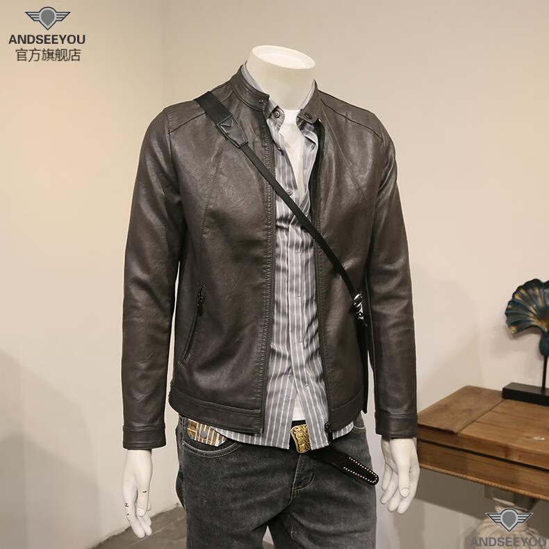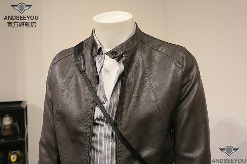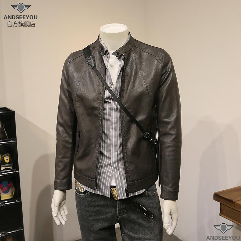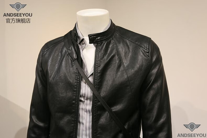 ANDSEEYOU trendy brand men's leather jacket winter new British style slim motorcycle leather jacket coat boutique national fashion men's clothing black XL