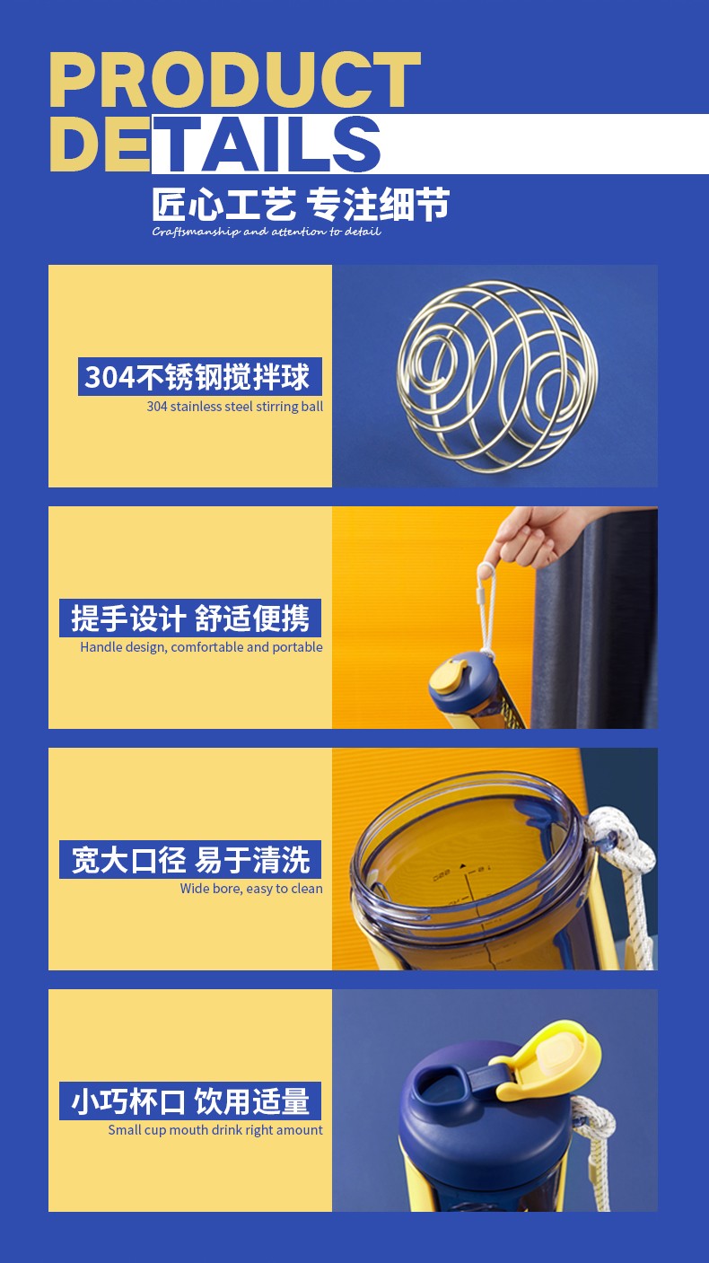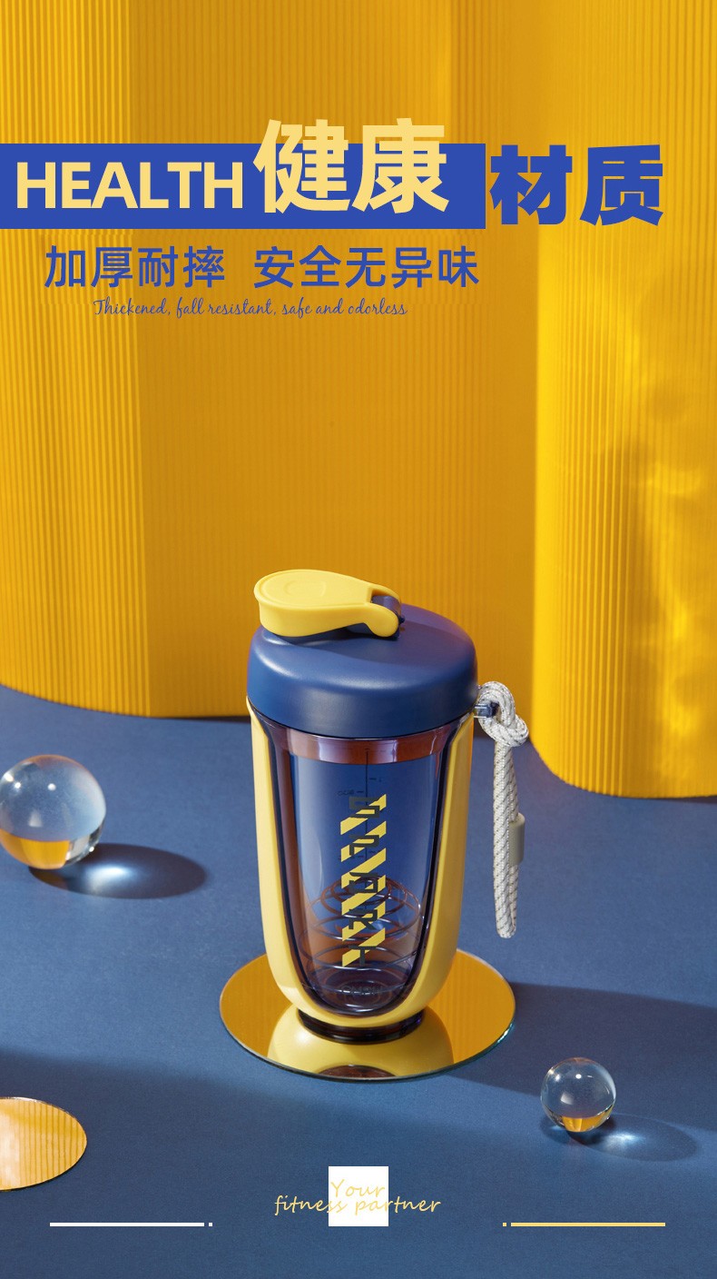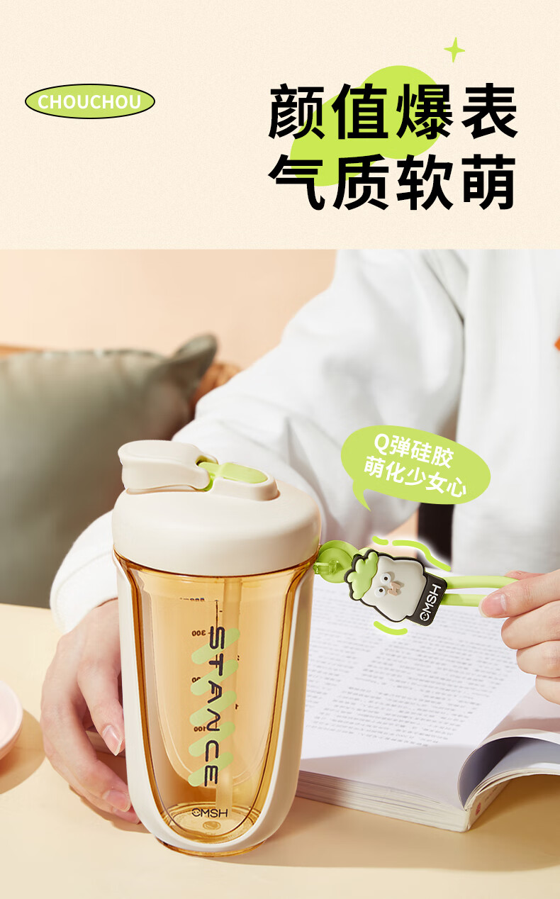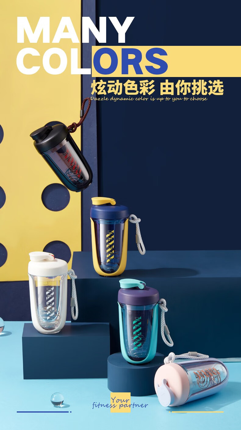 Youjia Liangpin Shaker Cup Fitness Sports Water Cup Men's and Women's Protein Powder Plastic Cup Portable Scale Leak-proof Milkshake Blending Cup Green Direct Drink Style/Stirring Ball 590ml