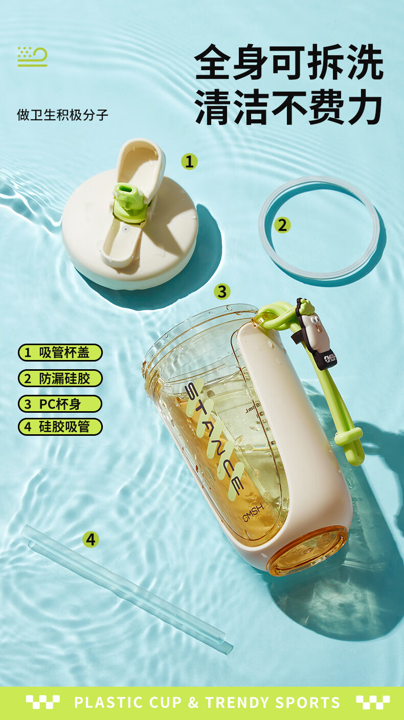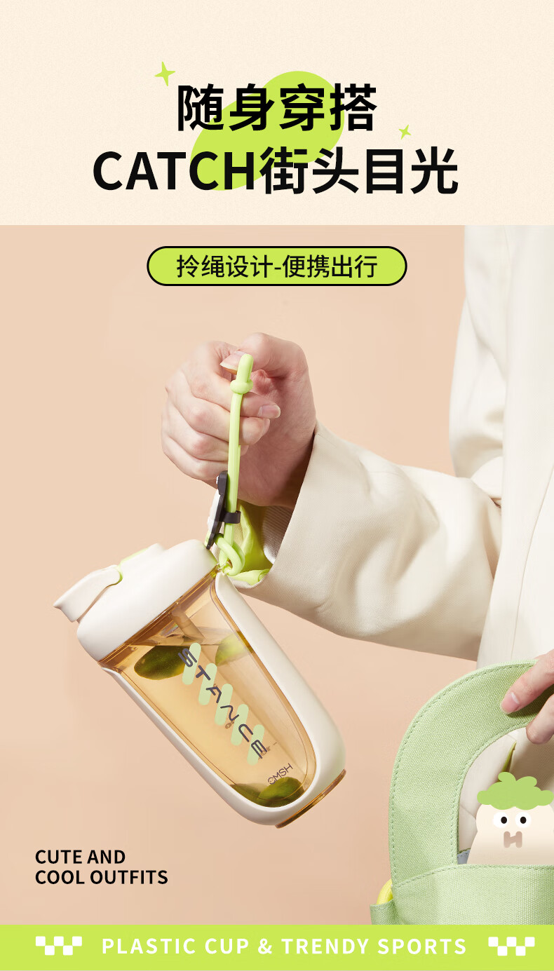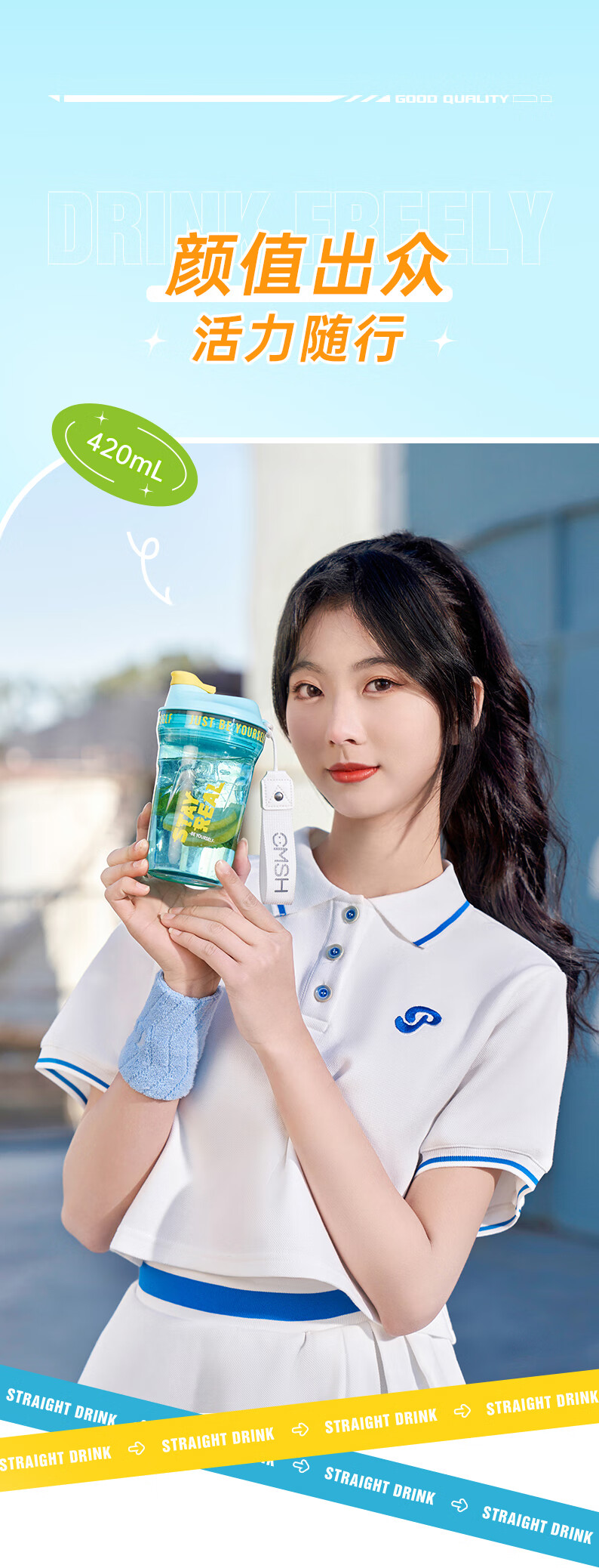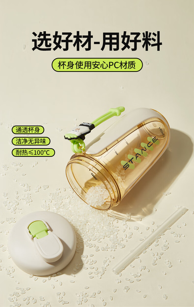 Youjia Liangpin Shaker Cup Fitness Sports Water Cup Men's and Women's Protein Powder Plastic Cup Portable Scale Leak-proof Milkshake Blending Cup Green Direct Drink Style/Stirring Ball 590ml
