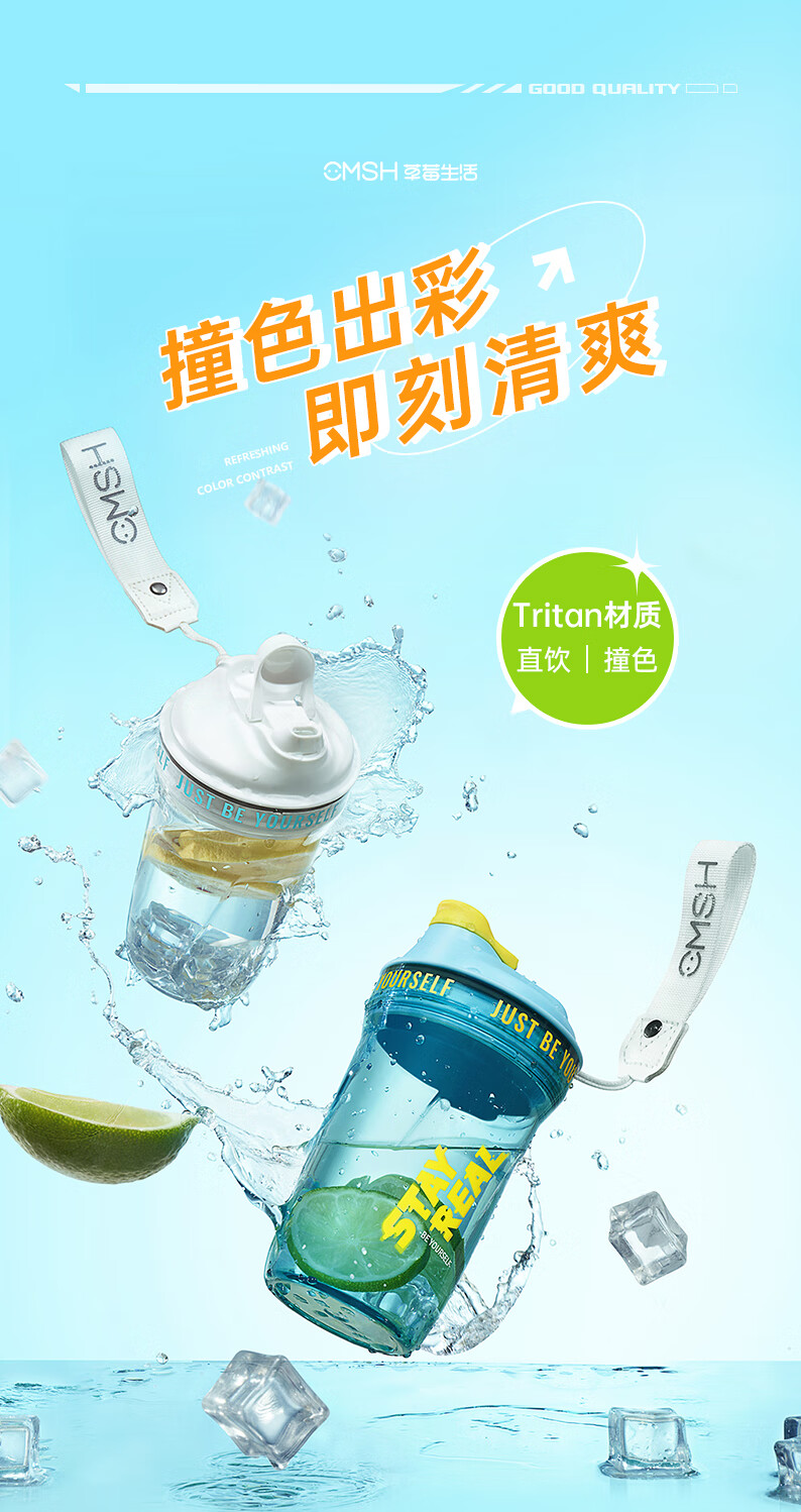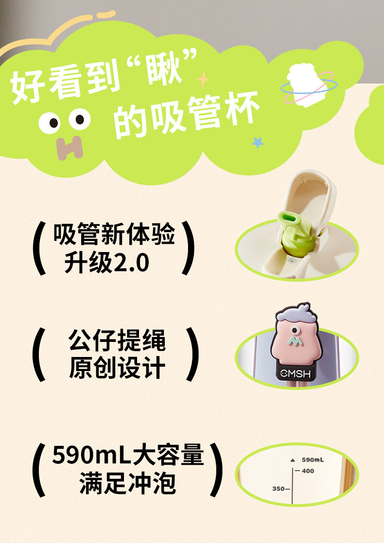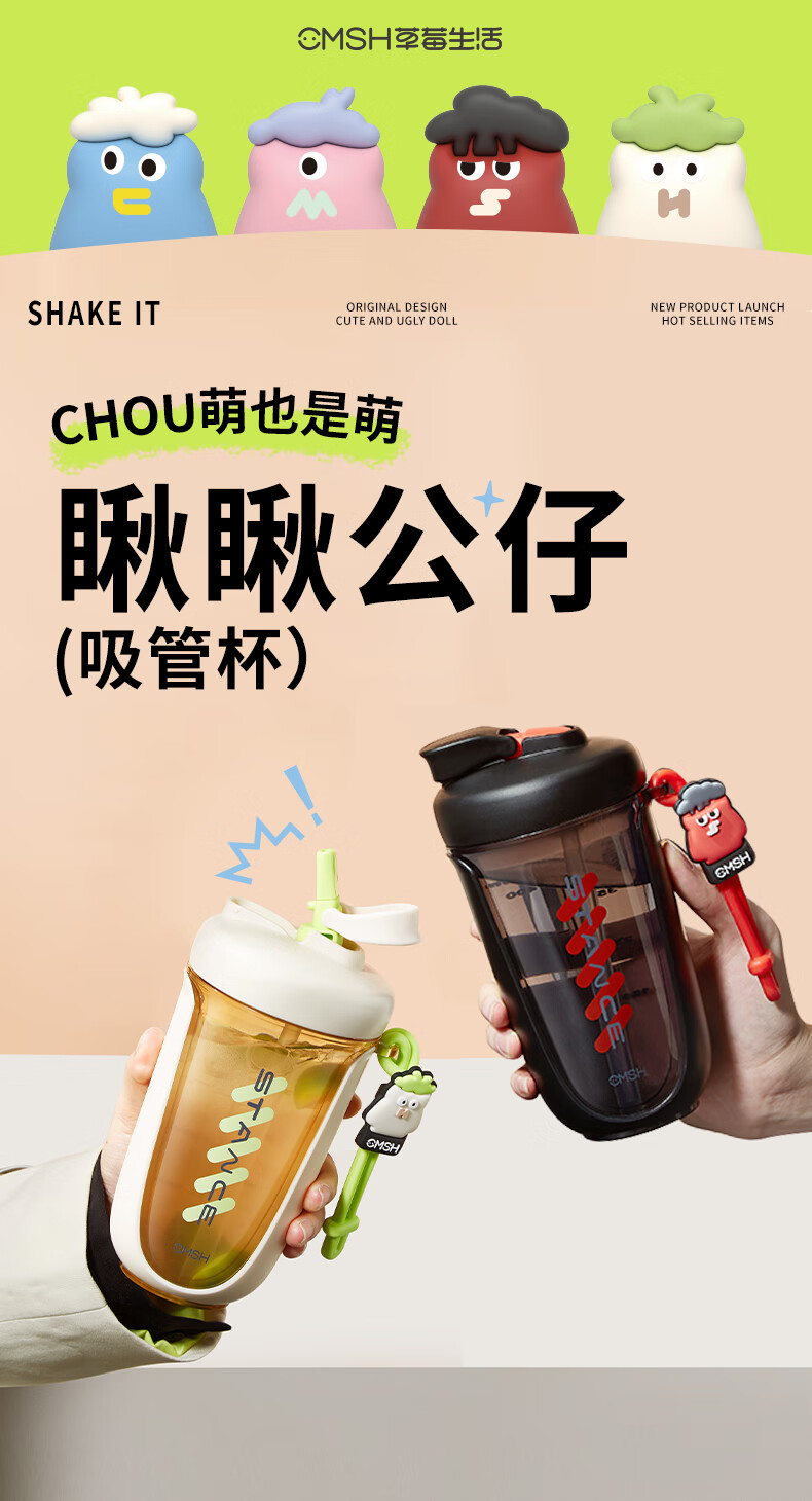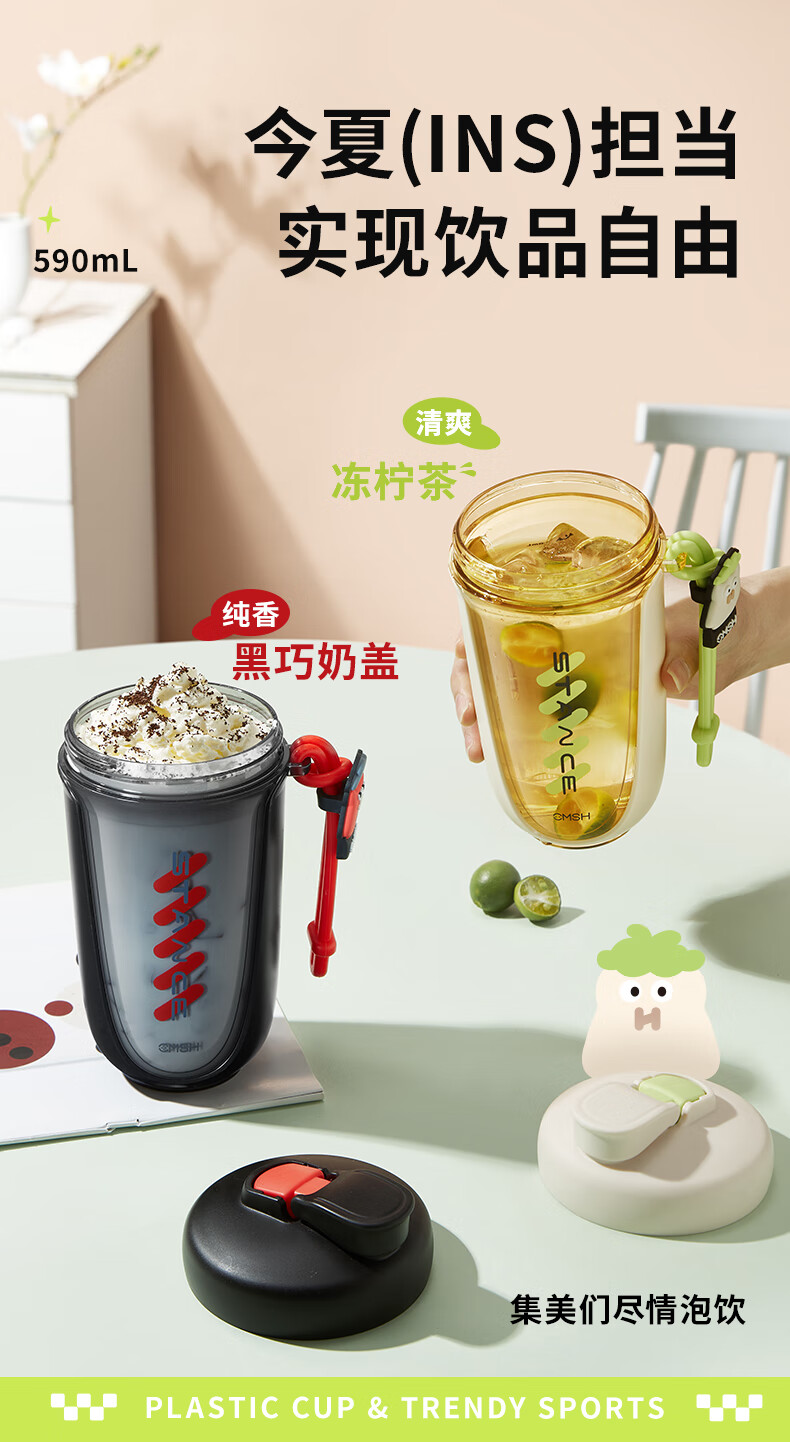 Youjia Liangpin Shaker Cup Fitness Sports Water Cup Men's and Women's Protein Powder Plastic Cup Portable Scale Leak-proof Milkshake Blending Cup Green Direct Drink Style/Stirring Ball 590ml