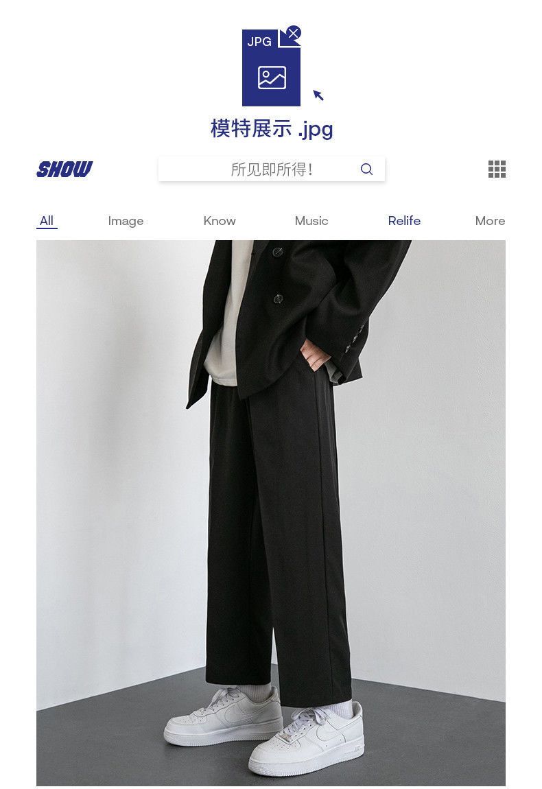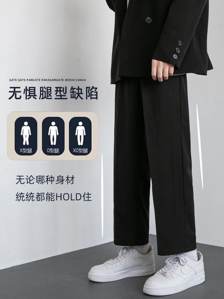 Yixi pants men's spring, summer and autumn trendy loose sports casual pants wide-leg suit pants men's straight black nine-point pants black L recommended 100-120 Jin Jin equals 0.5 kg