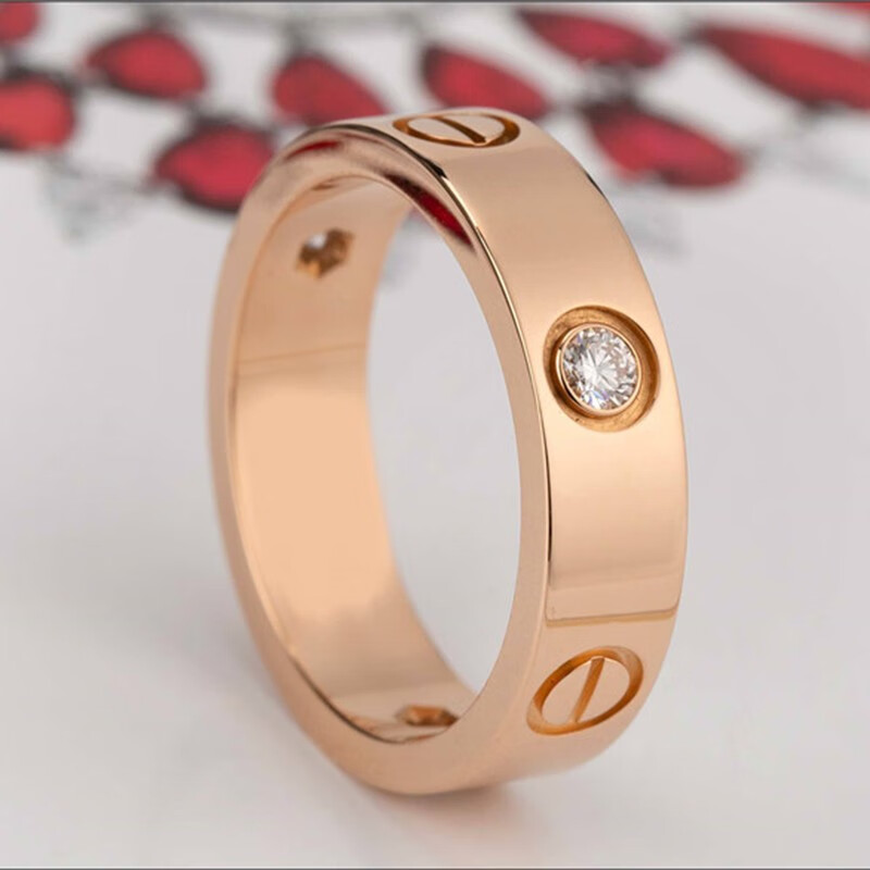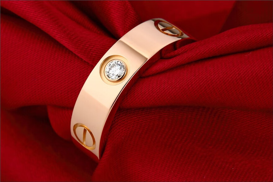 Cartier rings for men and women, same style for couples, 5.5 mm wide, inlaid with 3 diamonds, LOVE wedding ring, Chinese Valentine's Day gift, B4087500 18K rose gold 54