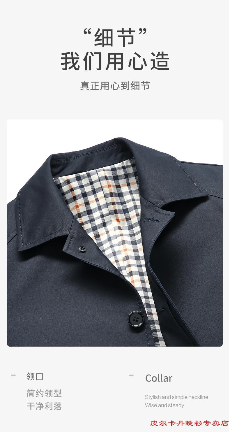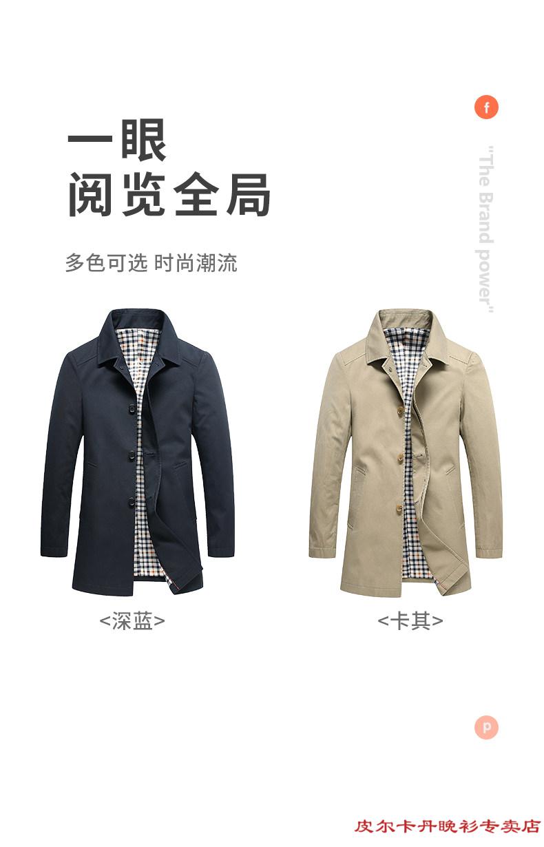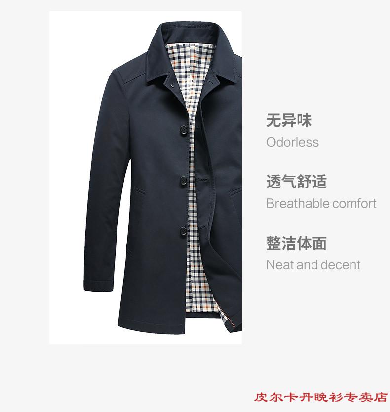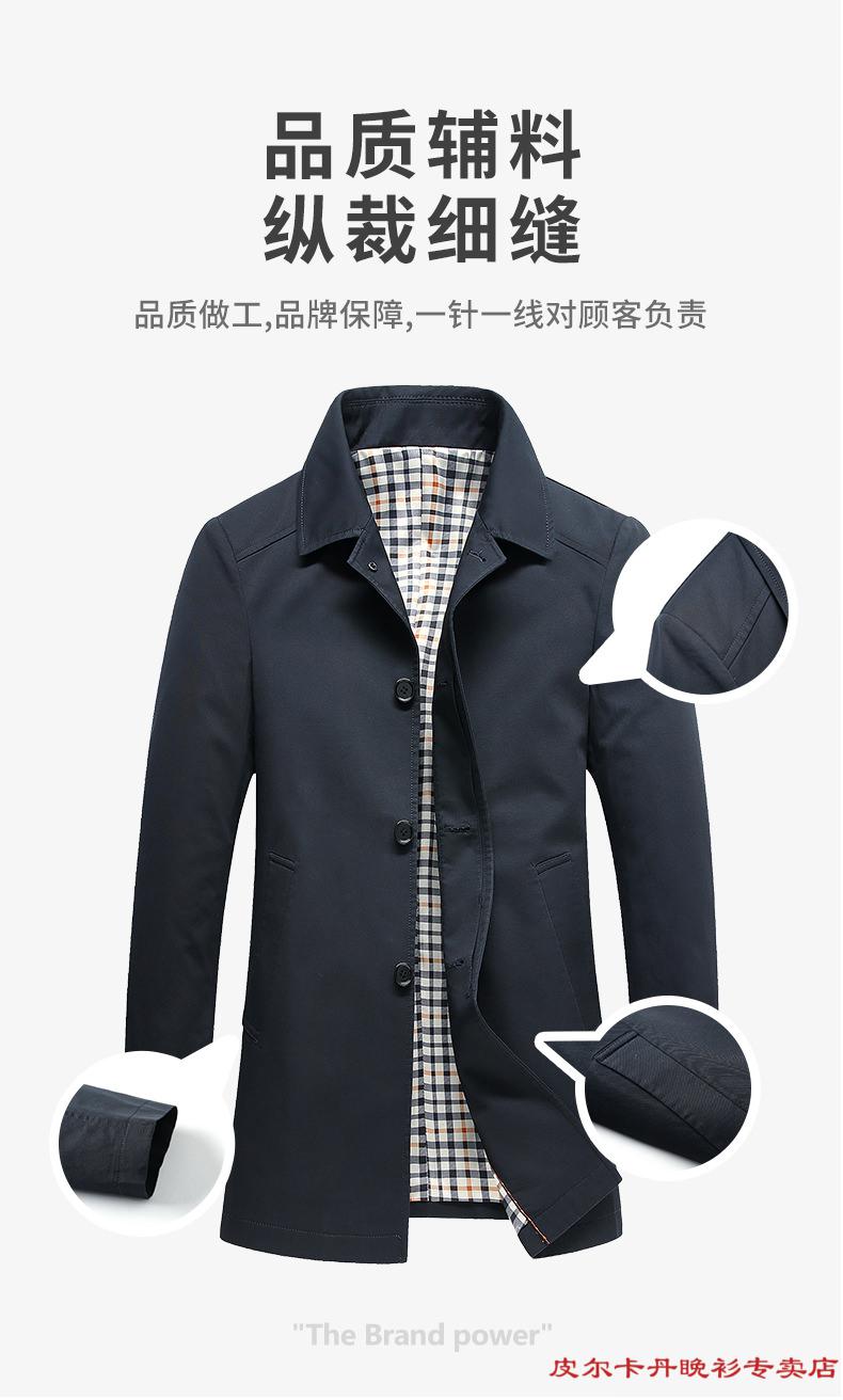 Pierre Cardin high-end windbreaker men's mid-length pure cotton 2026 new slim business casual spring and autumn official leadership jacket black XL 180