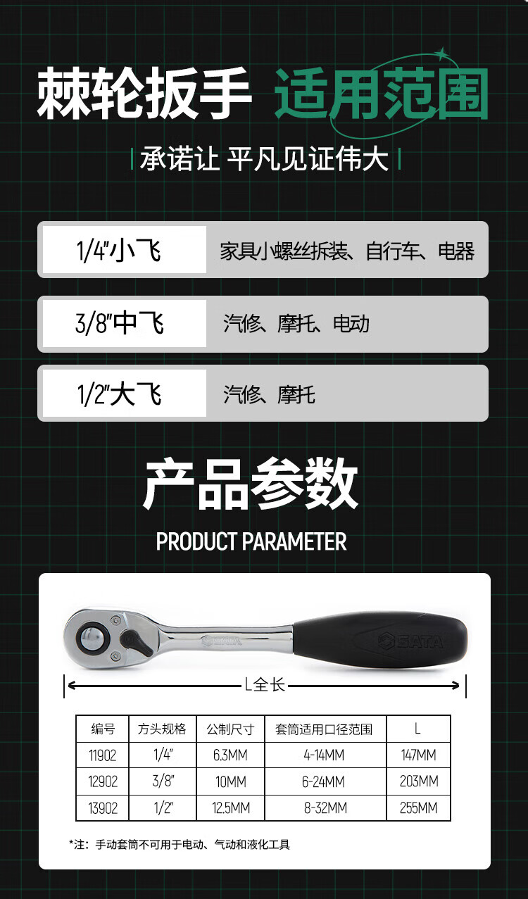 SATA Tools 11902 Quick Release Ratchet Wrench Large Flying Medium Flying Small Flying Socket Wrench Multiple Specifications Available Suitable for 6.3mm Series 11902