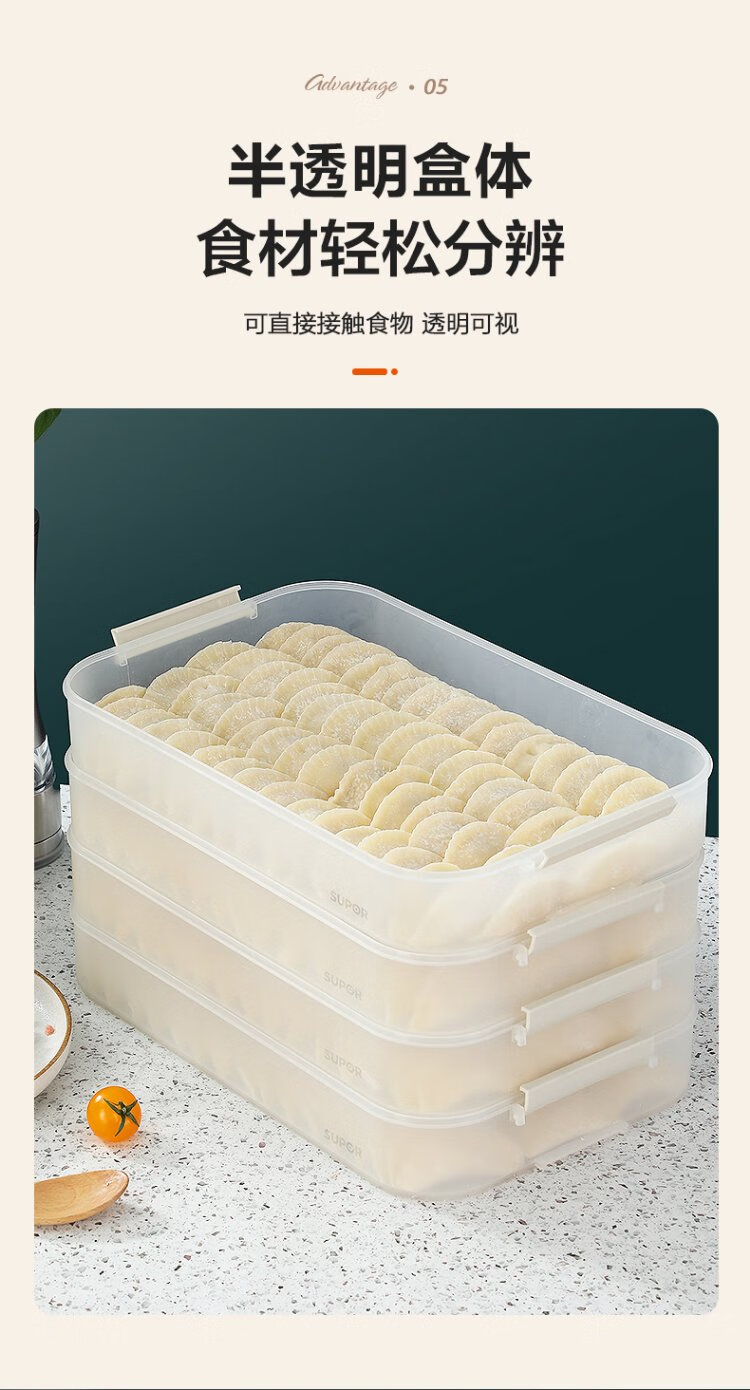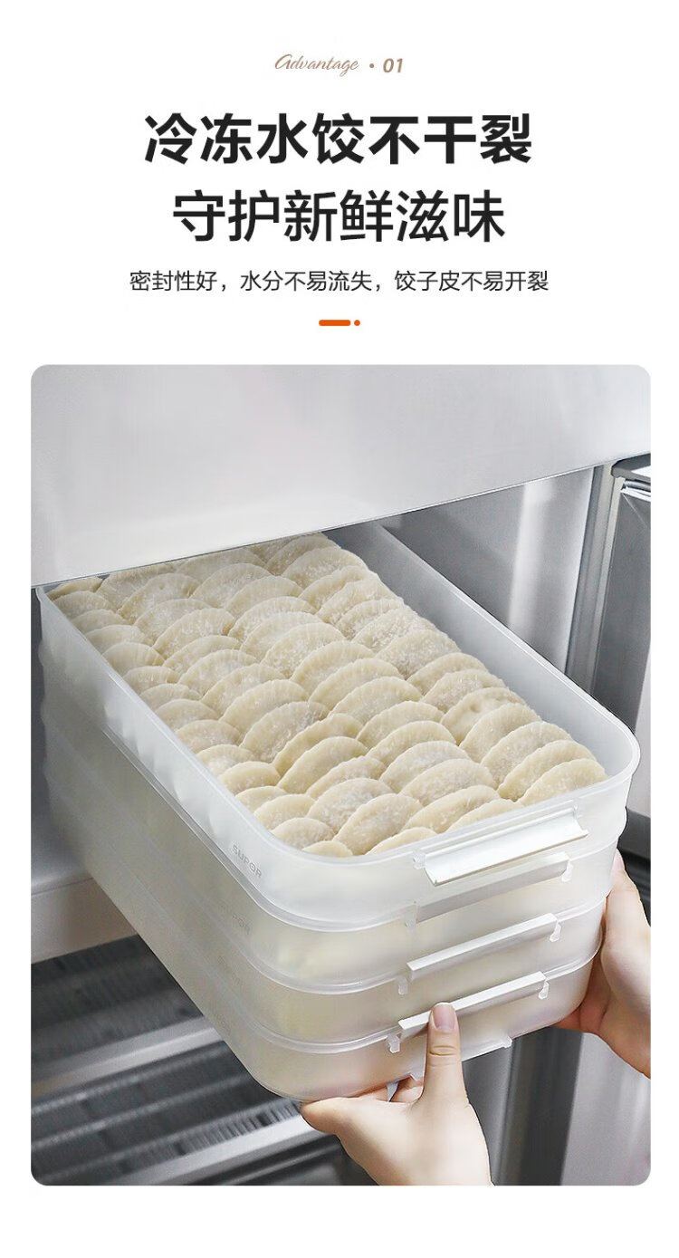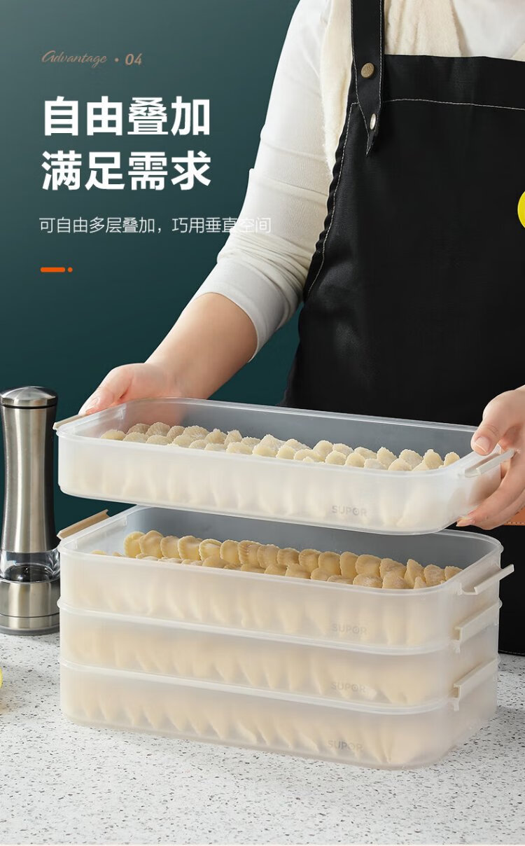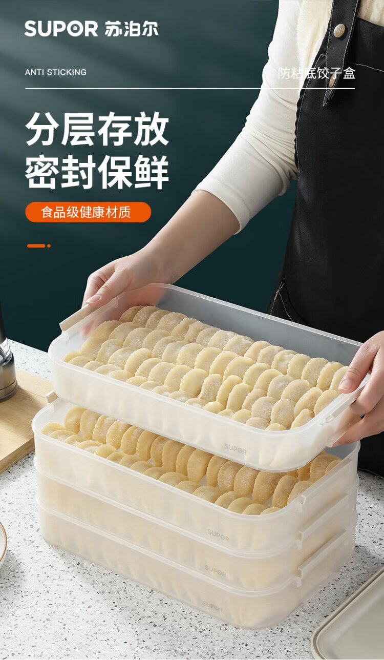 SUPOR dumpling refrigerator storage box dumpling box food grade special refrigerator twist quick freezing dumpling box fresh wonton box multifunctional dumpling box 2 layers 1 lid food grade PP material & non-stick bottom
