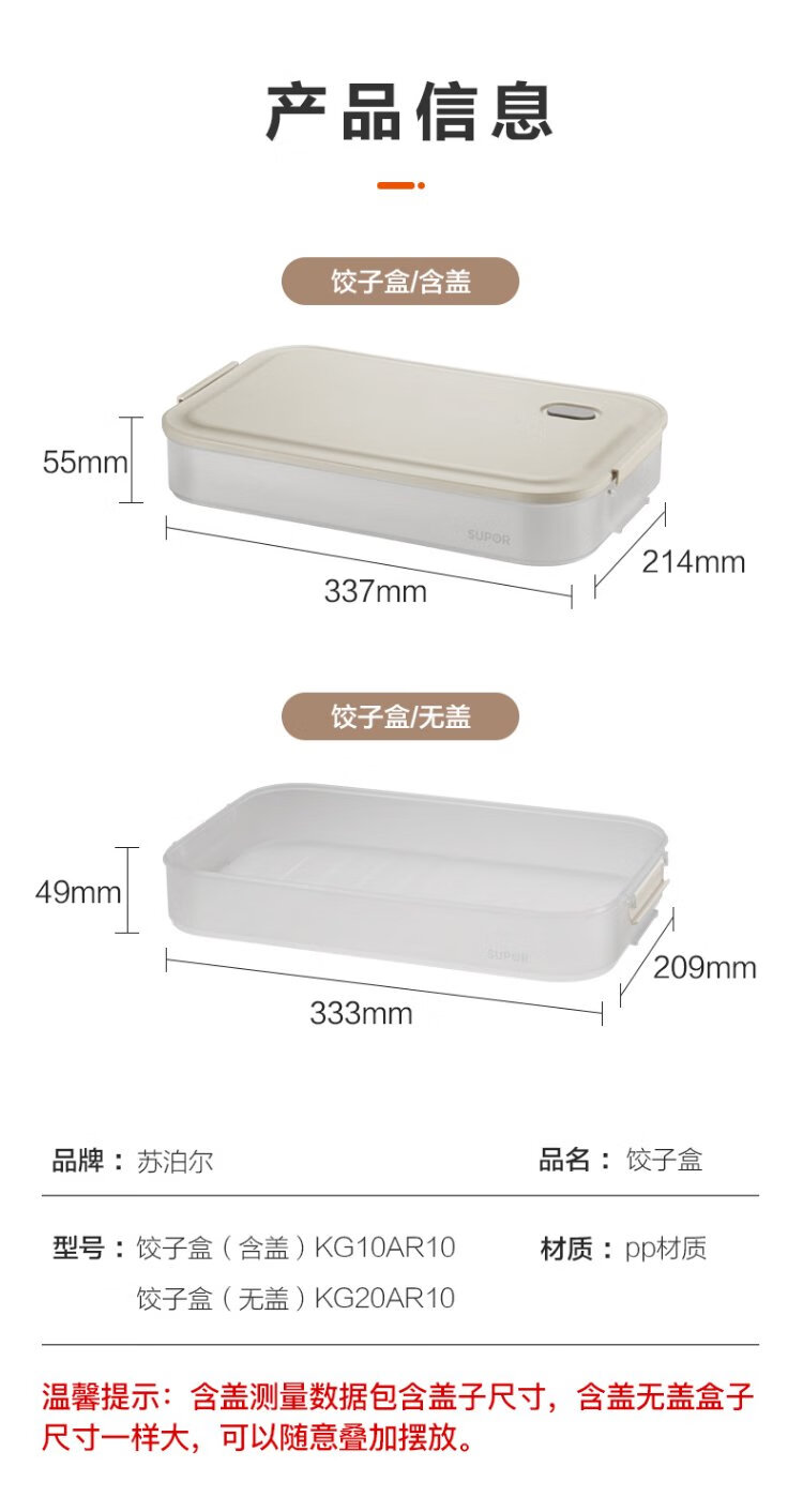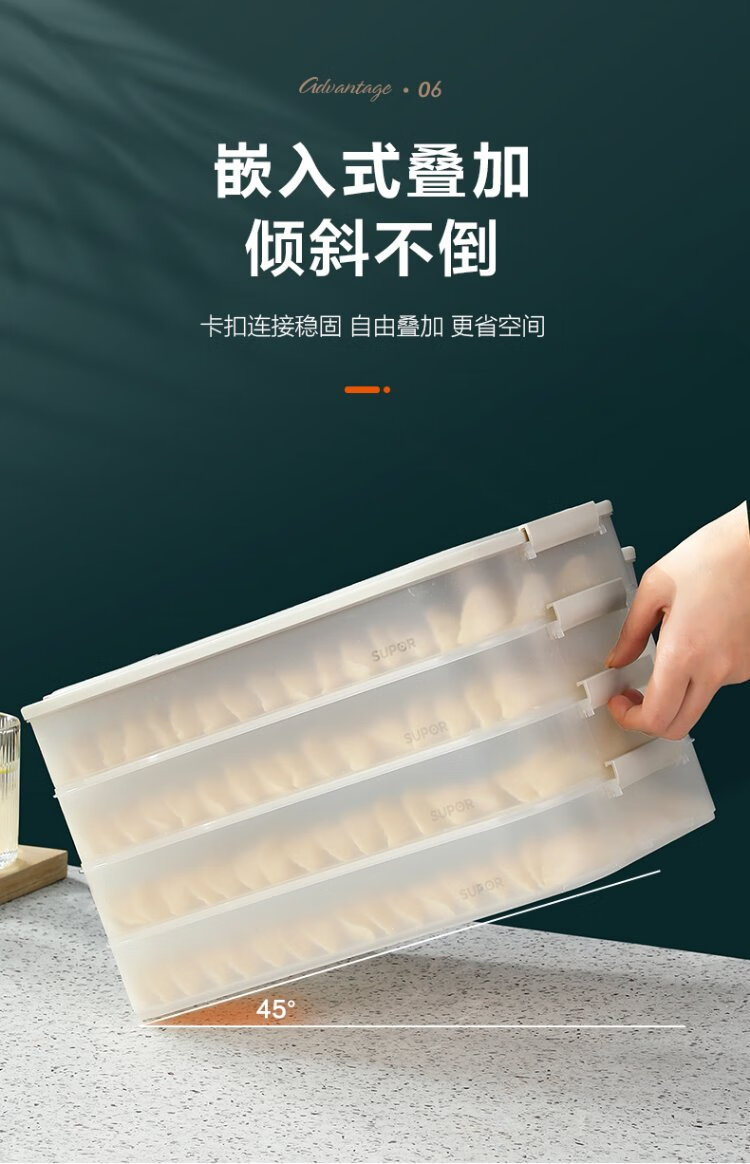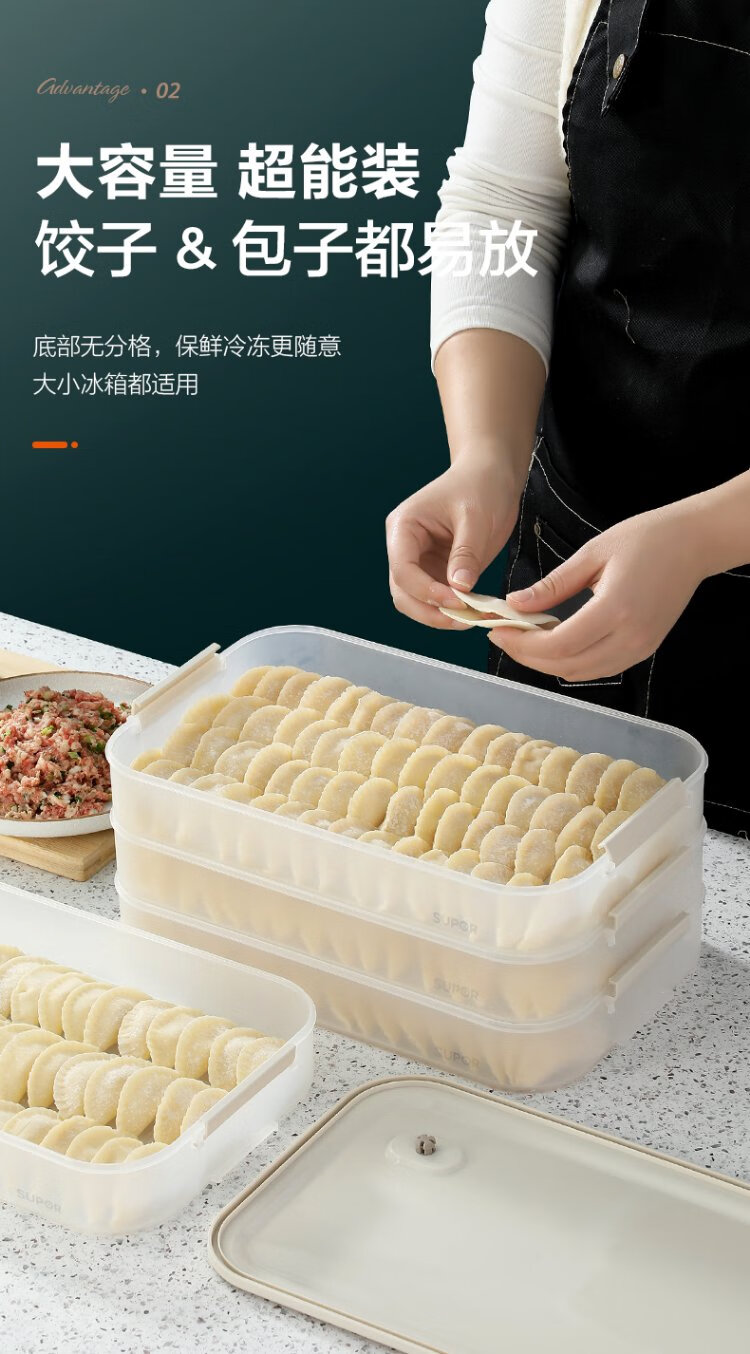 SUPOR dumpling refrigerator storage box dumpling box food grade special refrigerator twist quick freezing dumpling box fresh wonton box multifunctional dumpling box 2 layers 1 lid food grade PP material & non-stick bottom