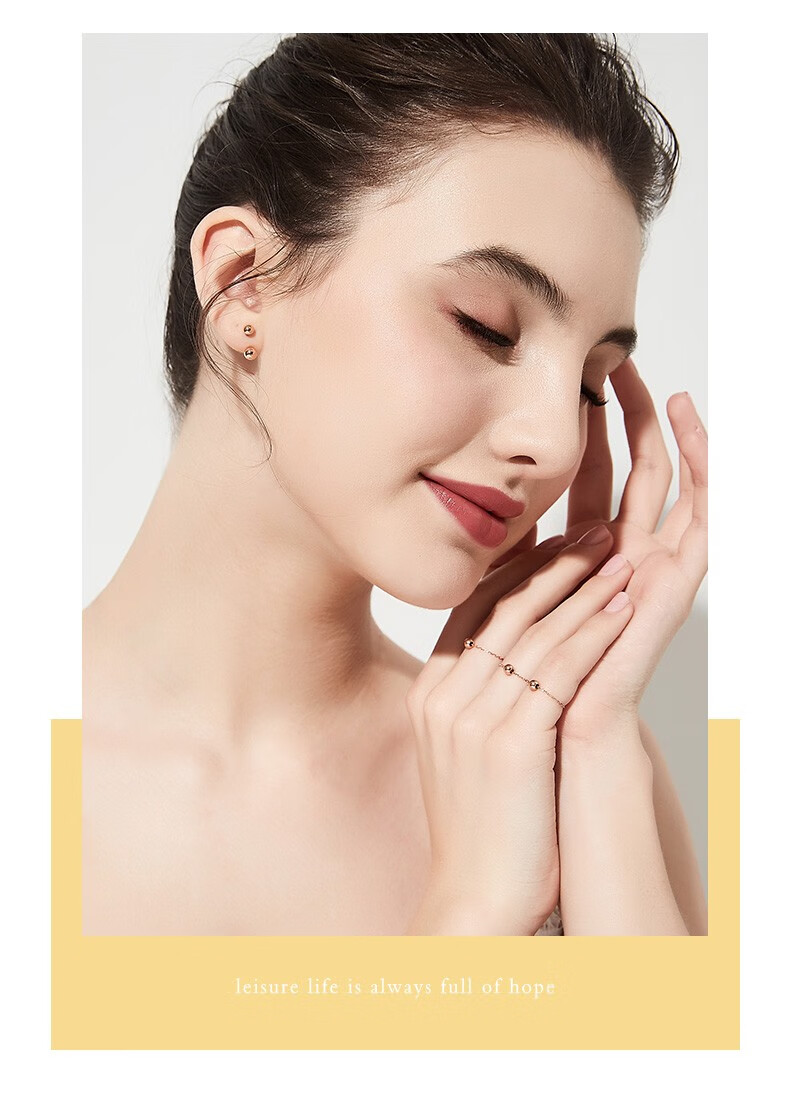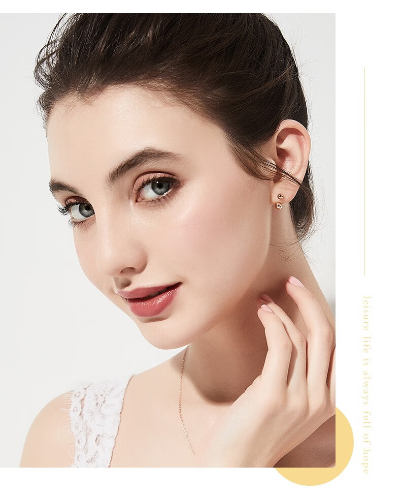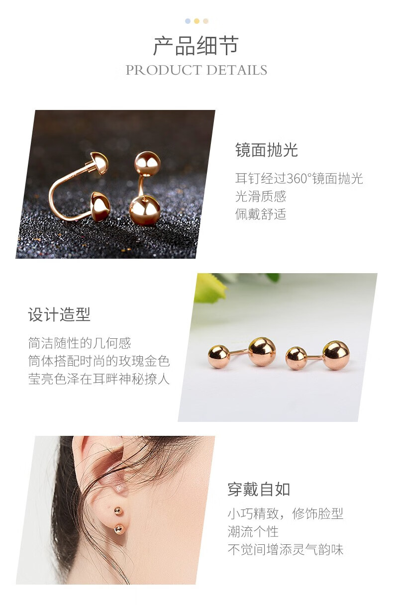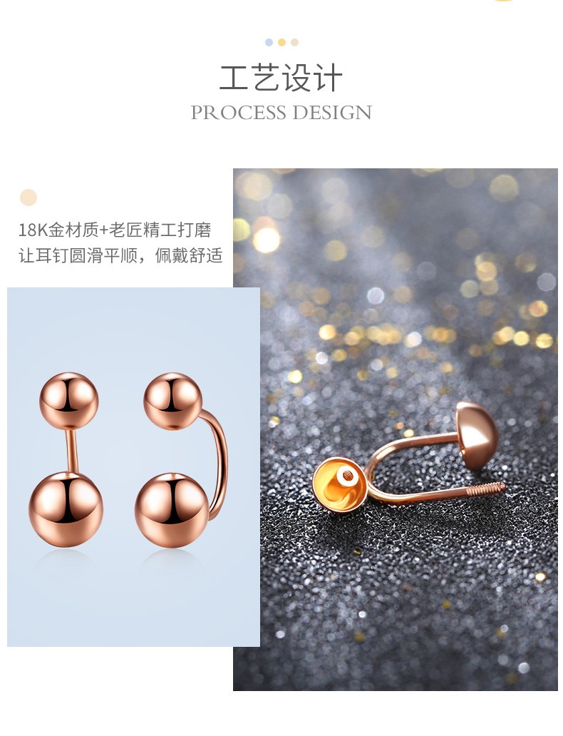 DEMONE 18K gold screw stud earrings, colorful gold double-headed ball shiny earrings, gold jewelry earrings, Valentine's Day gift for wife, rose gold earrings