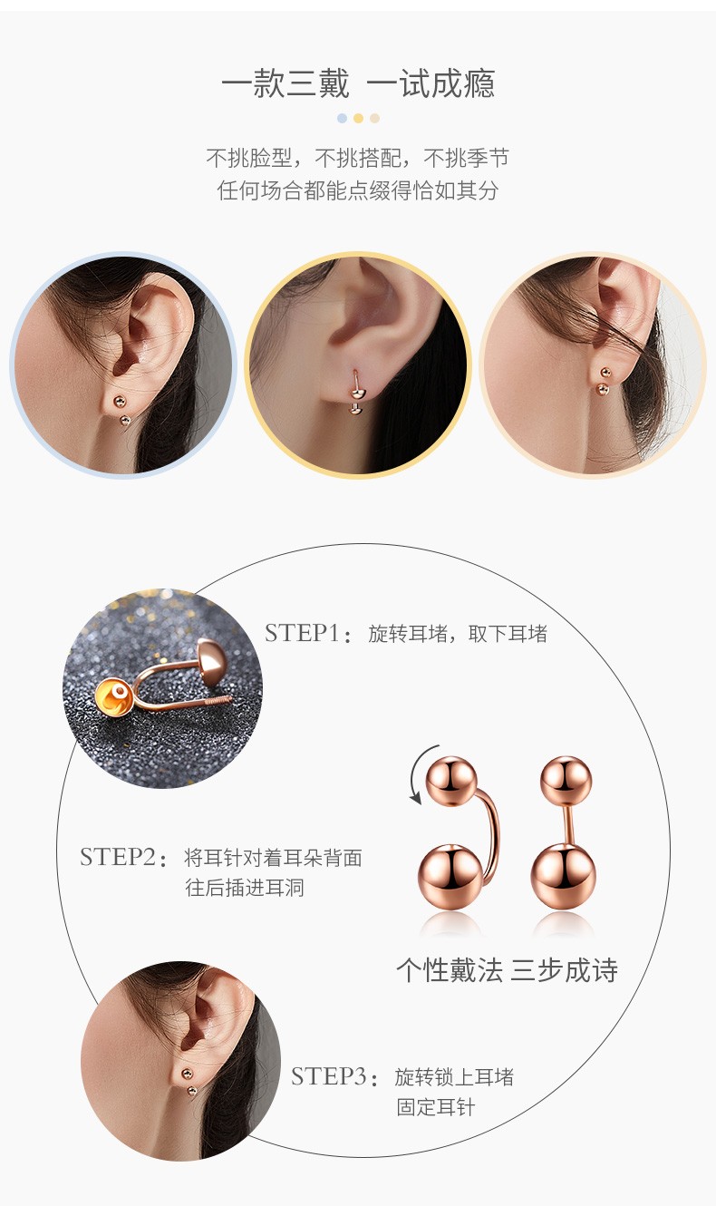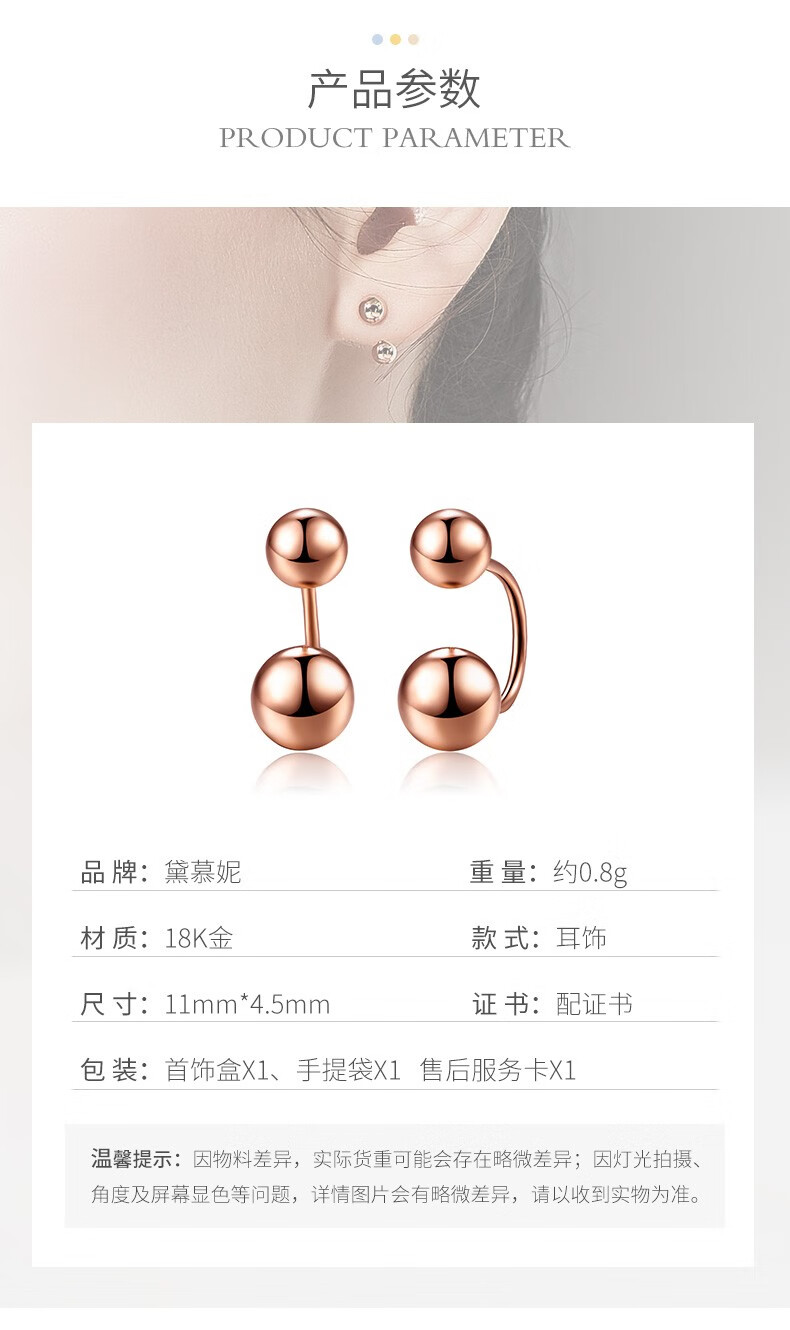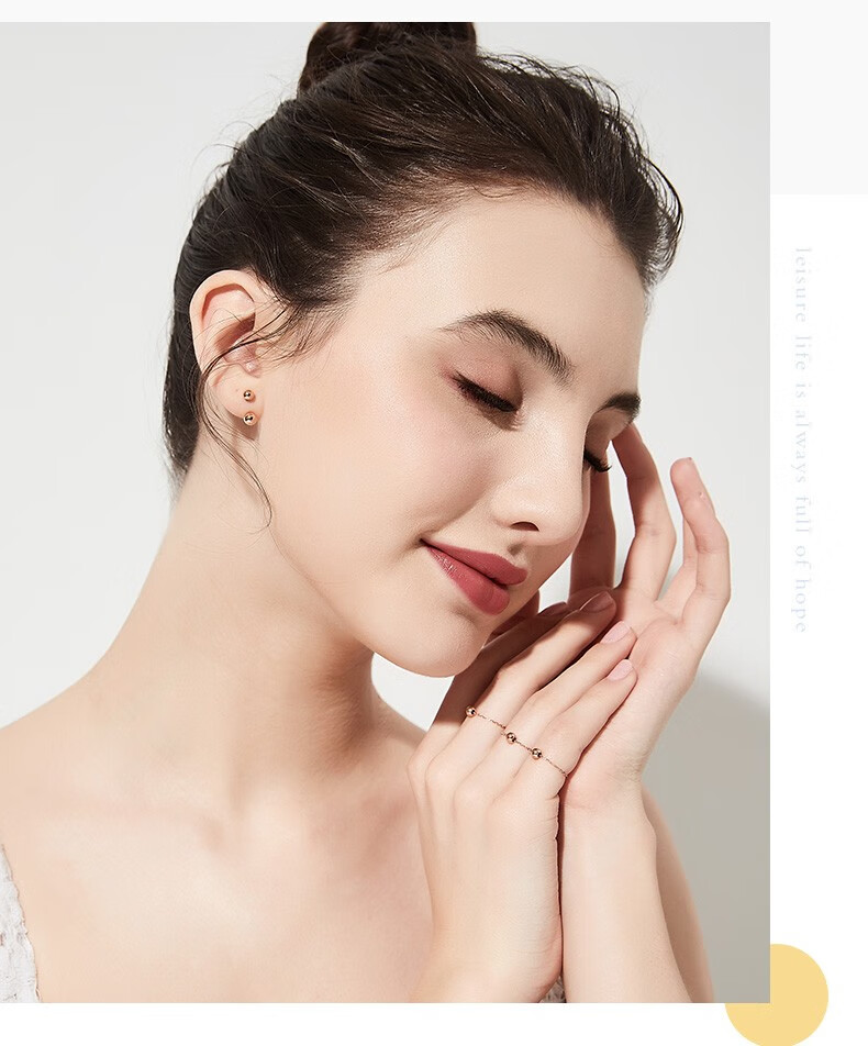 DEMONE 18K gold screw stud earrings, colorful gold double-headed ball shiny earrings, gold jewelry earrings, Valentine's Day gift for wife, rose gold earrings
