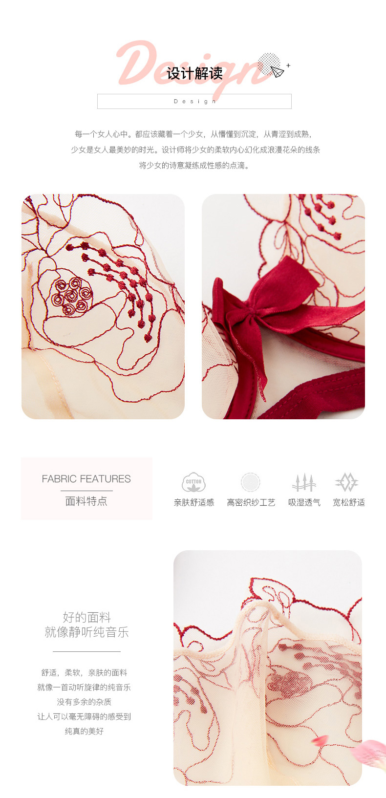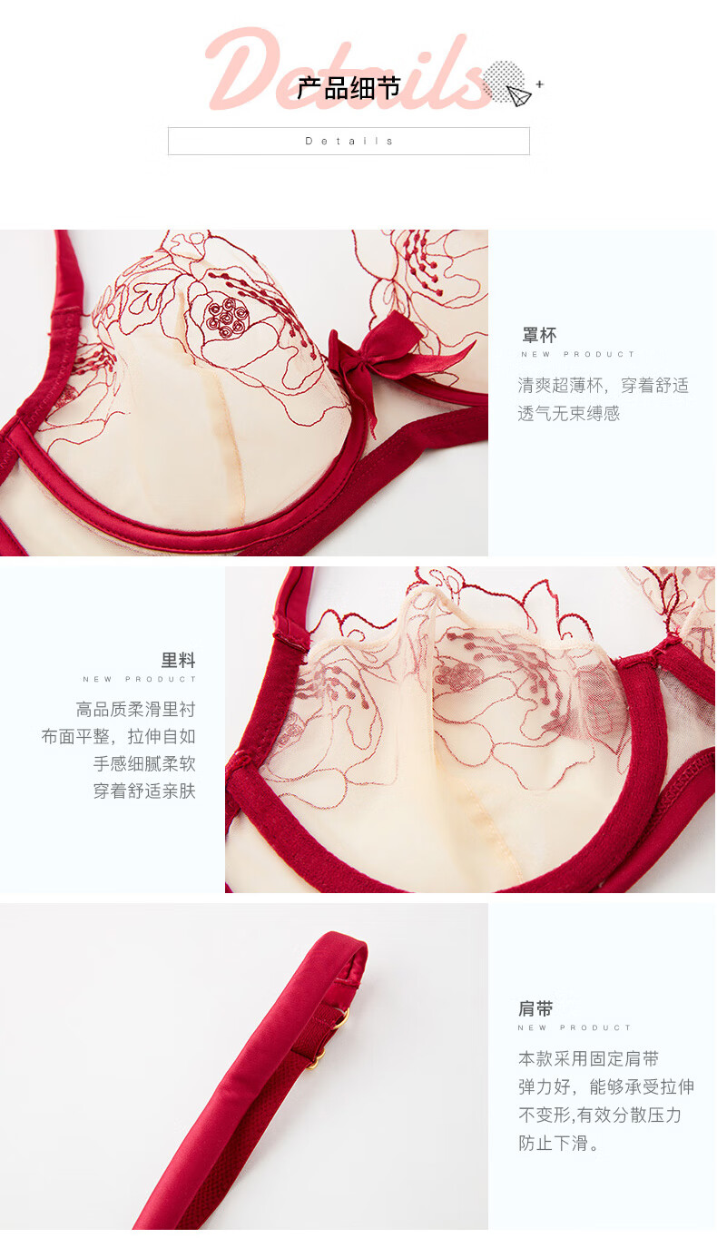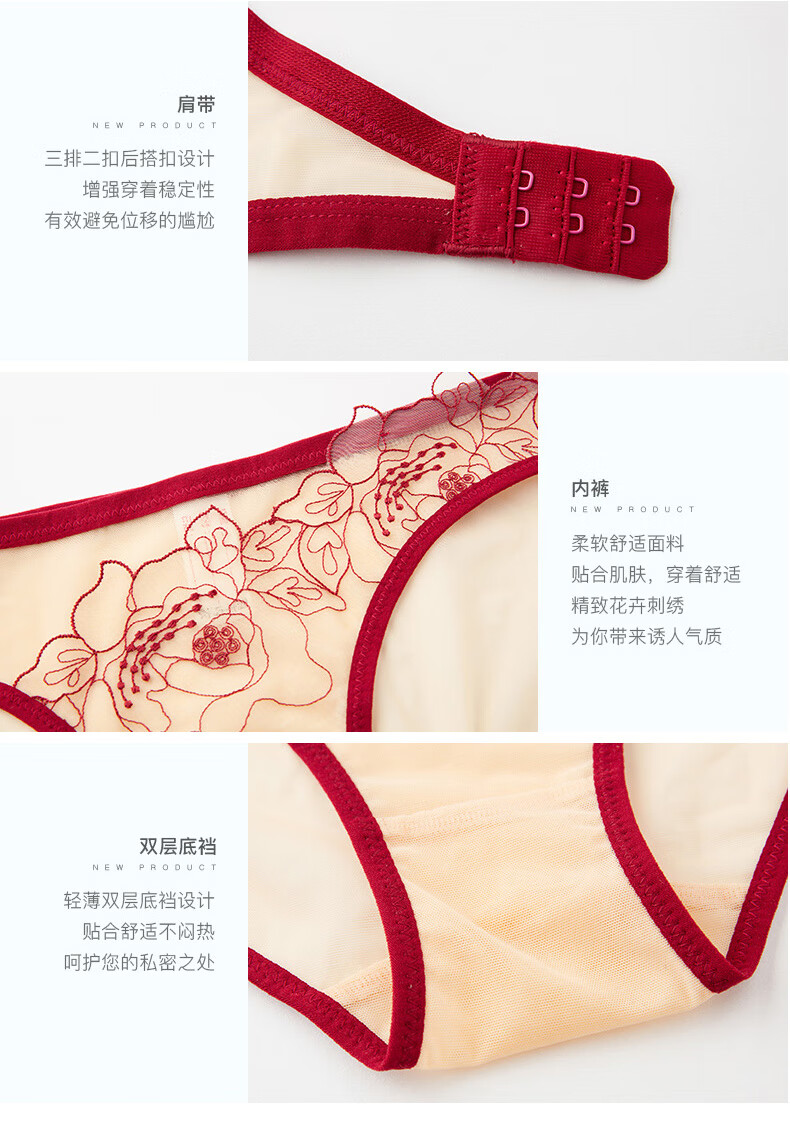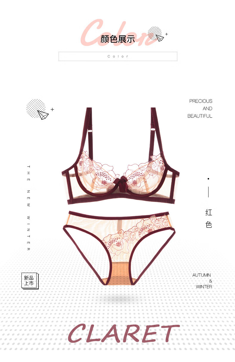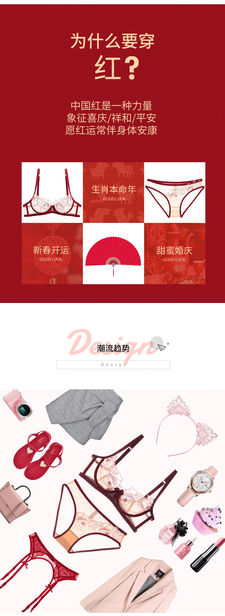 Xuan Sifu Victoria Brand Underwear Feminine Lace Bra Set Red Zodiac Year Dragon Year Transparent Big Breast Makes Smaller Red Line Skin Base Set 80B/36B
