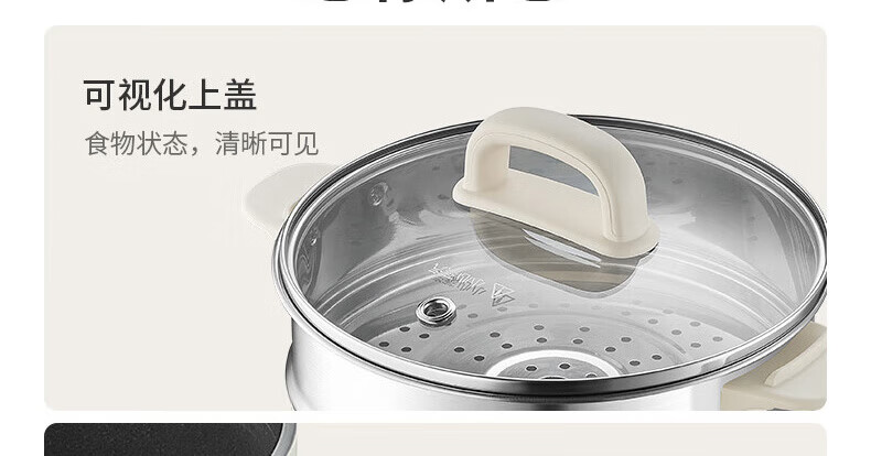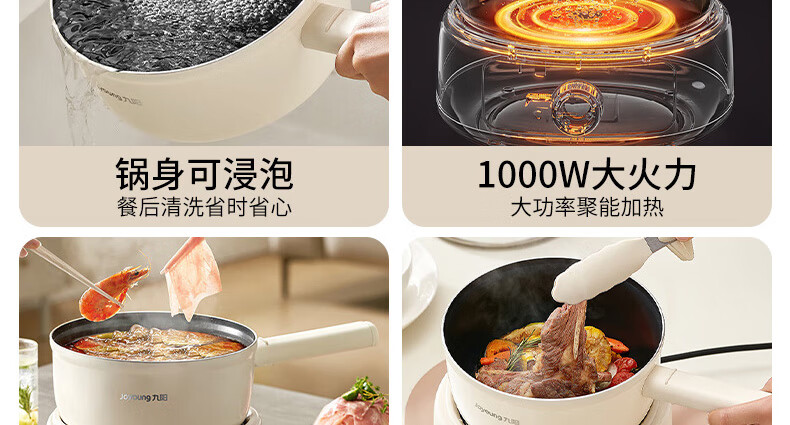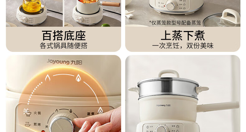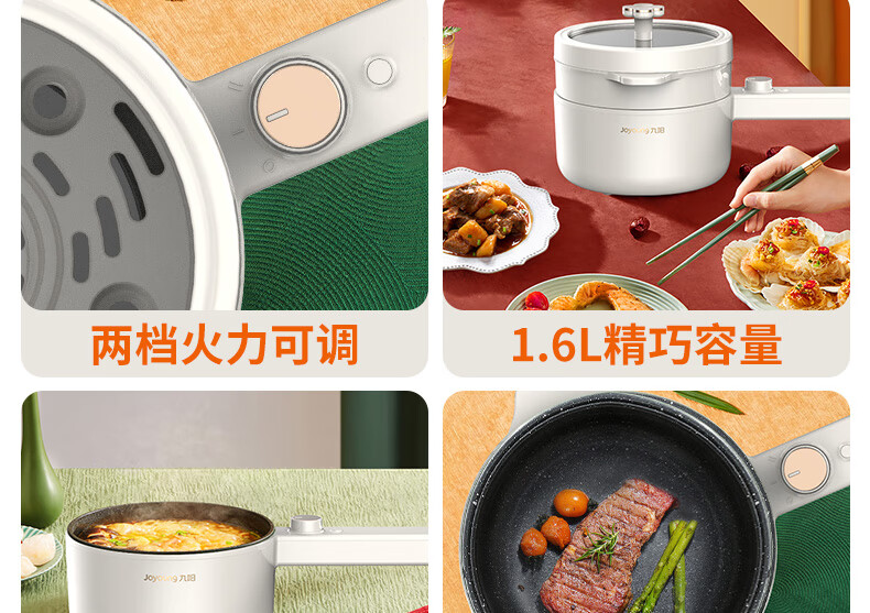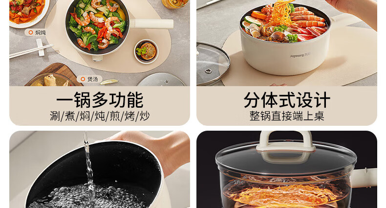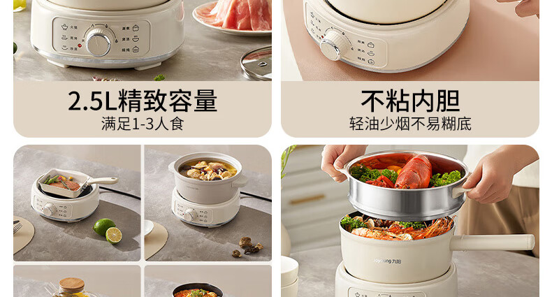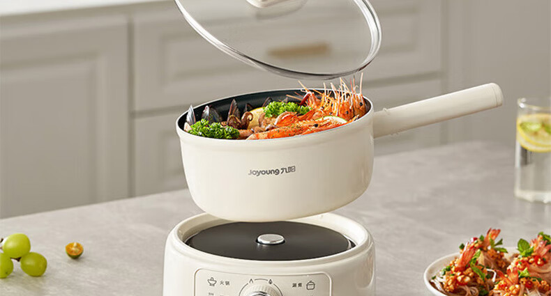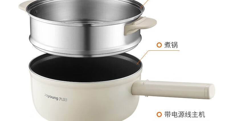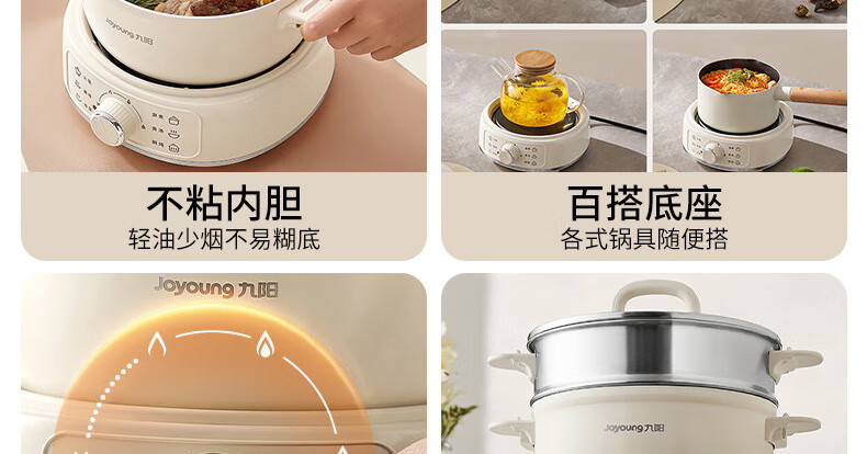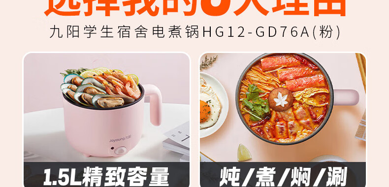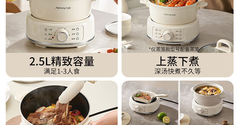 Joyoung Electric Cooking Pot Multi-Capacity Selection Multi-Function Non-stick Inner Electric Hot Pot Electric Hot Pot Noodle Cooker Electric Steamer 1.5L Pink/With Steamer Tray GD76C