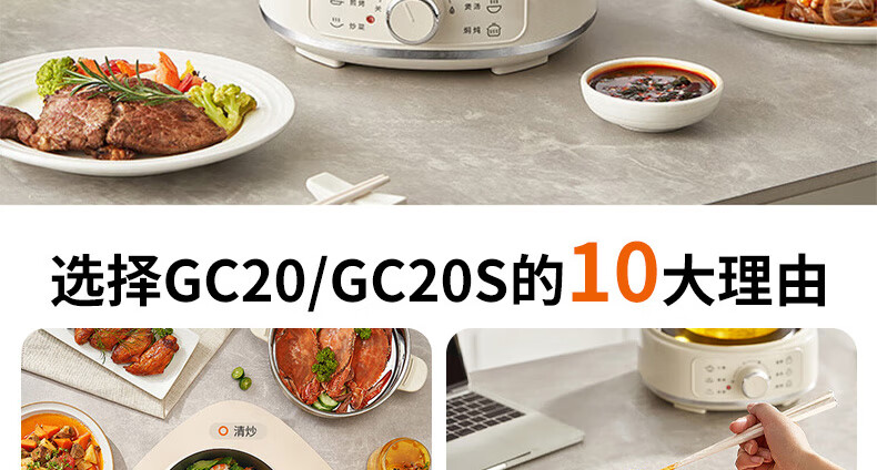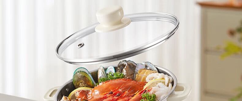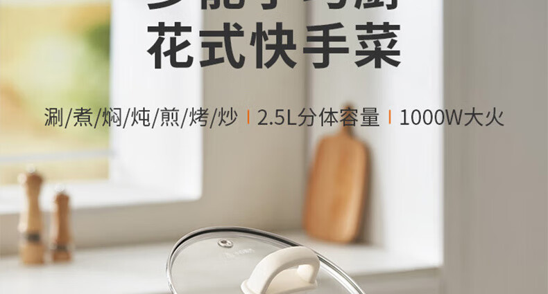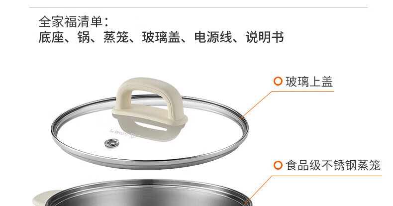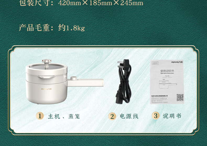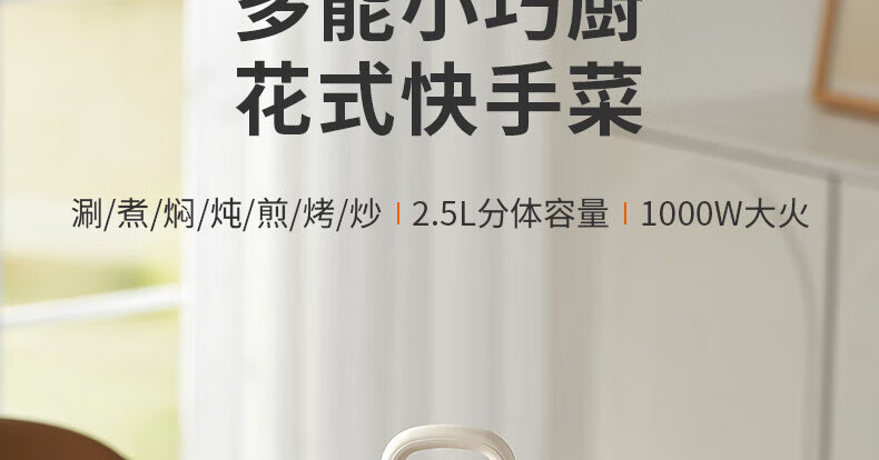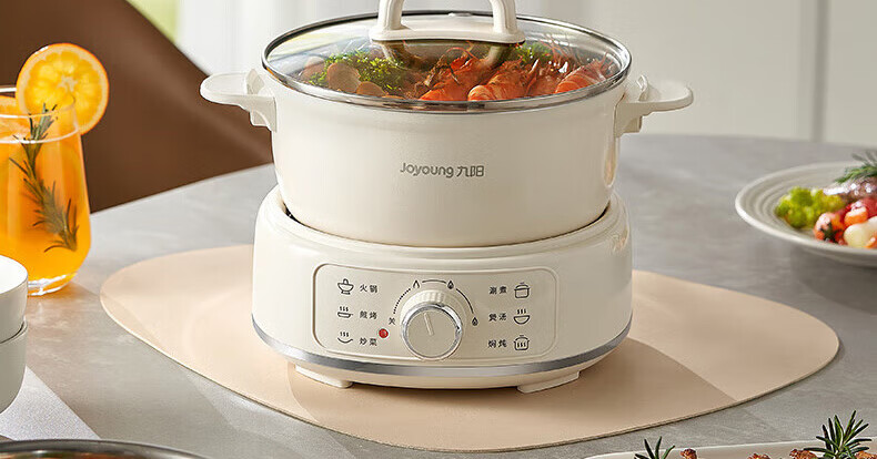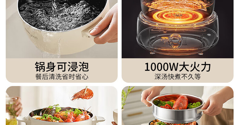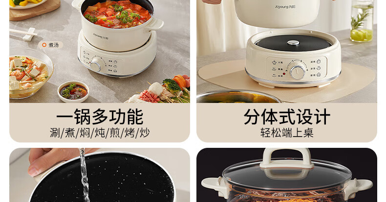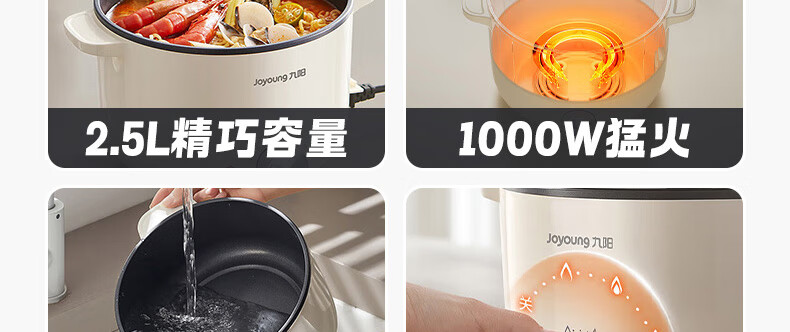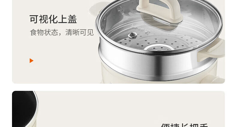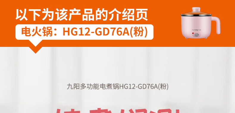 Joyoung Electric Cooking Pot Multi-Capacity Selection Multi-Function Non-stick Inner Electric Hot Pot Electric Hot Pot Noodle Cooker Electric Steamer 1.5L Pink/With Steamer Tray GD76C