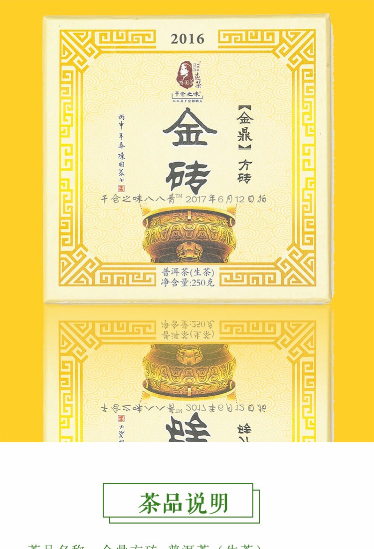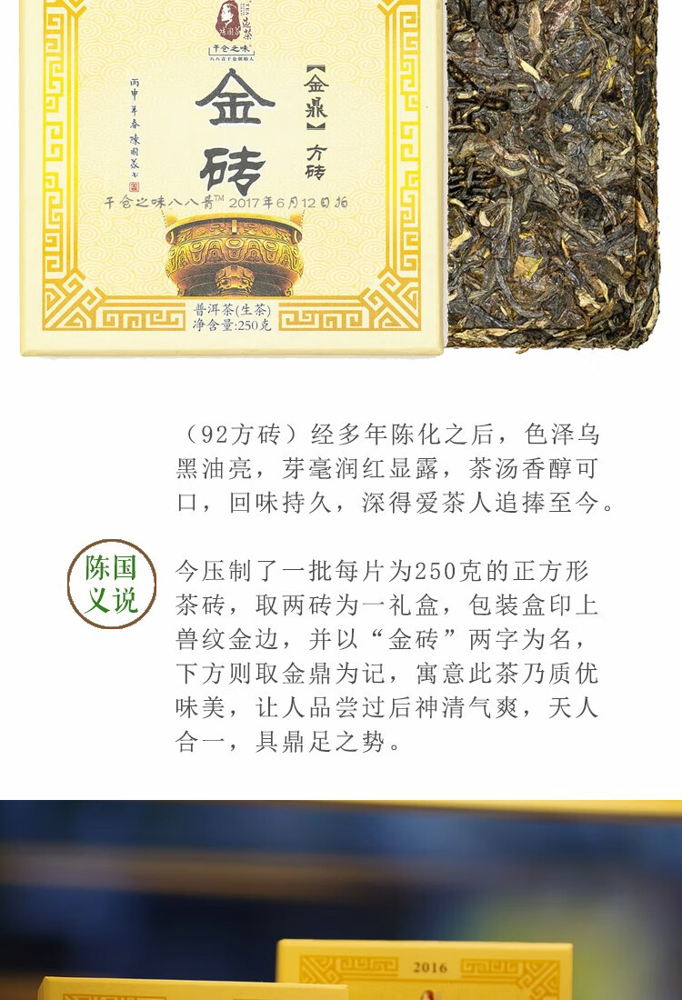 Chen Guoyi tea selection Chen Guoyi dry warehouse flavor 2016 Jinding square brick 250g/brick Menghai
