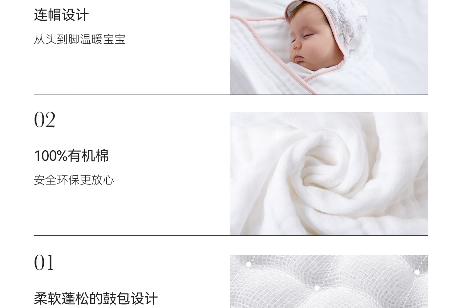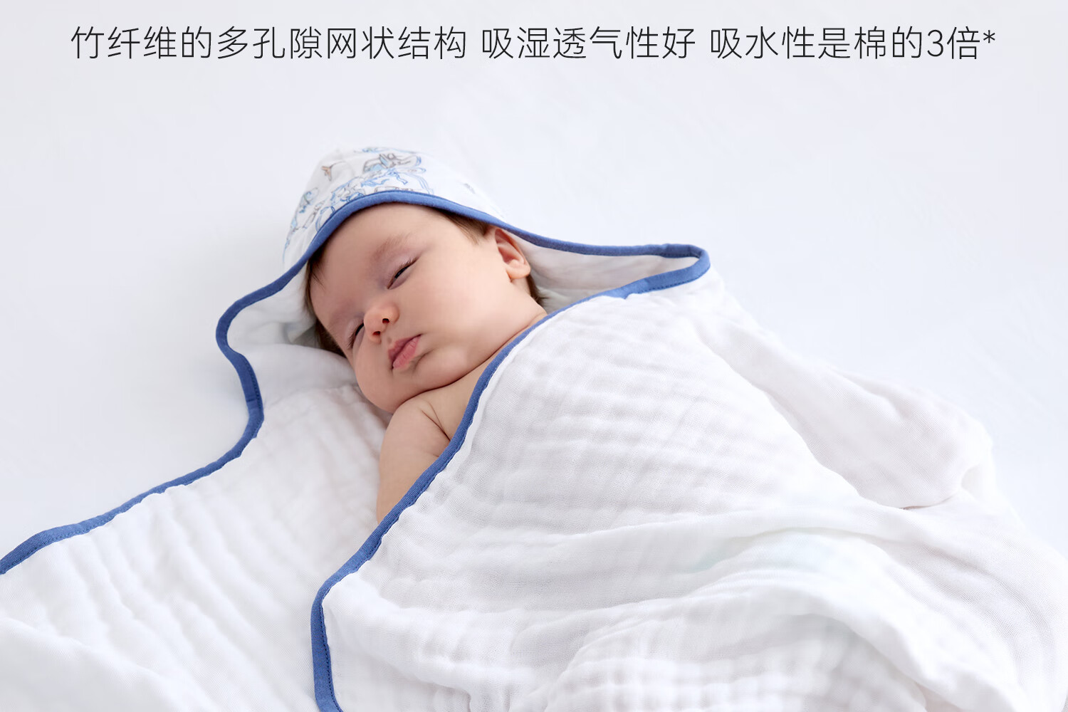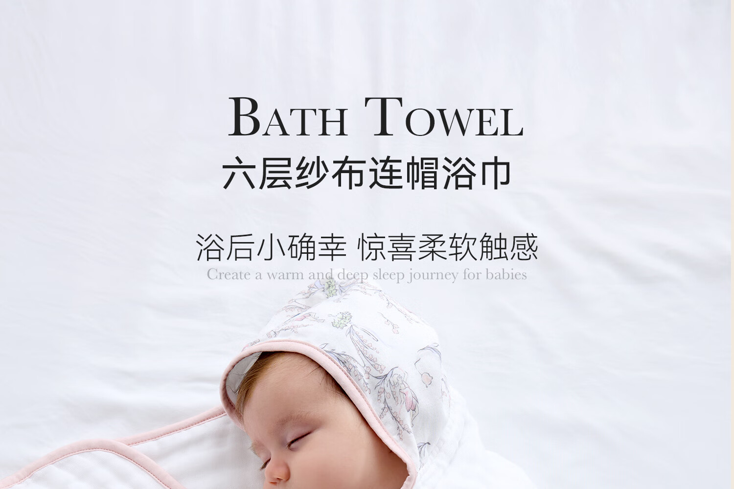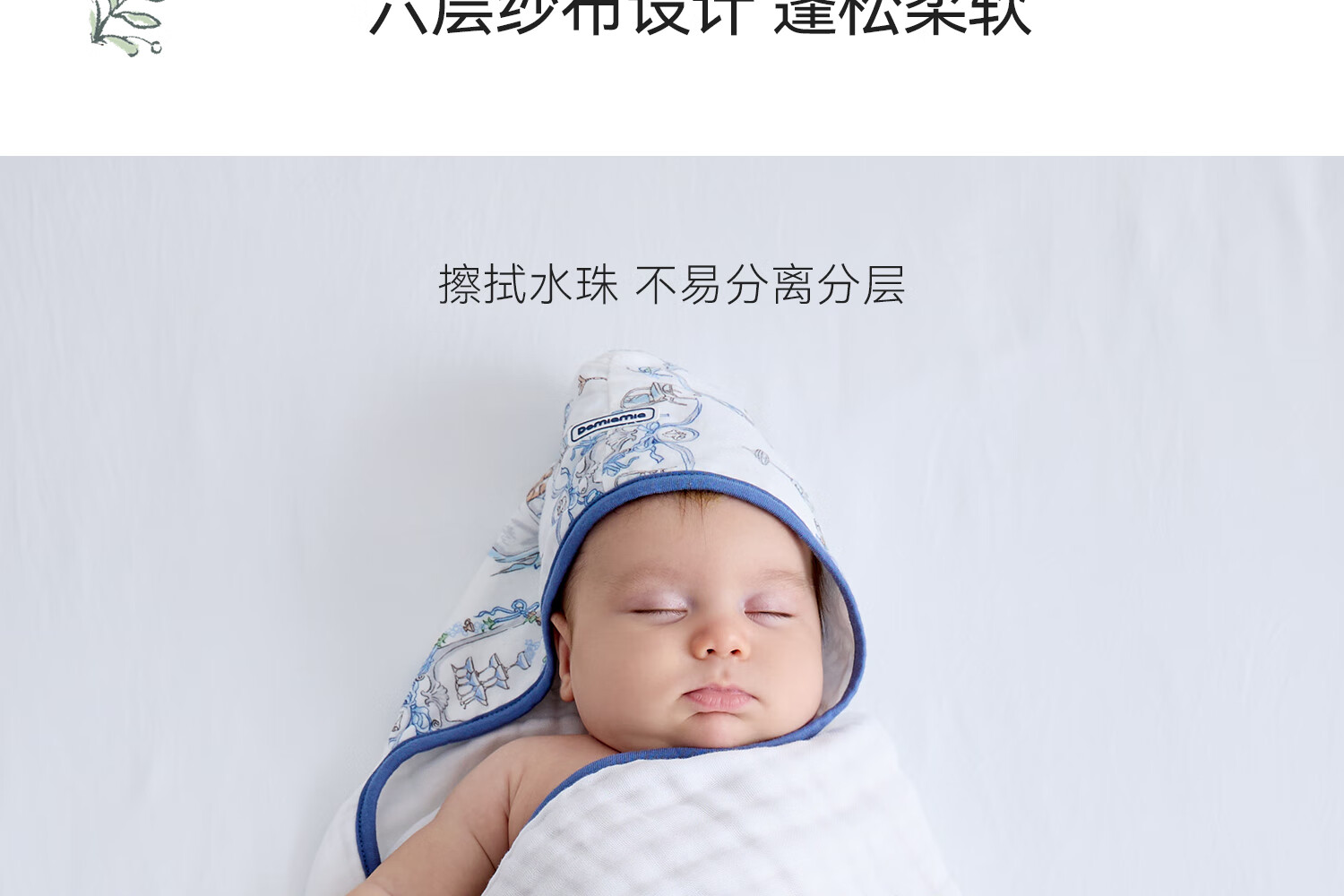 DOMIAMIA baby bath towel, six-layer gauze hooded children's bathrobe, newborn absorbent and breathable wrap towel, six-layer gauze hooded bath towel-Lingyusongge 120x75cm