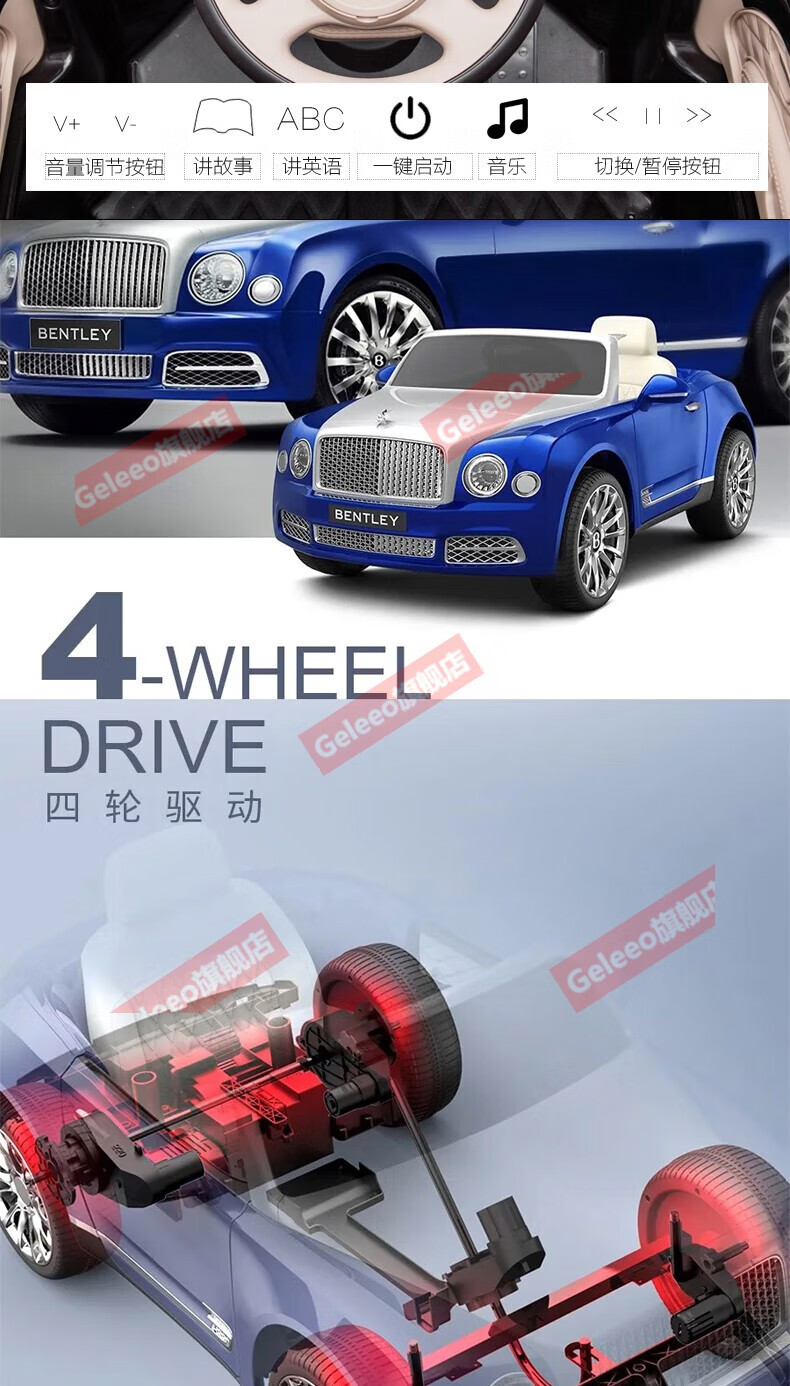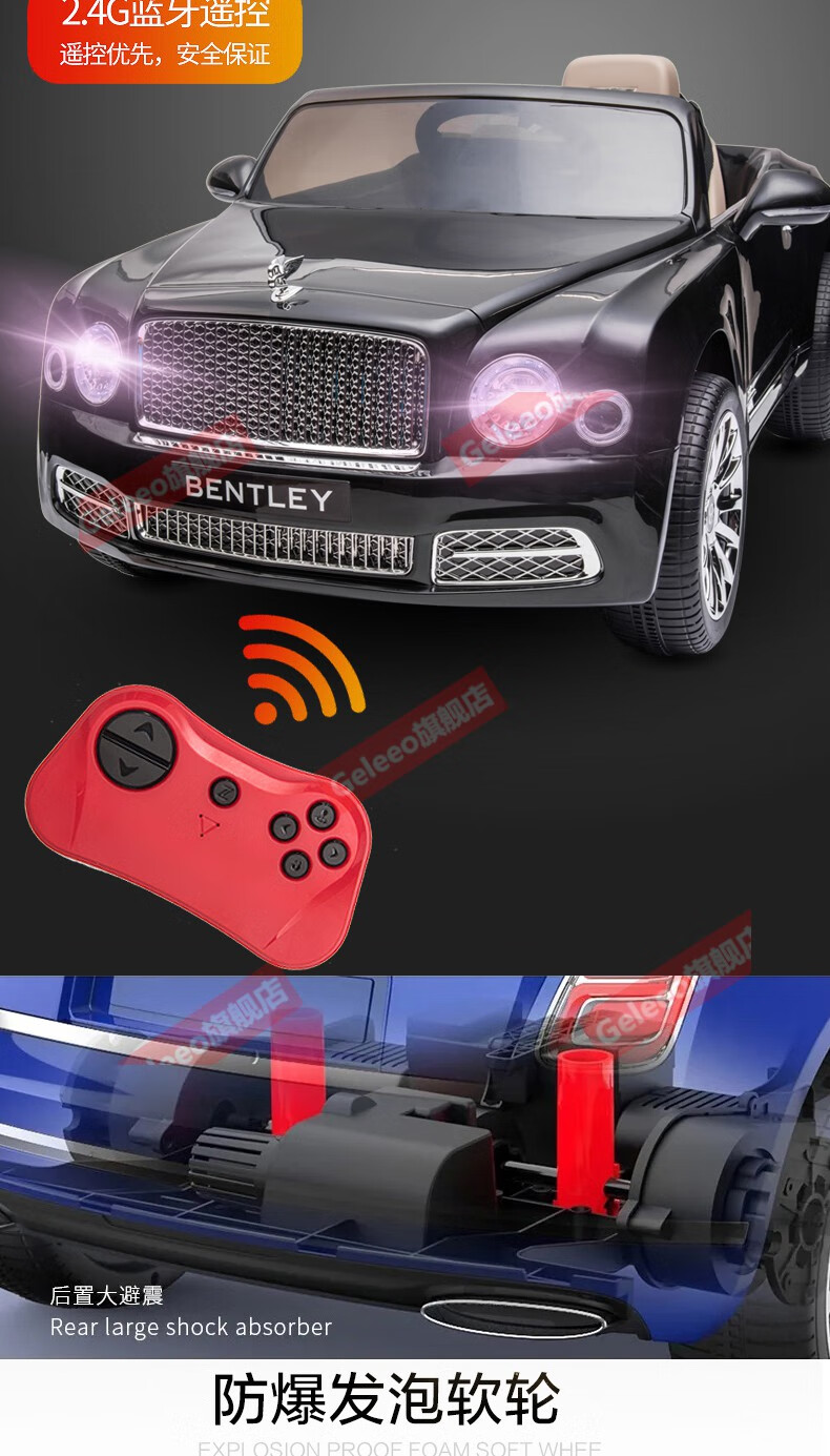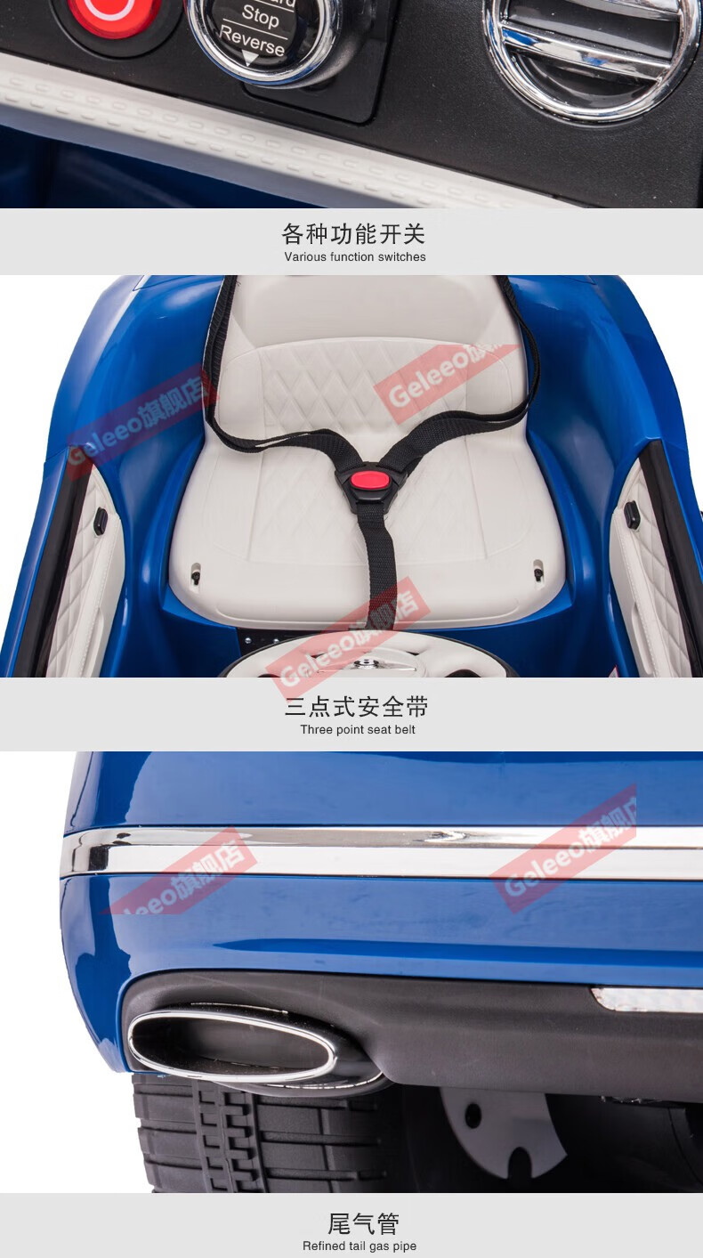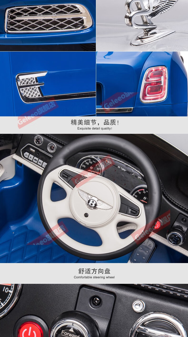 Geleeo children's electric car Bentley four-wheel baby toy car can sit in electric car children's birthday gift blue four-wheel drive remote control + leather seat + soft wheels four-wheel drive