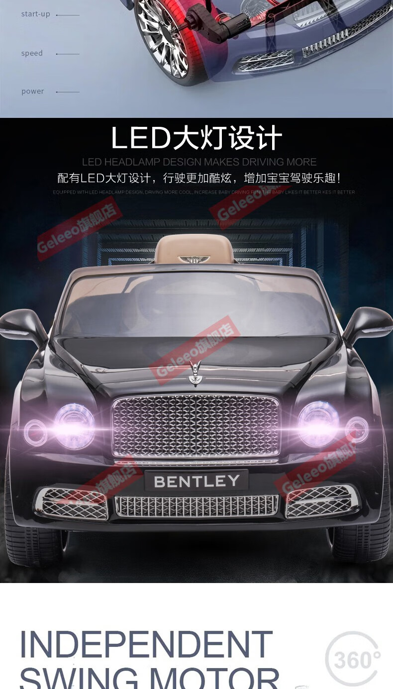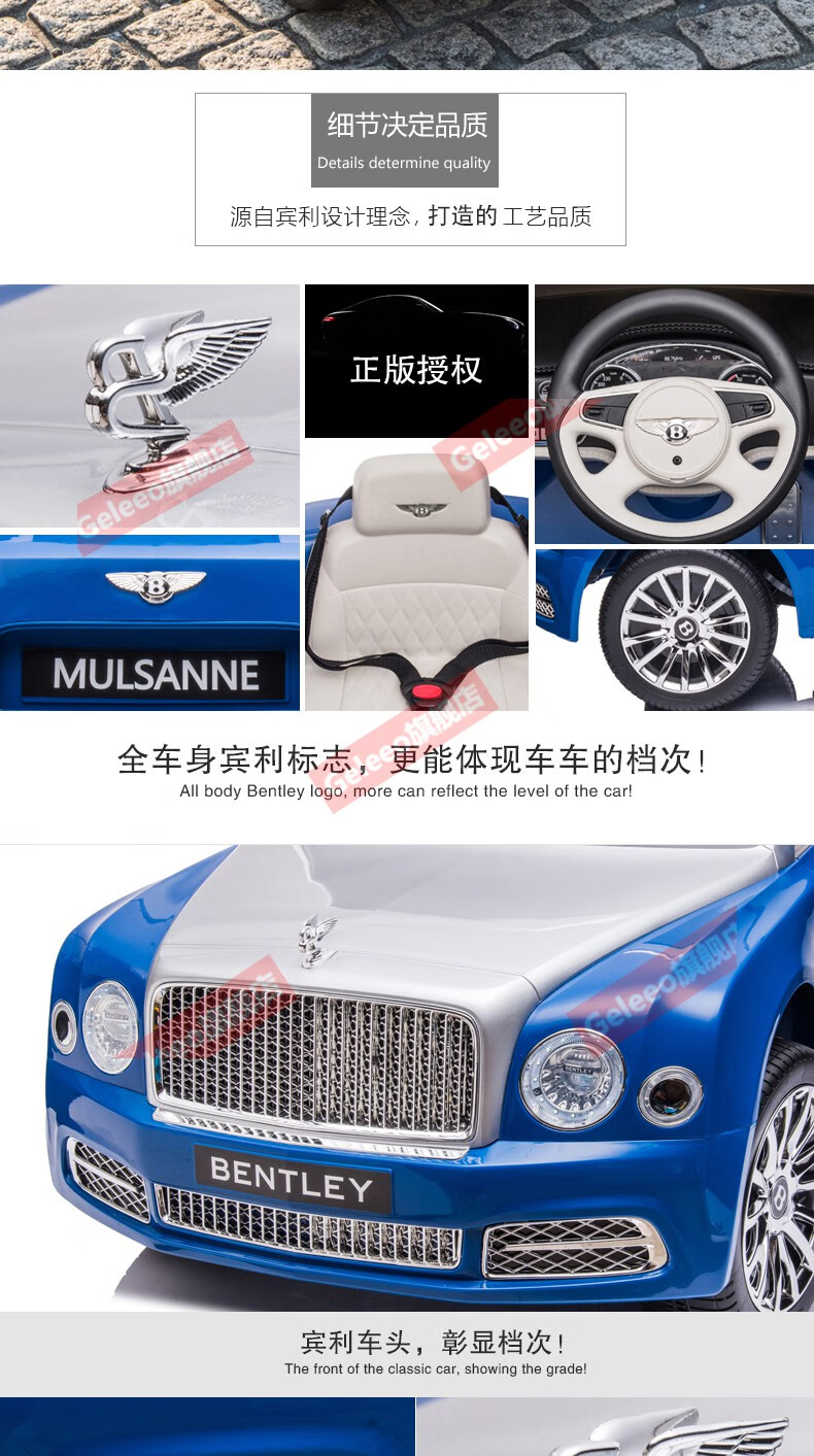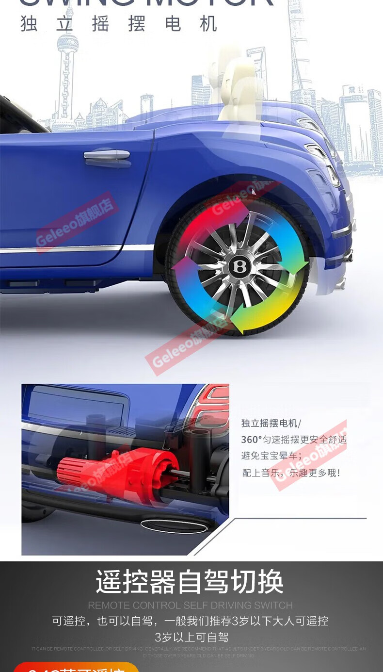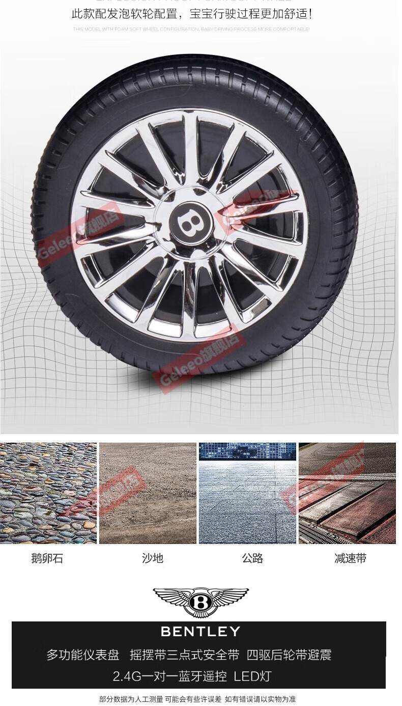 Geleeo children's electric car Bentley four-wheel baby toy car can sit in electric car children's birthday gift blue four-wheel drive remote control + leather seat + soft wheels four-wheel drive