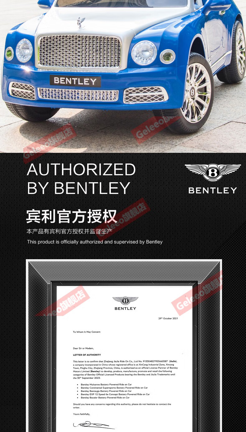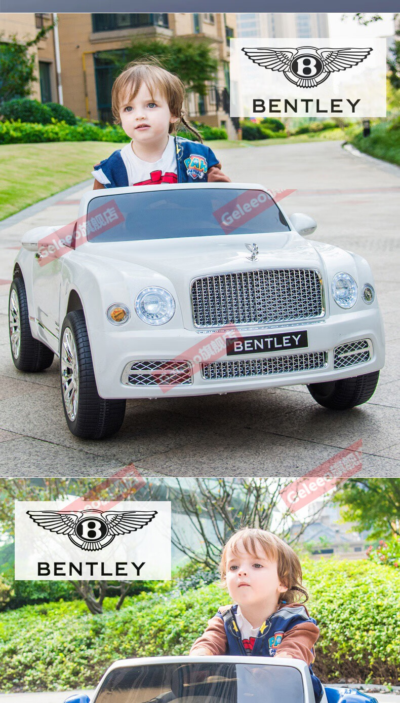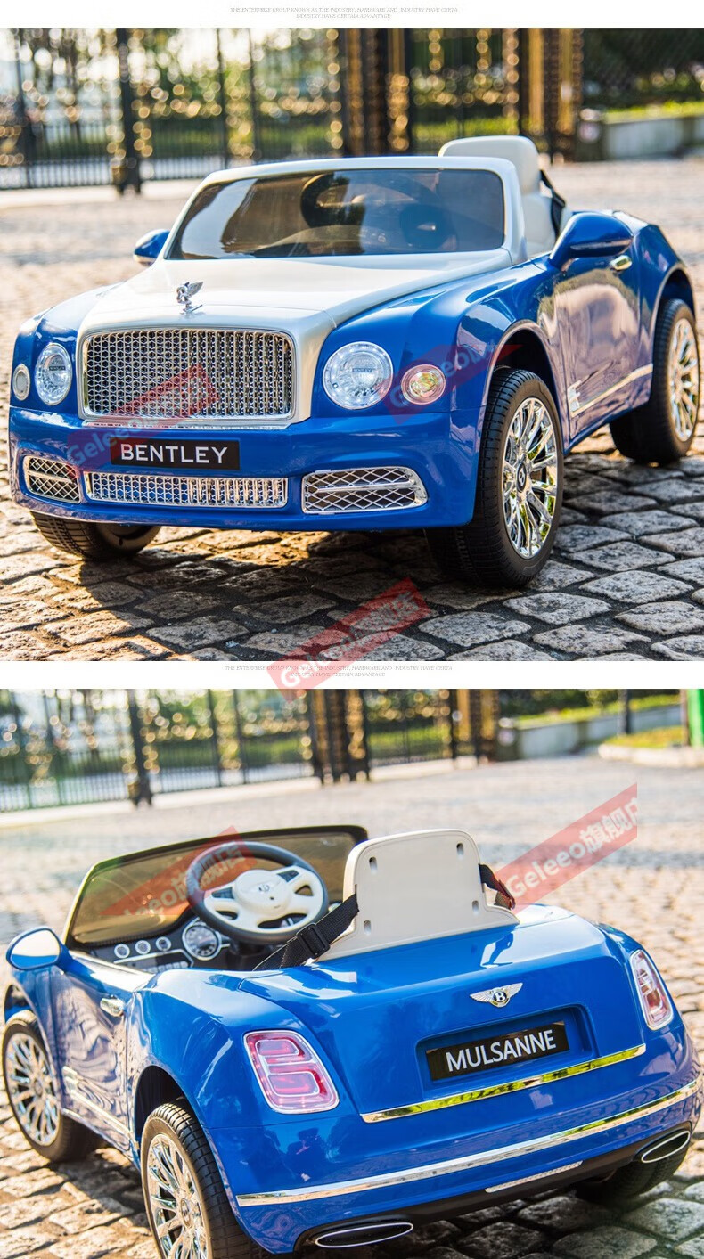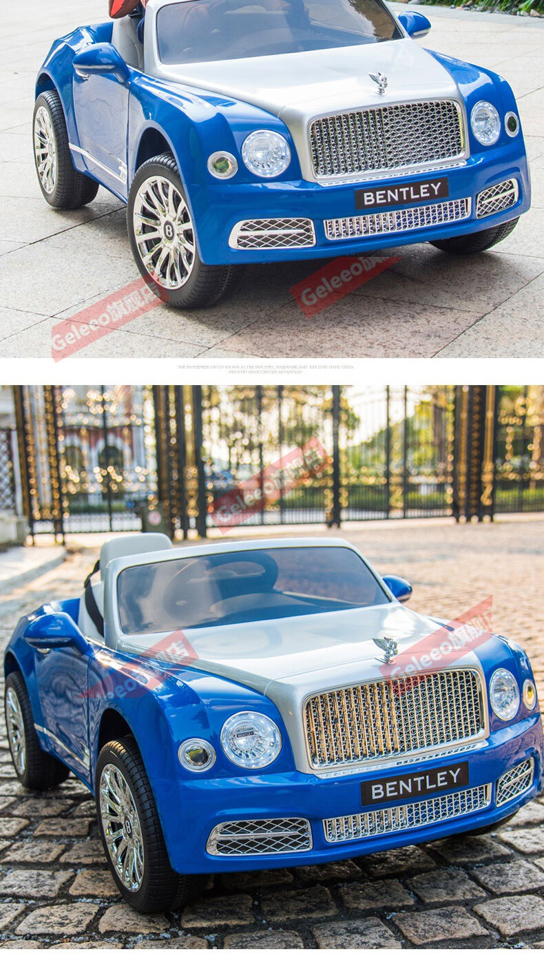 Geleeo children's electric car Bentley four-wheel baby toy car can sit in electric car children's birthday gift blue four-wheel drive remote control + leather seat + soft wheels four-wheel drive