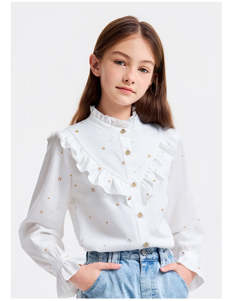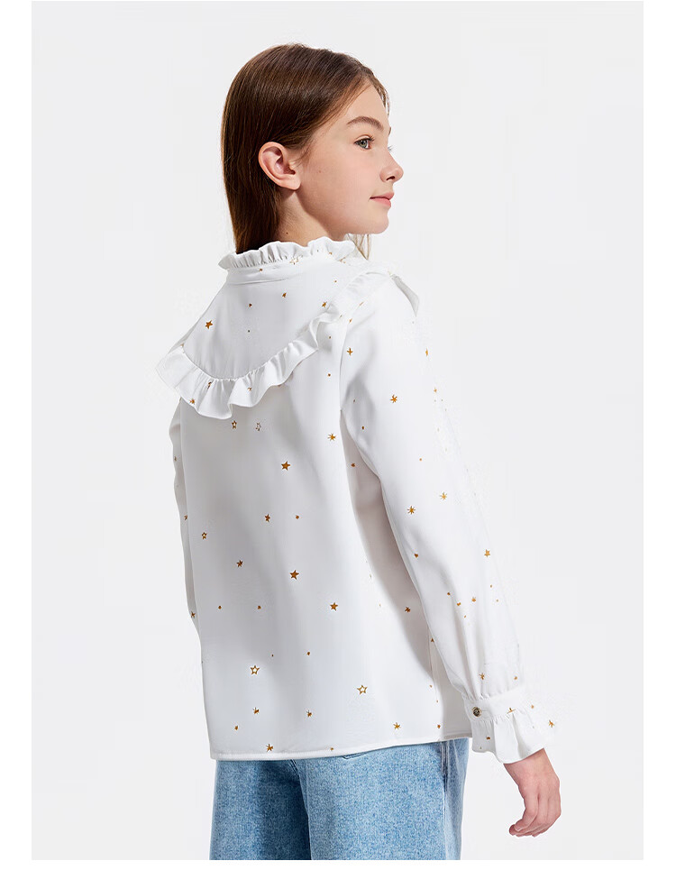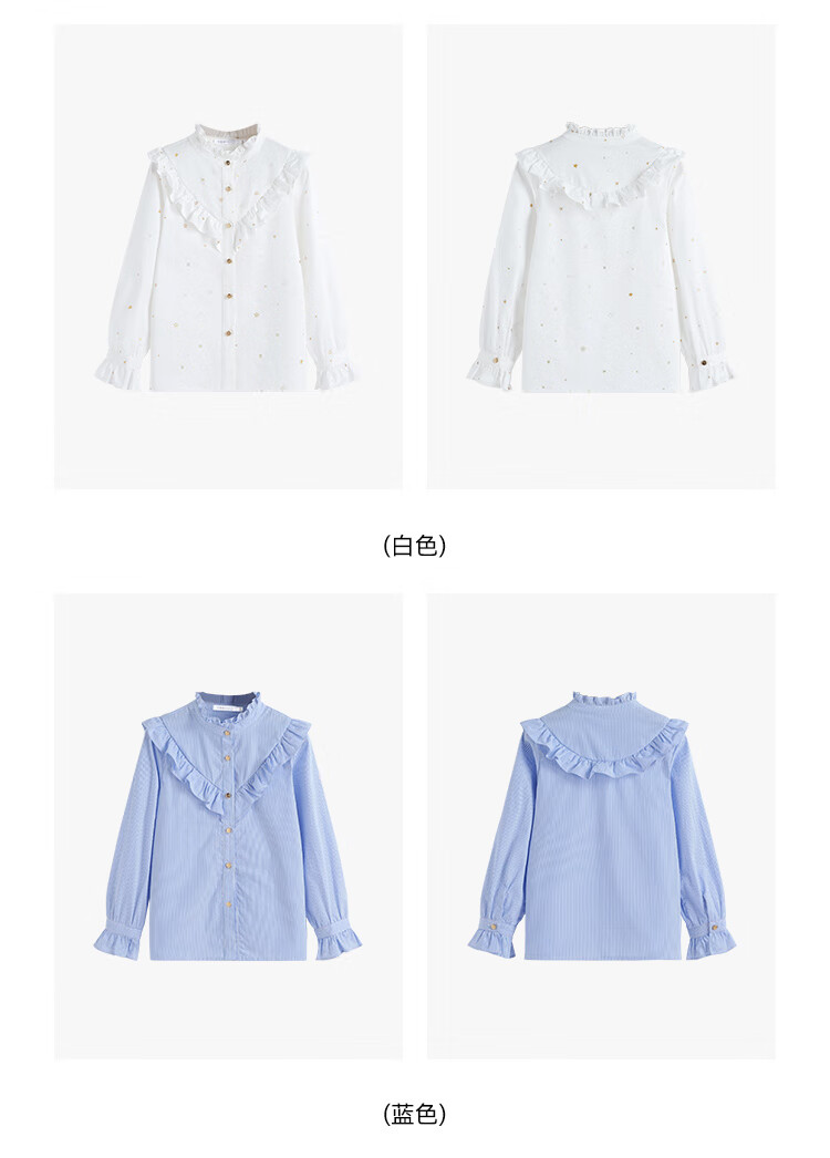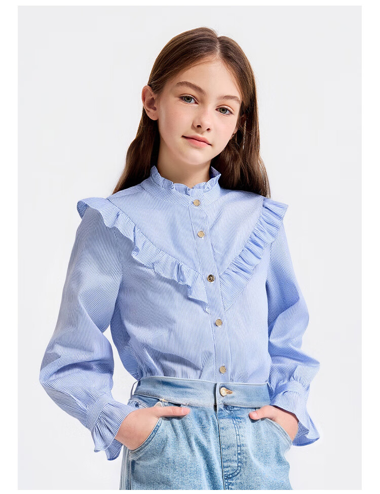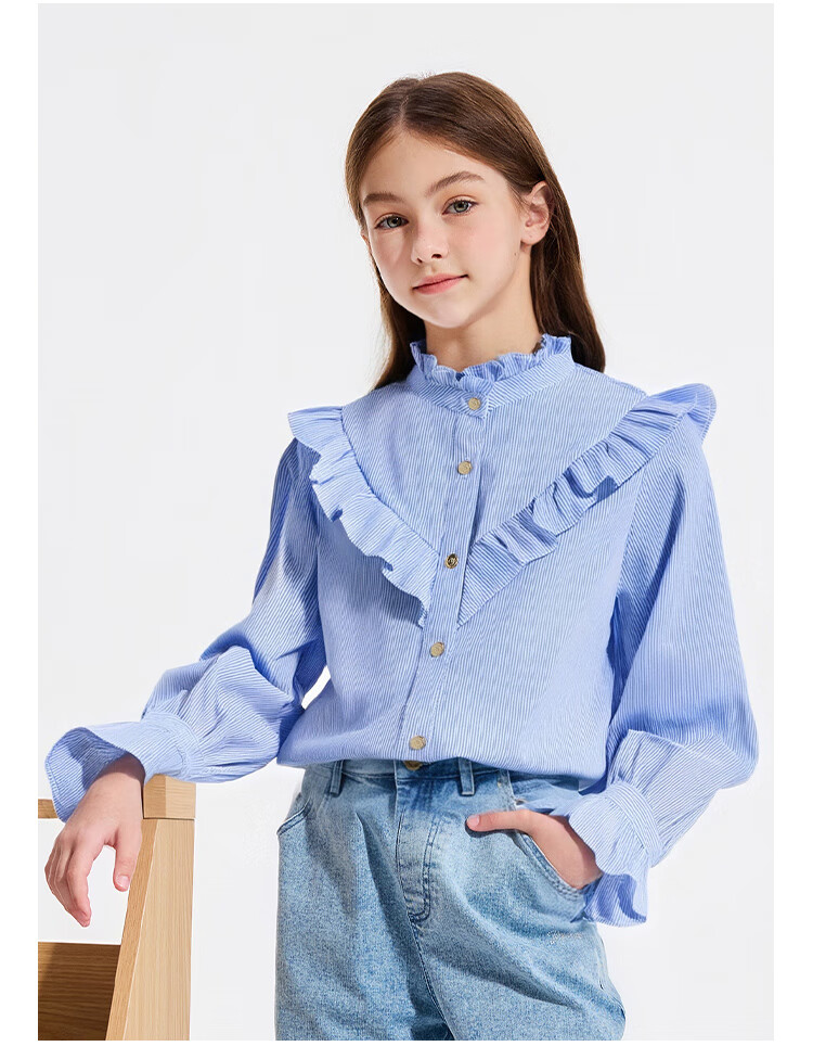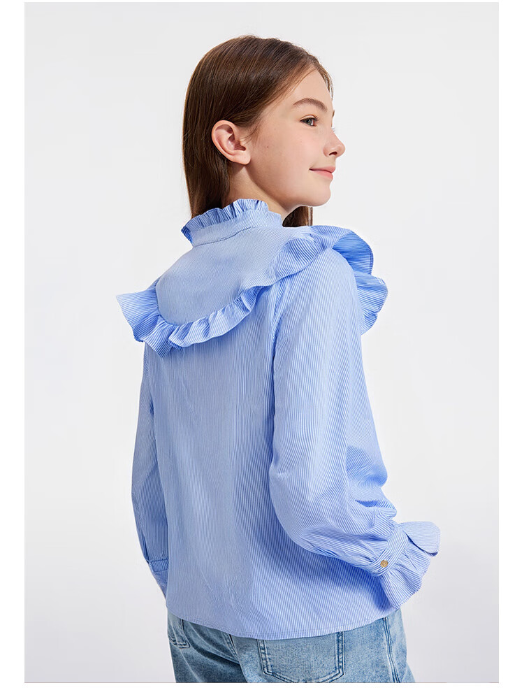 YEEHOO Girls' Shirts Children's Shirts Spring Fashion Lace Collar Long Sleeve Medium and Large Children's Fashion Tops Spring New Style Vertical Stars - Light Blue 160