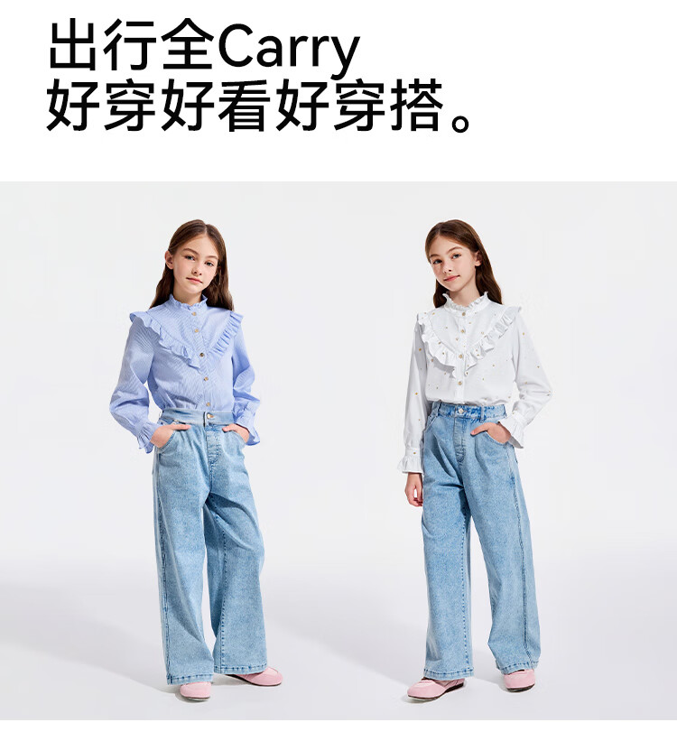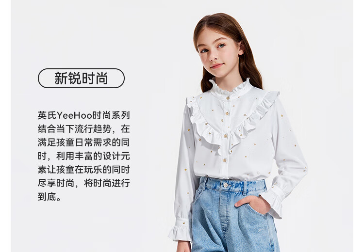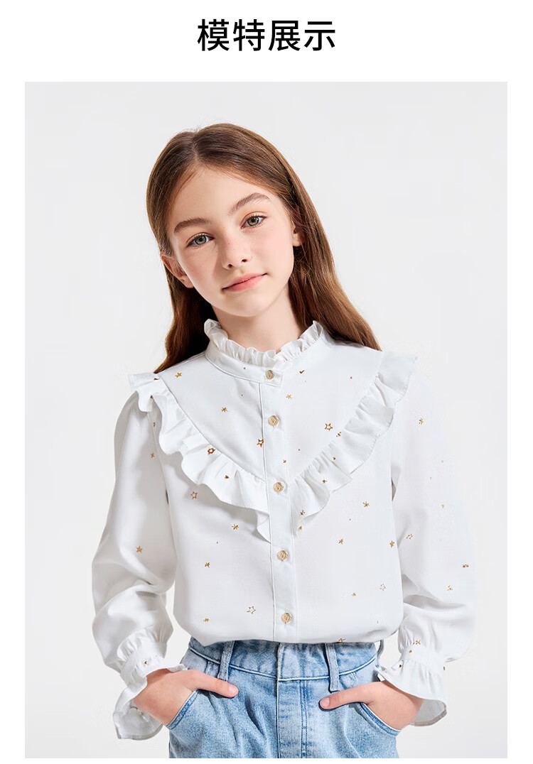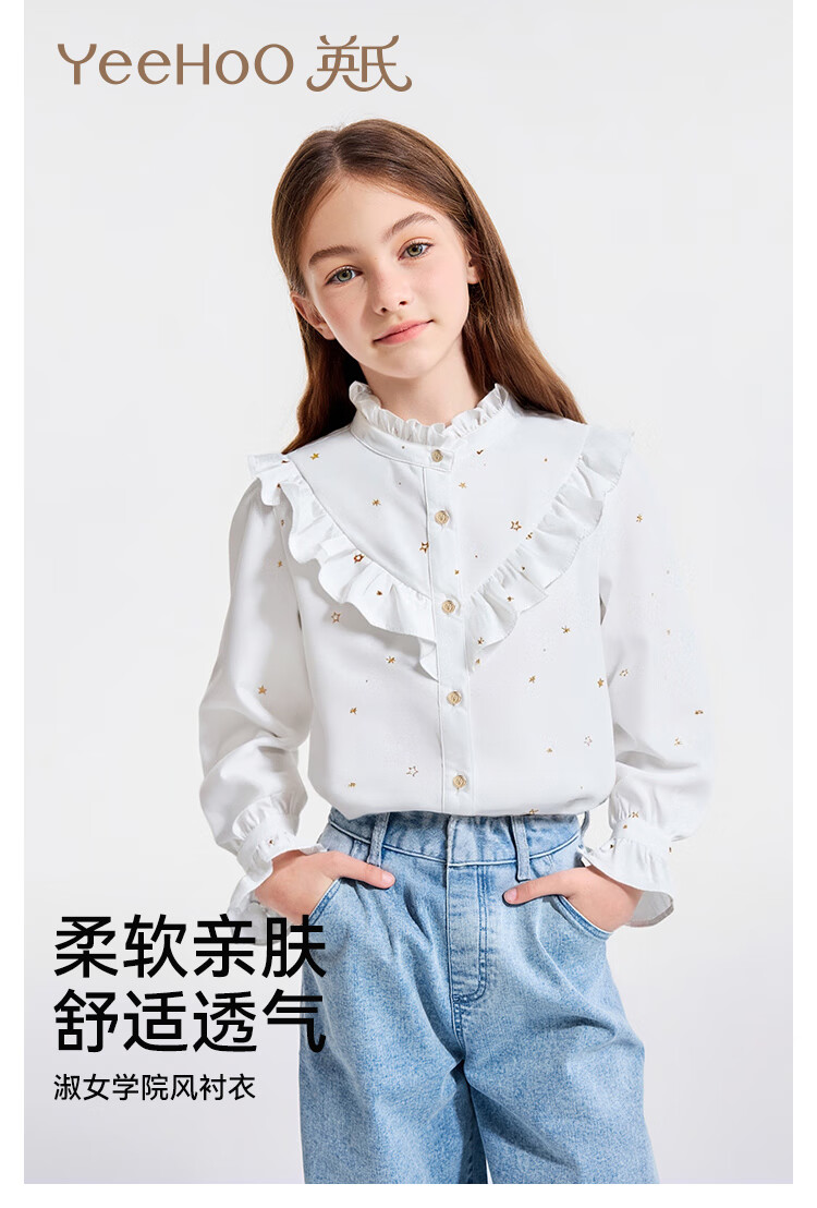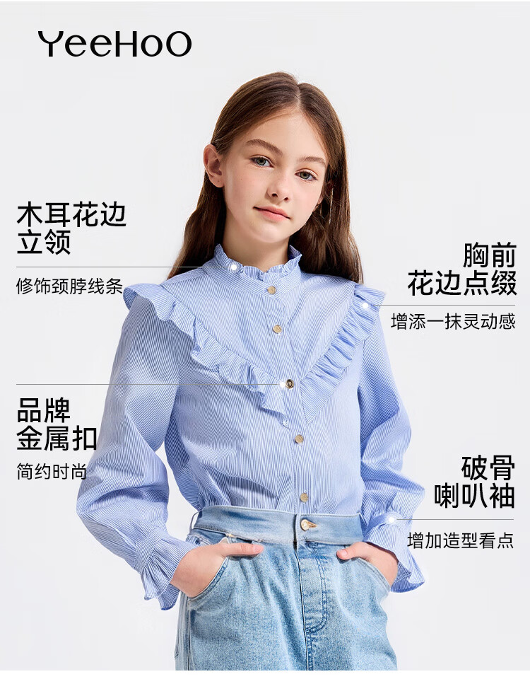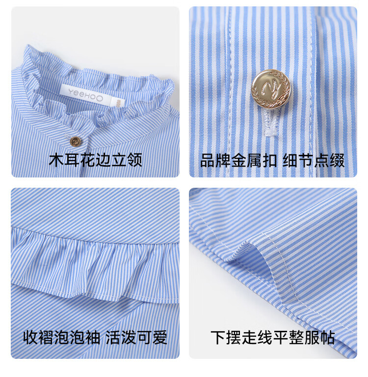 YEEHOO Girls' Shirts Children's Shirts Spring Fashion Lace Collar Long Sleeve Medium and Large Children's Fashion Tops Spring New Style Vertical Stars - Light Blue 160
