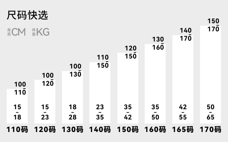 China (cm) 160-165/84-86 165-170 / 88-90 167-172 / 92-96 168-173 / 98-102 170-176 / 106-110