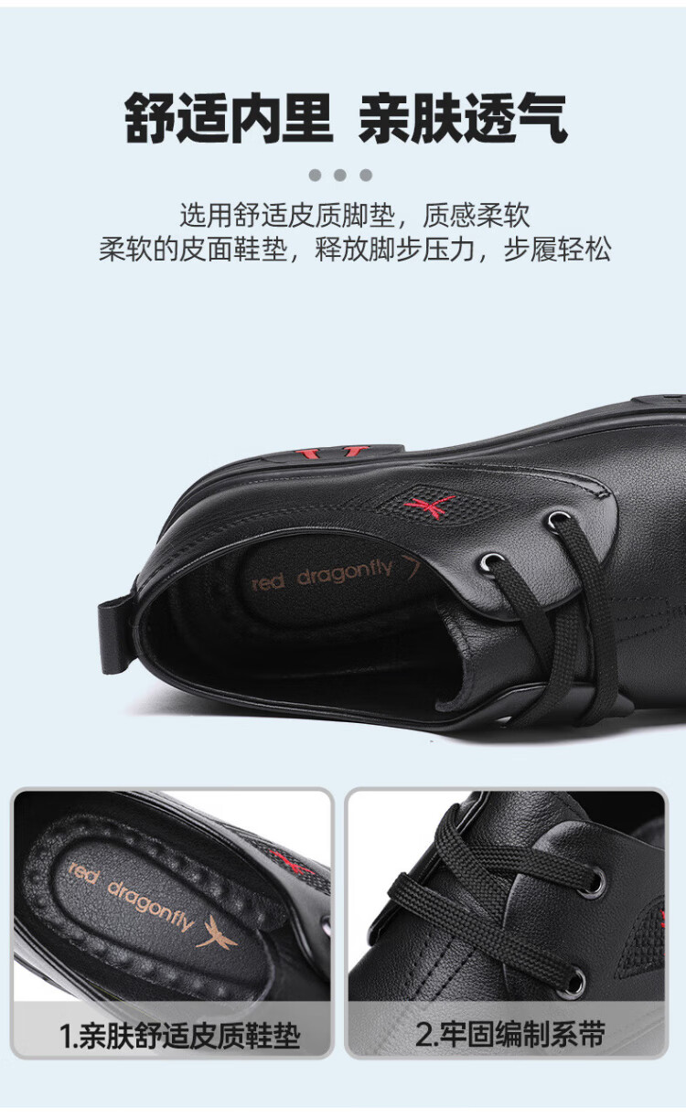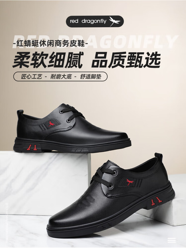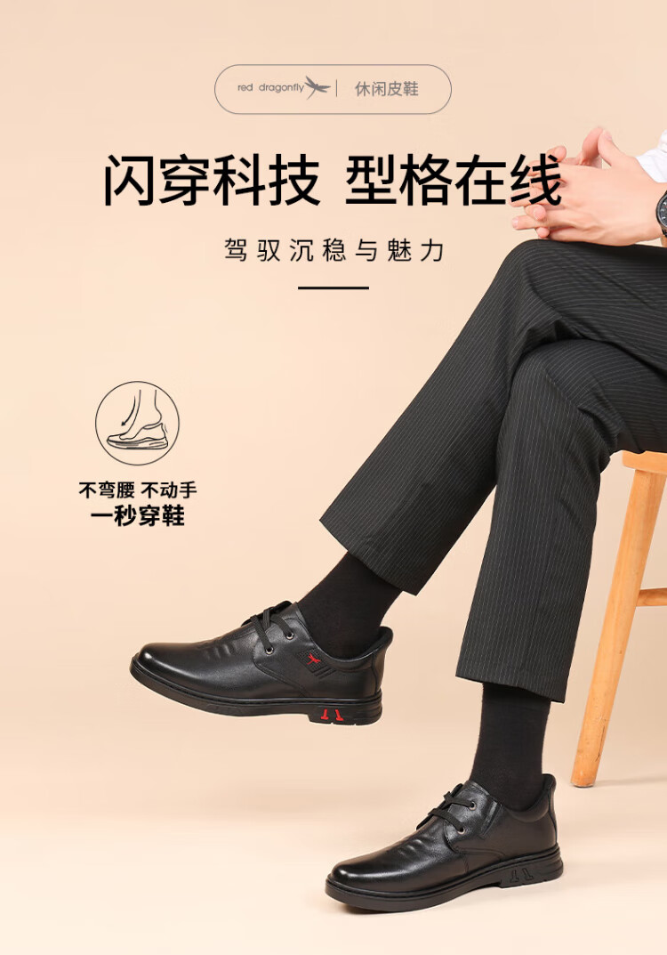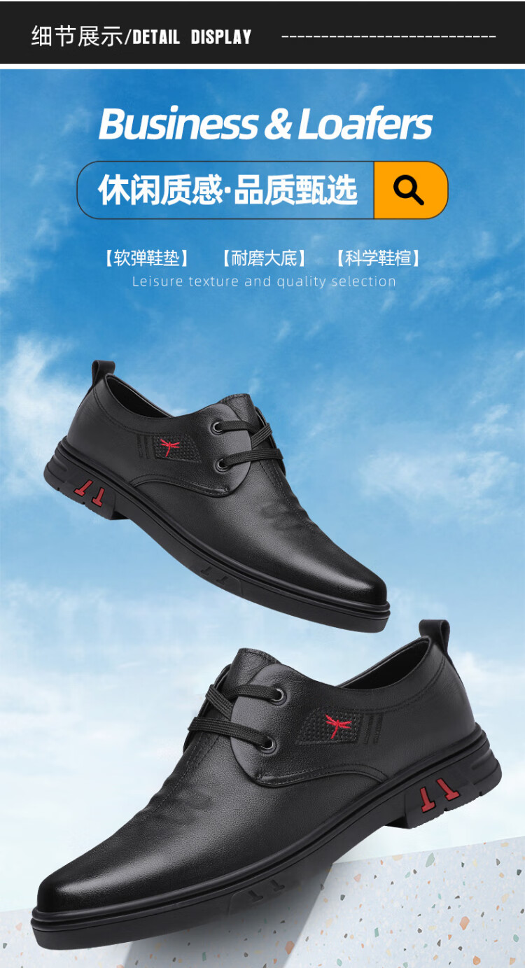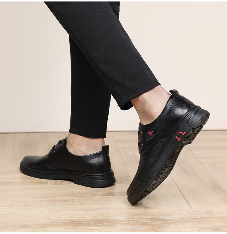 RED DRAGONFLY Men's Leather Shoes Men's Cowhide Breathable British Fashion Men's Business Casual Shoes Light Soft Sole Driving Dress Shoes Men WTA122681 Black 41