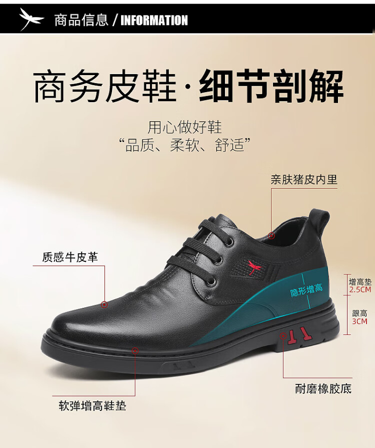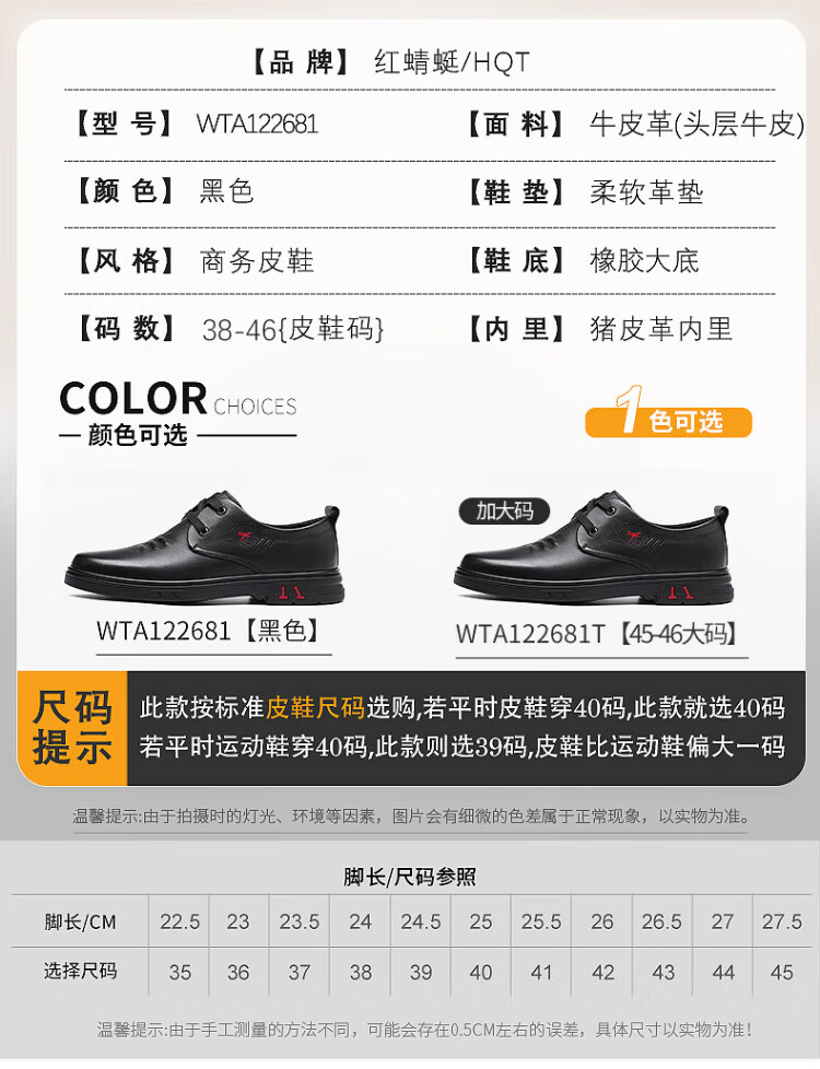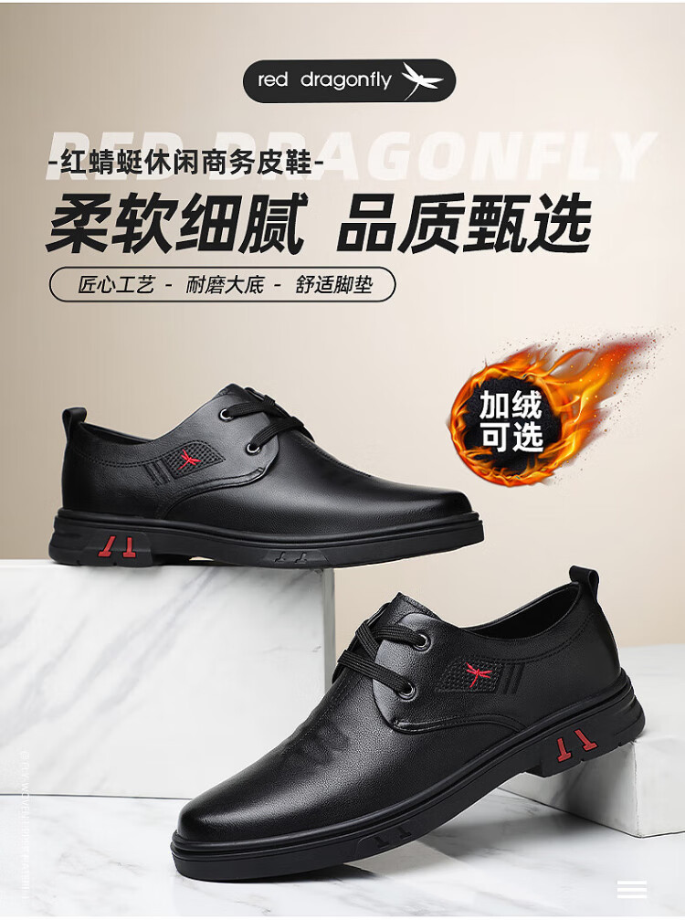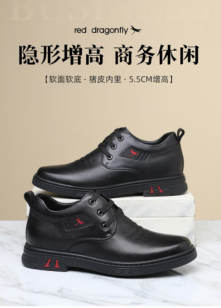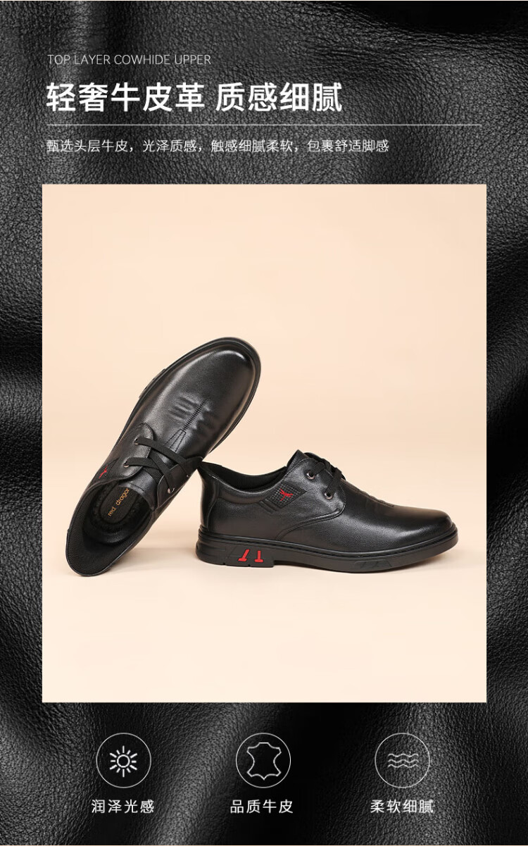 RED DRAGONFLY Men's Leather Shoes Men's Cowhide Breathable British Fashion Men's Business Casual Shoes Light Soft Sole Driving Dress Shoes Men WTA122681 Black 41