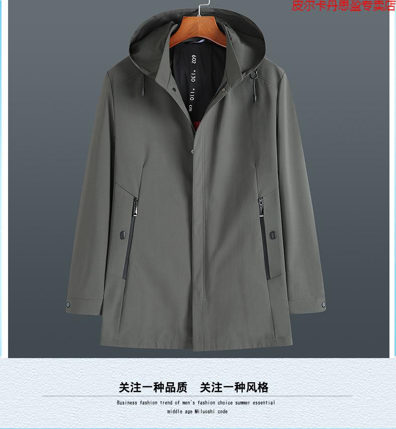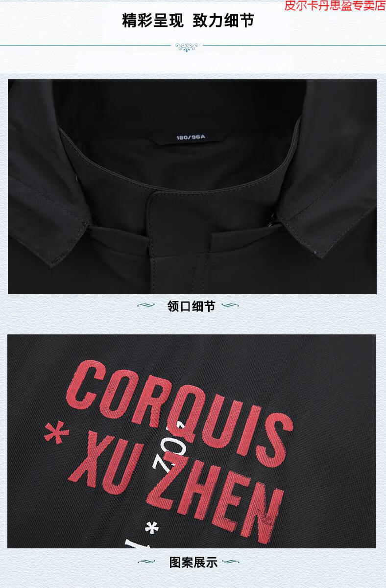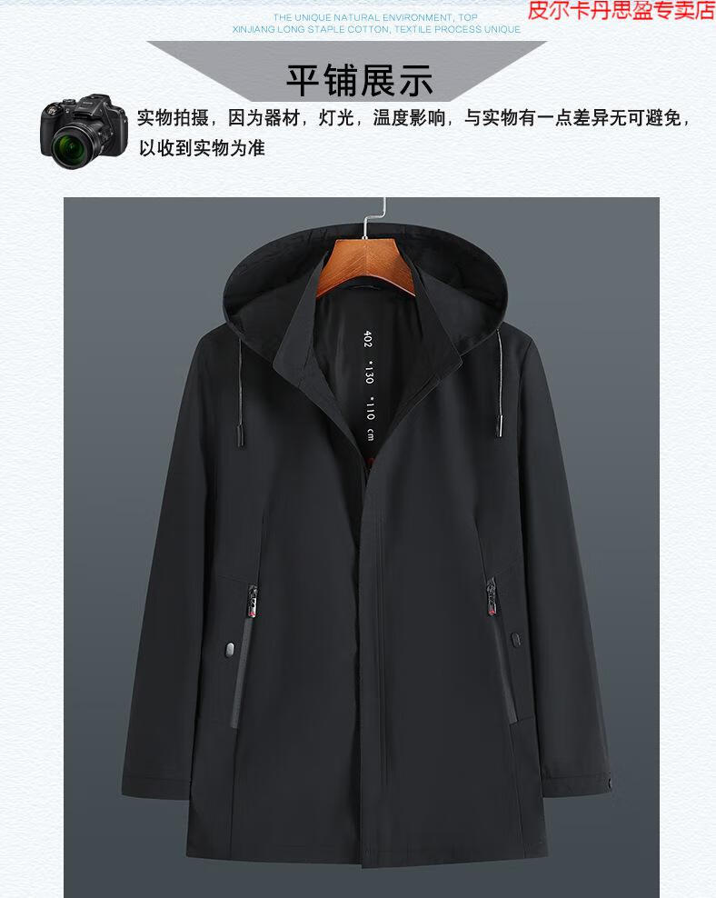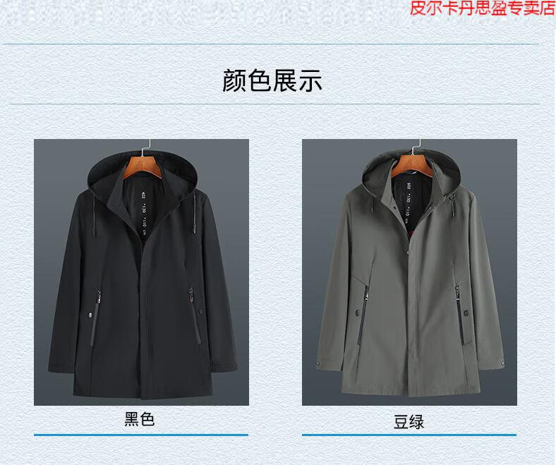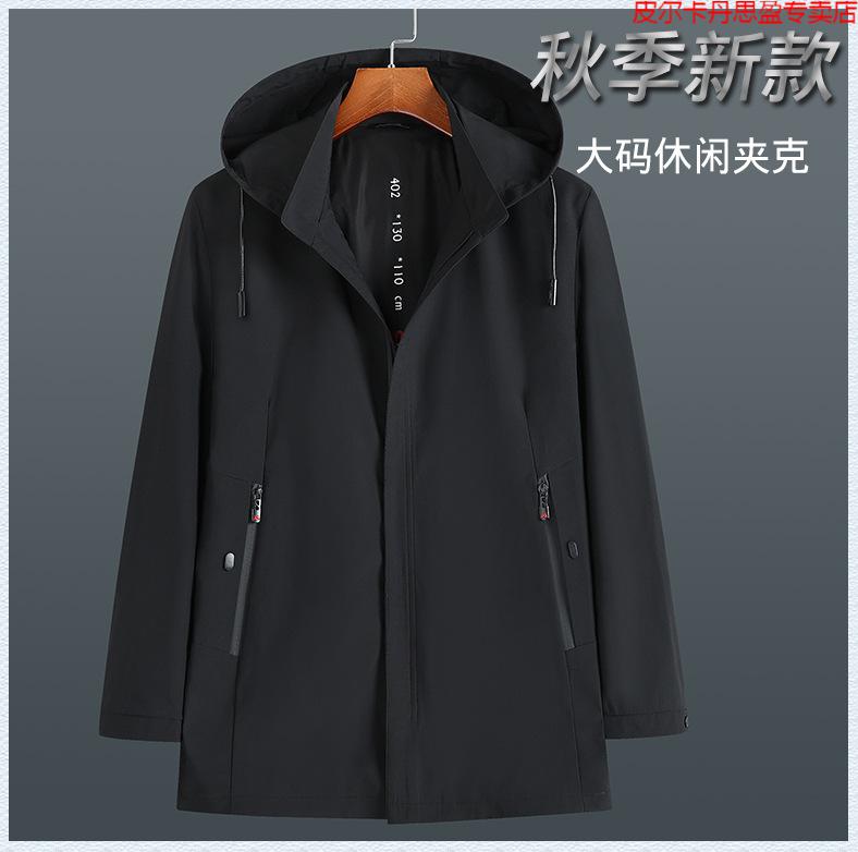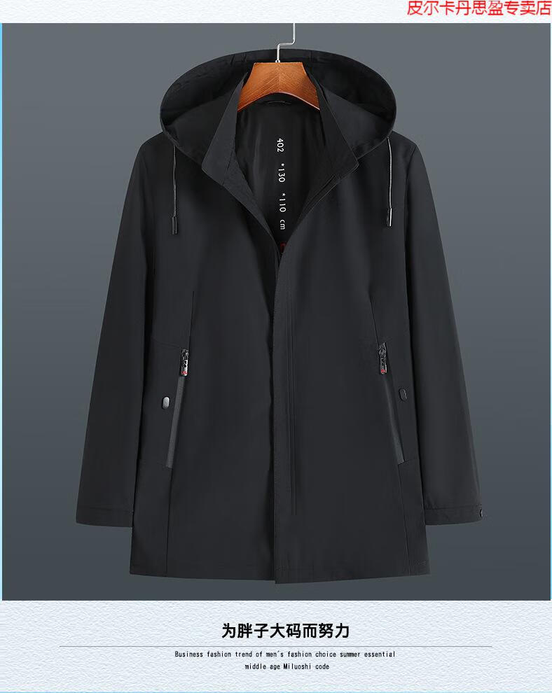 Pierre Cardin light luxury high-end plus size spring and autumn men's mid-length windbreaker plus fat extra large loose fat man coat removable hood windbreaker black 205