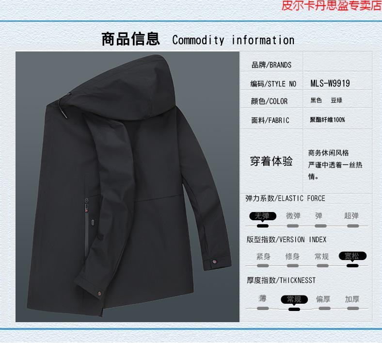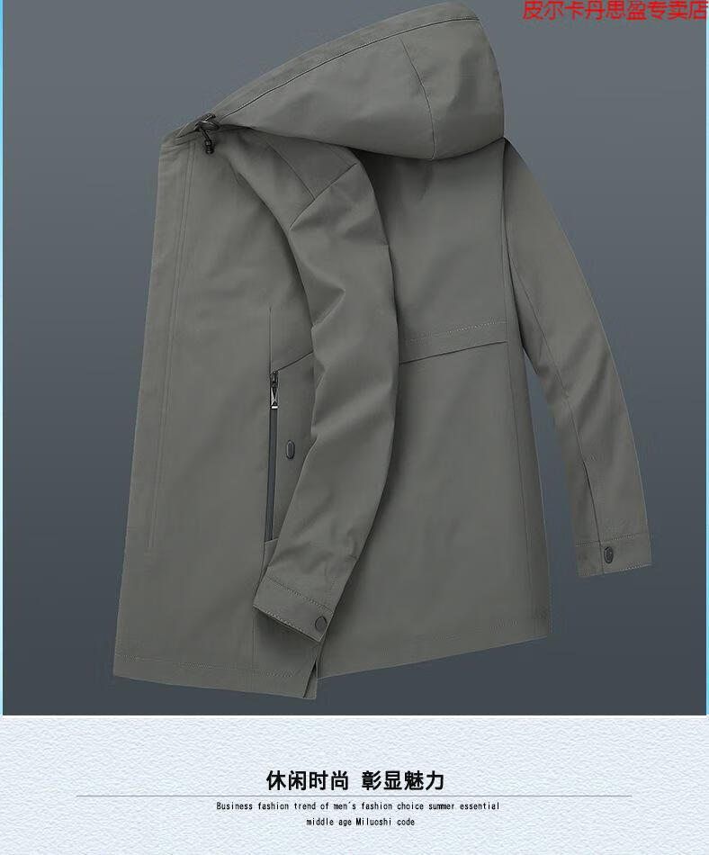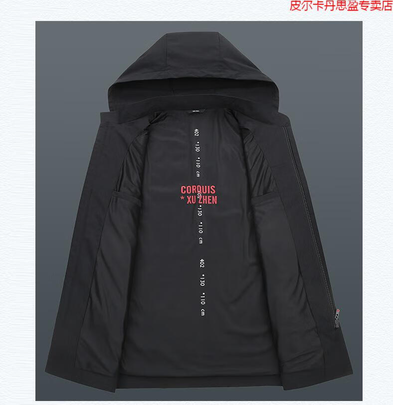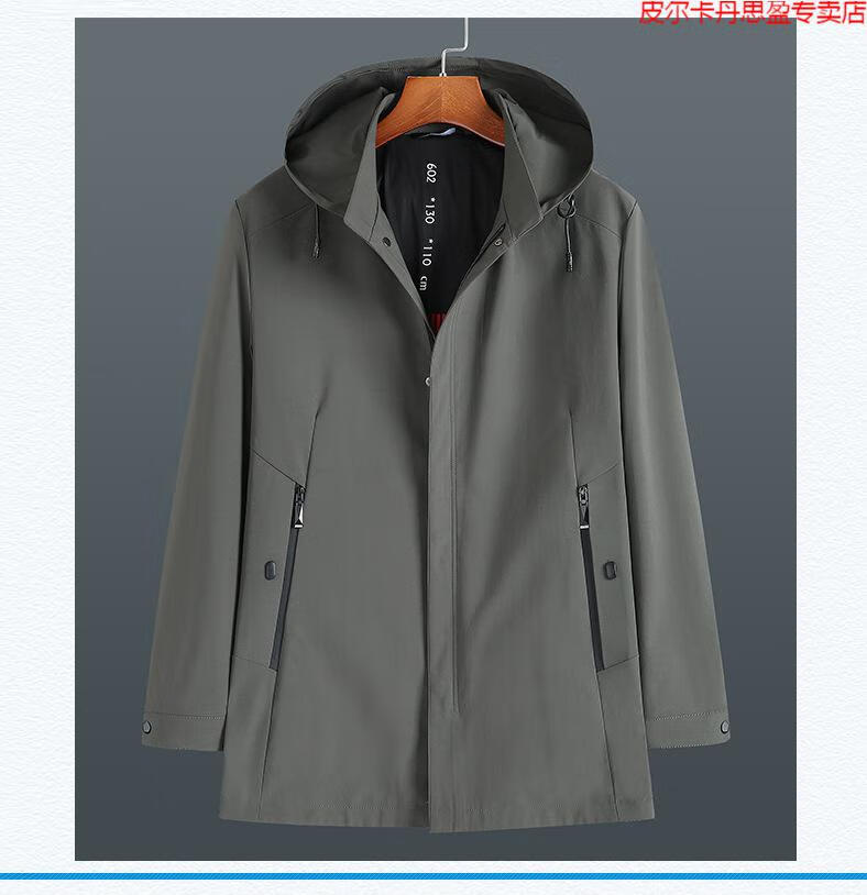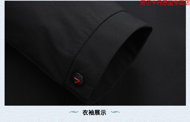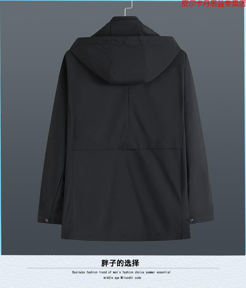 Pierre Cardin light luxury high-end plus size spring and autumn men's mid-length windbreaker plus fat extra large loose fat man coat removable hood windbreaker black 205