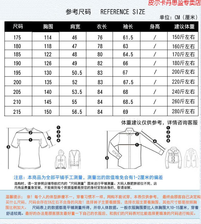 China (cm) 165 / 88-90 170 / 96-98 175 / 108-110 180 / 118-122 185 / 126-130