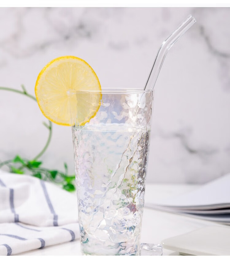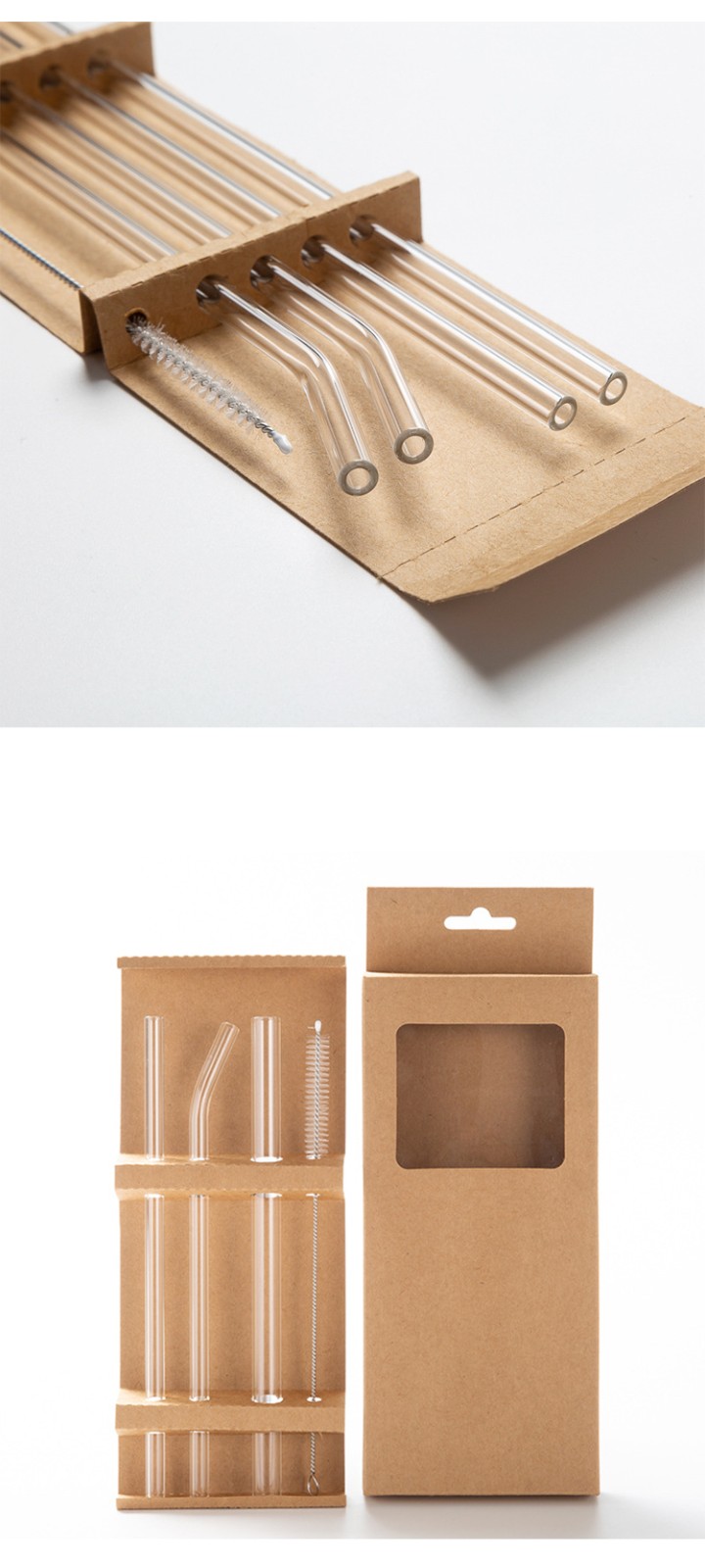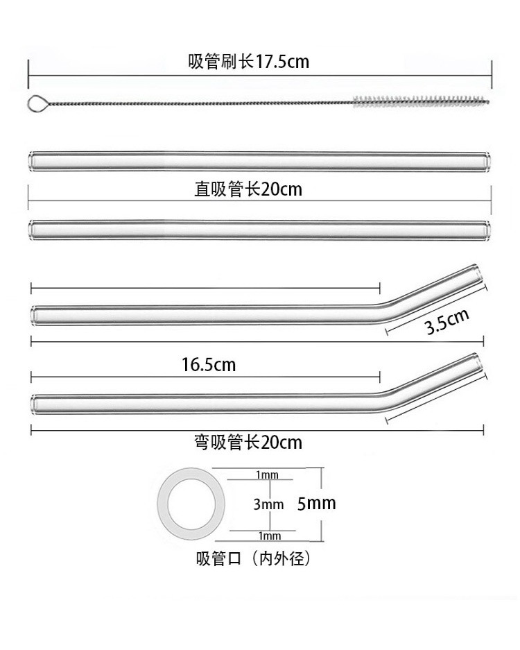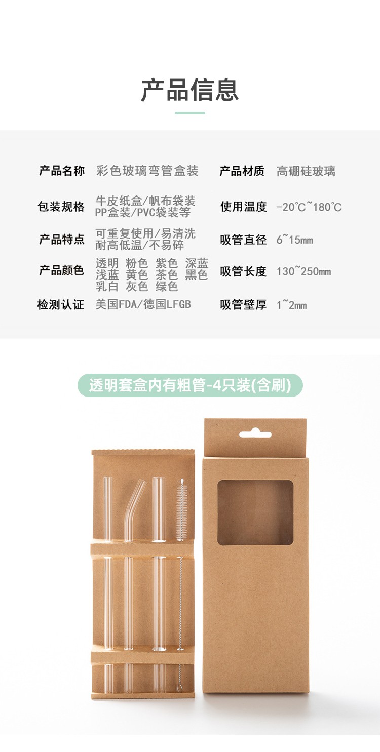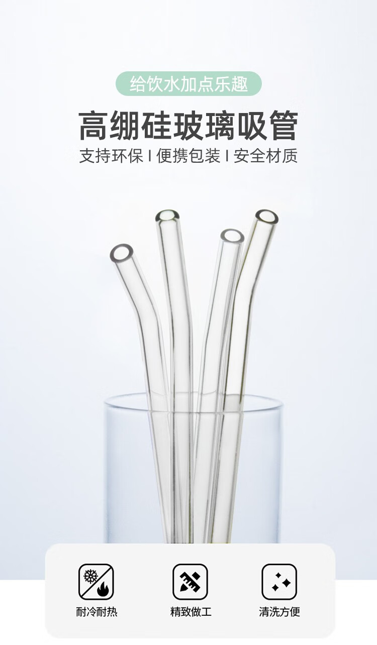 Can absorb boiling water, Poppy Bear high borosilicate transparent glass straw, non-disposable, reusable, heat-resistant and durable set, lipstick-proof, non-disposable, pregnant woman juice cleaning straw, four glass straws + straw brush, one box