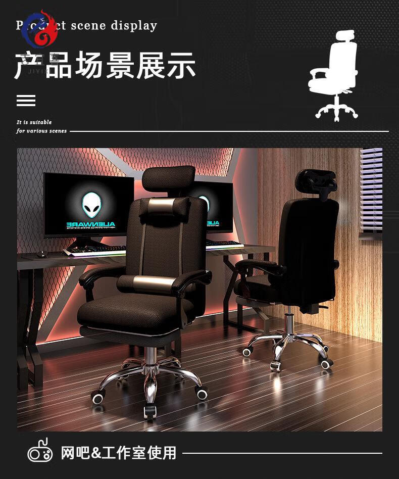 Computer chair, home backrest, dormitory college student esports chair, comfortable sedentary boss chair, esports office chair, upgraded thickening, reclining black - latex style - footrest