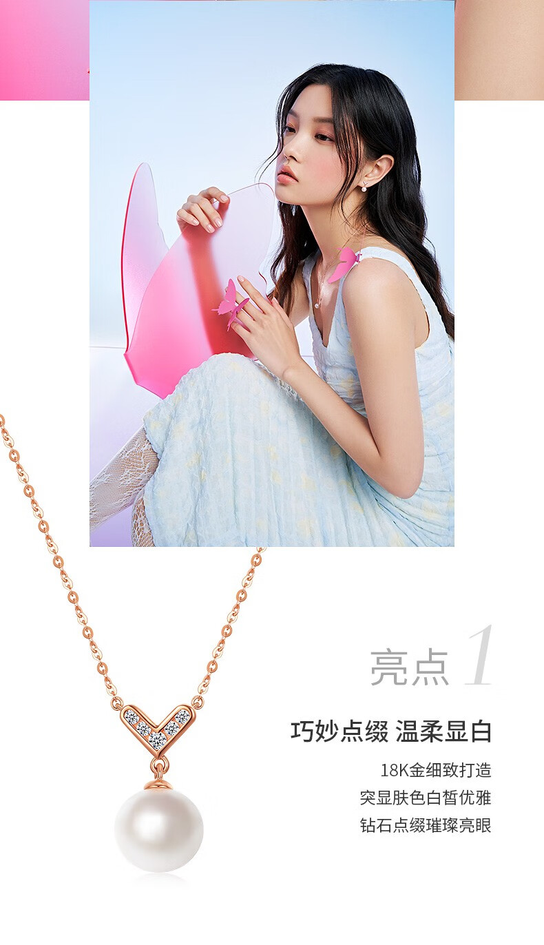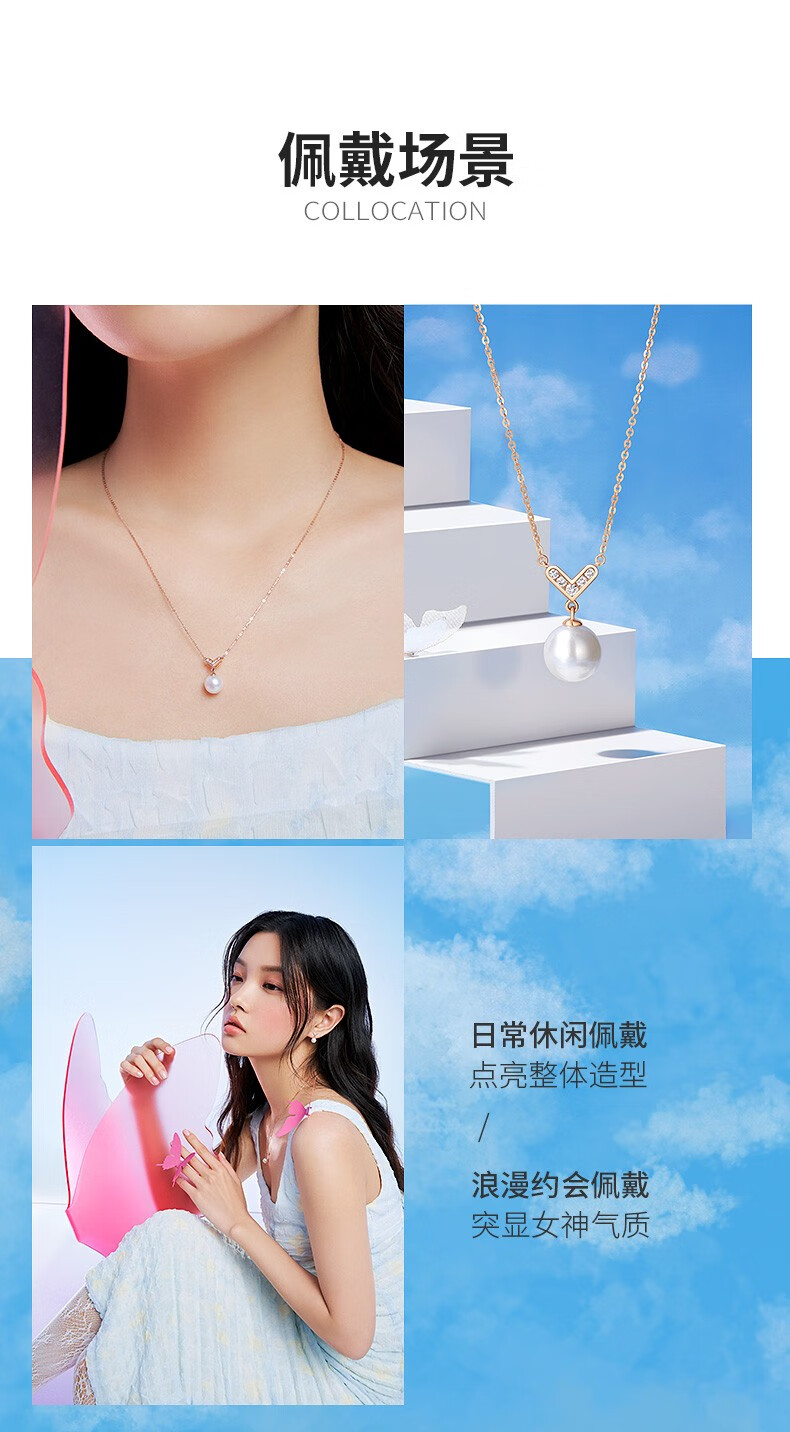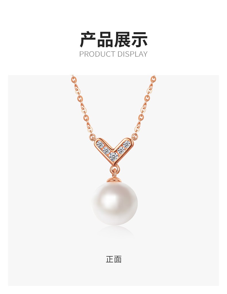 Xie Ruilin (TSL) 18K gold round pearl necklace women's rose gold diamond clavicle chain 64079 5 diamonds in total, about 7 minutes
