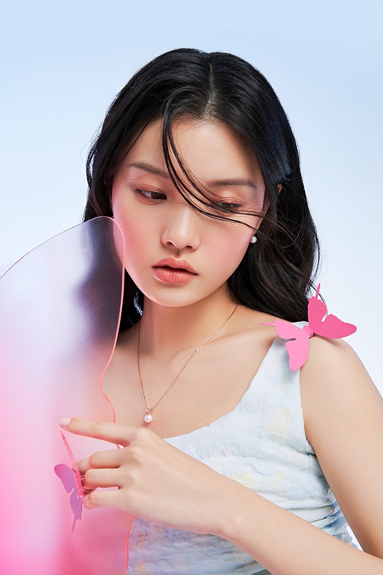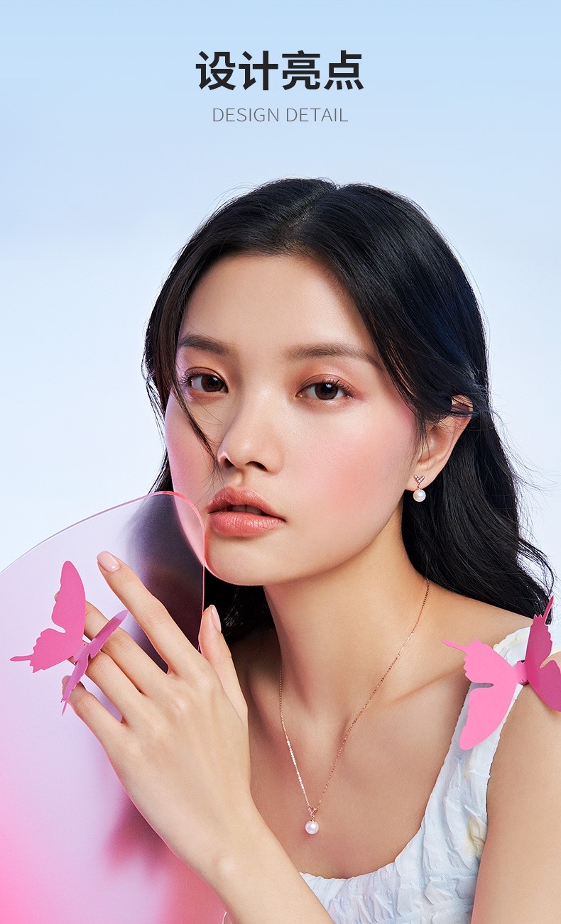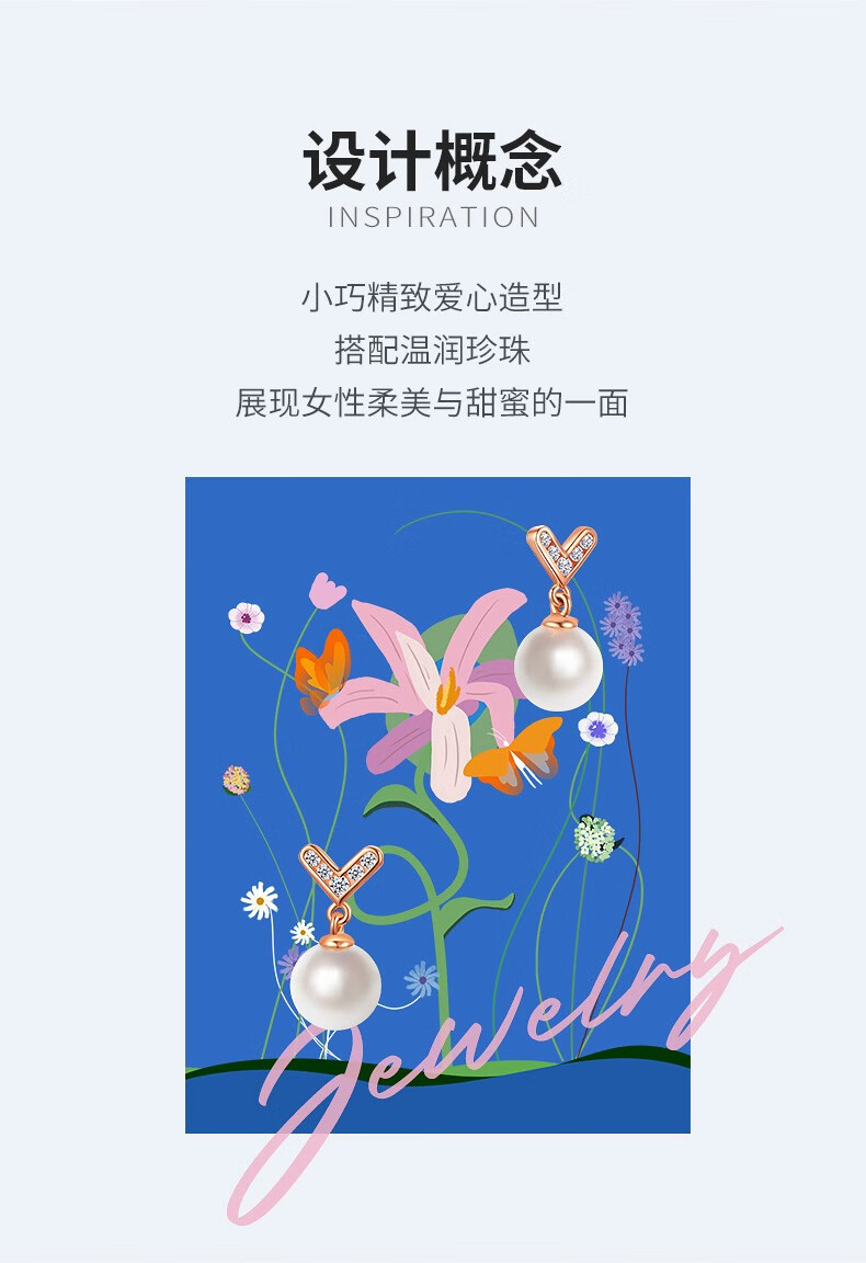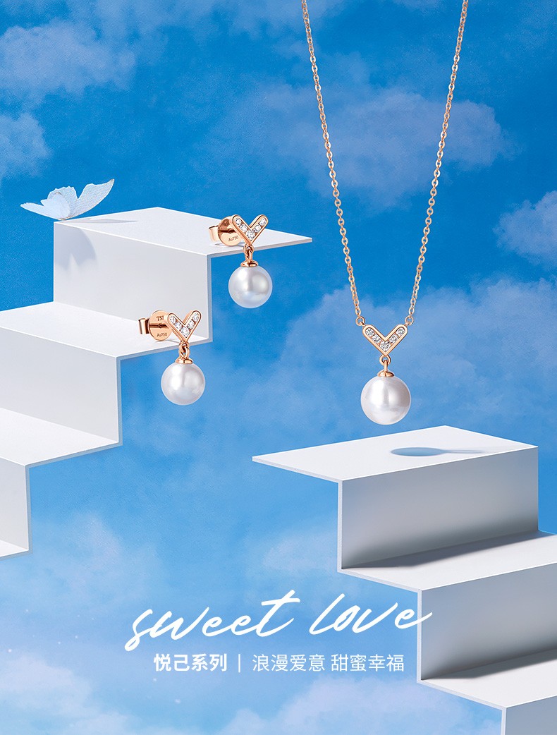 Xie Ruilin (TSL) 18K gold round pearl necklace women's rose gold diamond clavicle chain 64079 5 diamonds in total, about 7 minutes