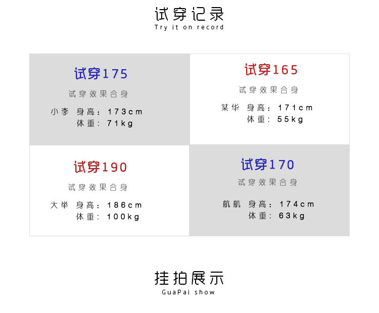 China (cm) 160-165/84-86 165-170 / 88-90 167-172 / 92-96 168-173 / 98-102 170-176 / 106-110
