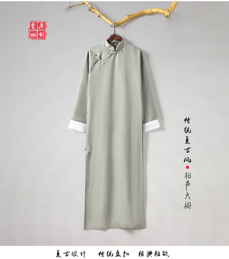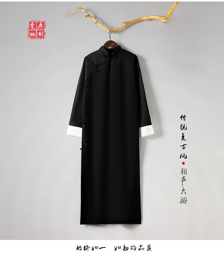 Lei Shixing crosstalk coat clothing men's May 4th youth wear Tang suit long gown robe Chinese style Republic of China student uniform class uniform allegro black 7XL (180 size)