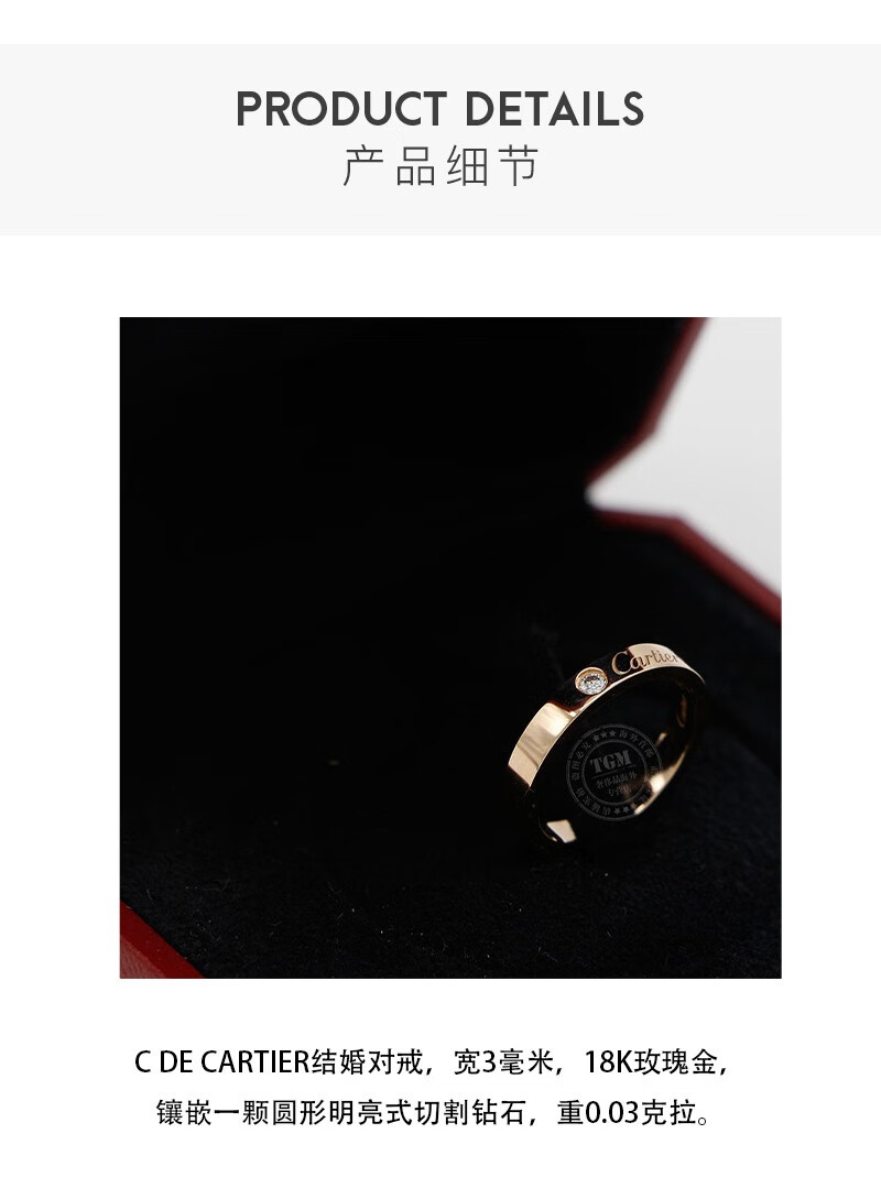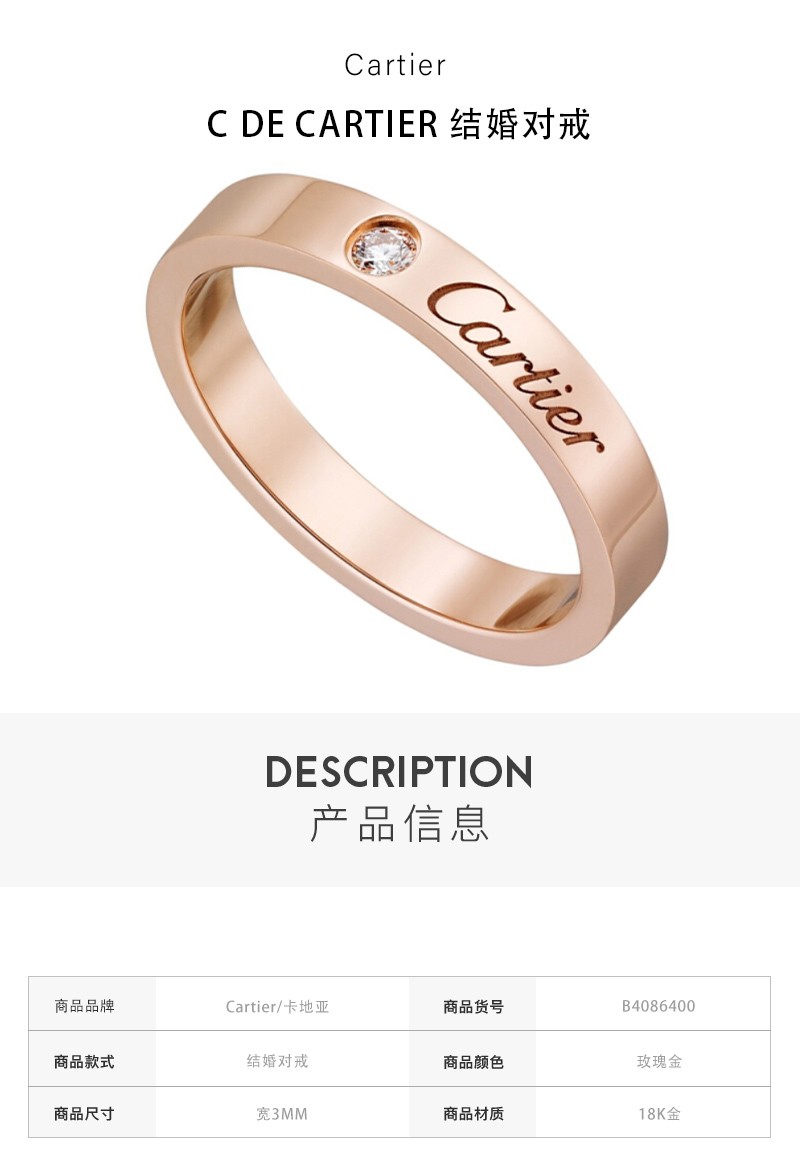 Cartier (Cartier) ring, same style for men and women, mm wide, set with 1 diamond CDECARTIER wedding Chinese Valentine's Day gift B4086400 18K rose gold 58