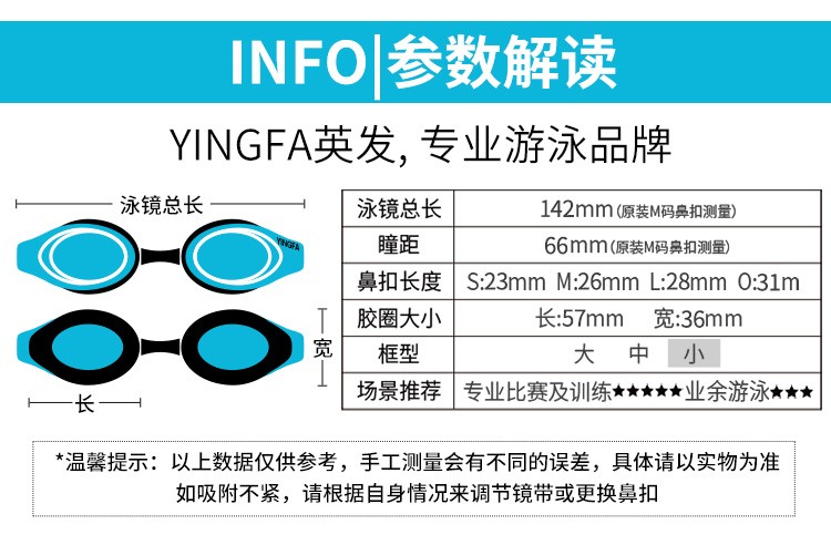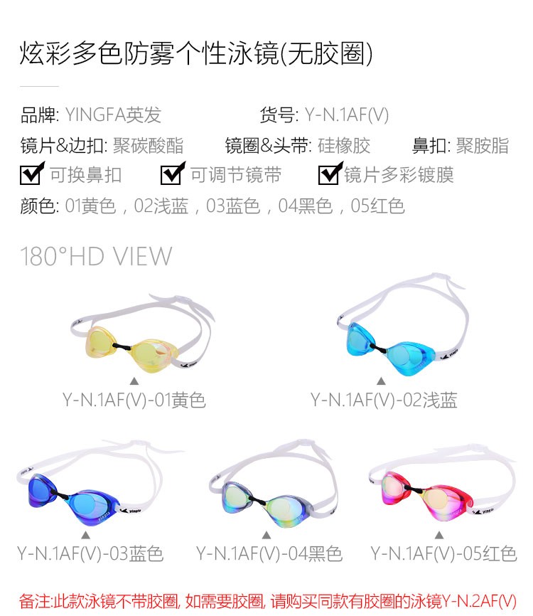 YINGFA small frame professional racing swimming goggles suitable for training and competition shell frame YN series swimming goggles Y-N.1AFV-04 (without mirror ring)