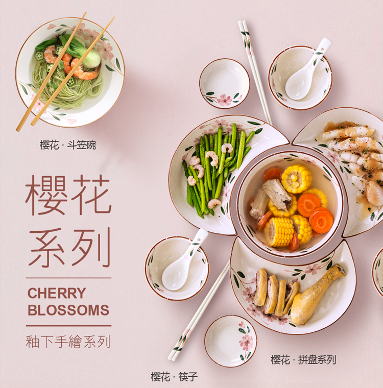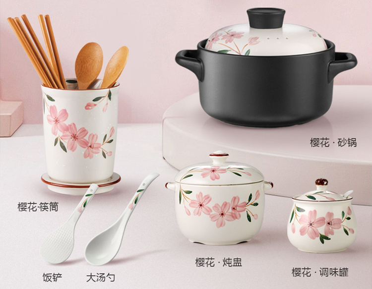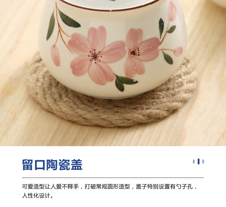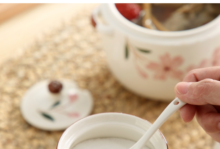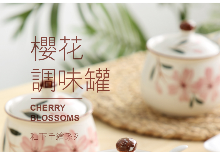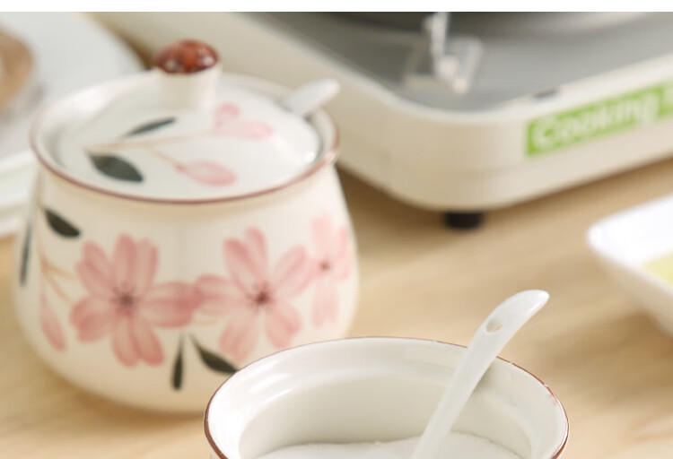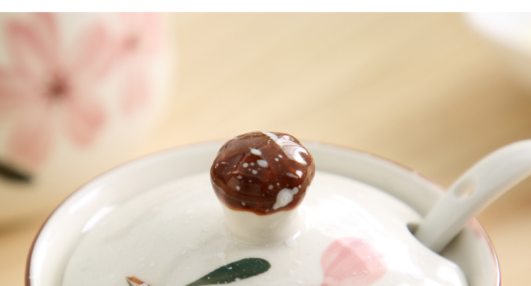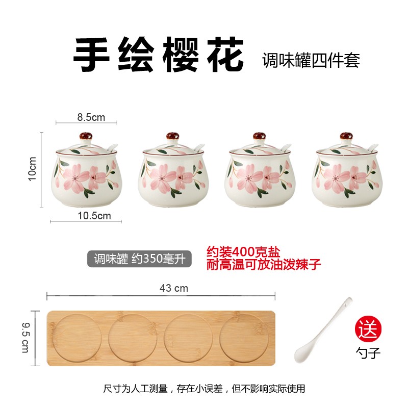 Duomeiran kitchen high-end seasoning jar ceramic salt jar chili jar household seasoning box seasoning bottle jar seasoning combination set Sakura three-piece set + ceramic plate