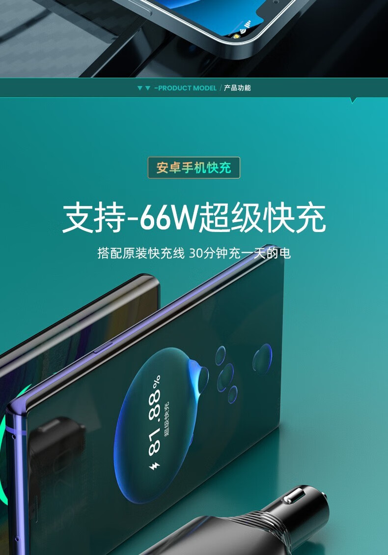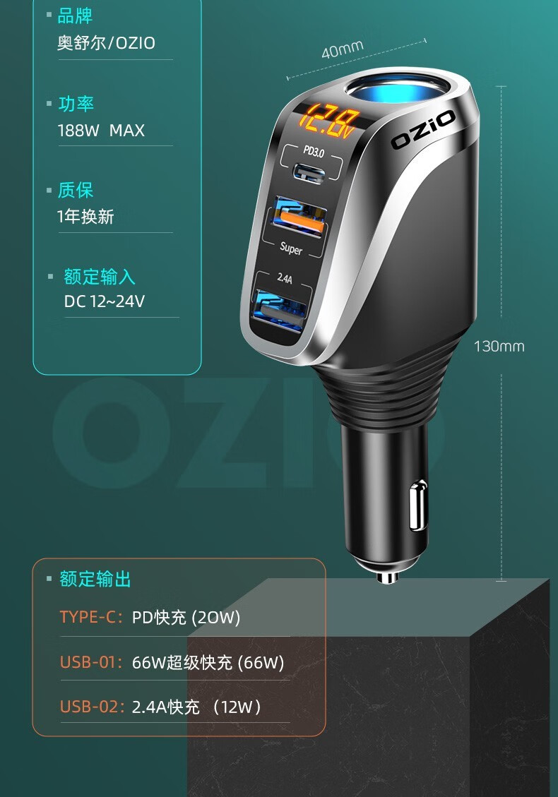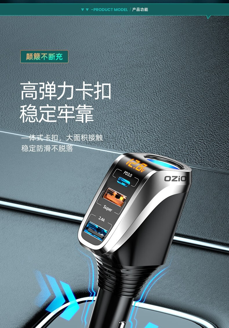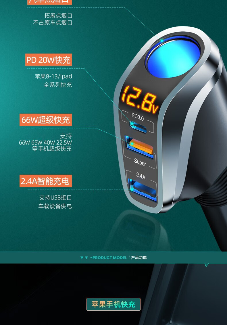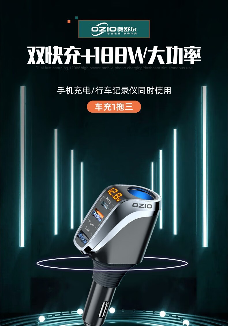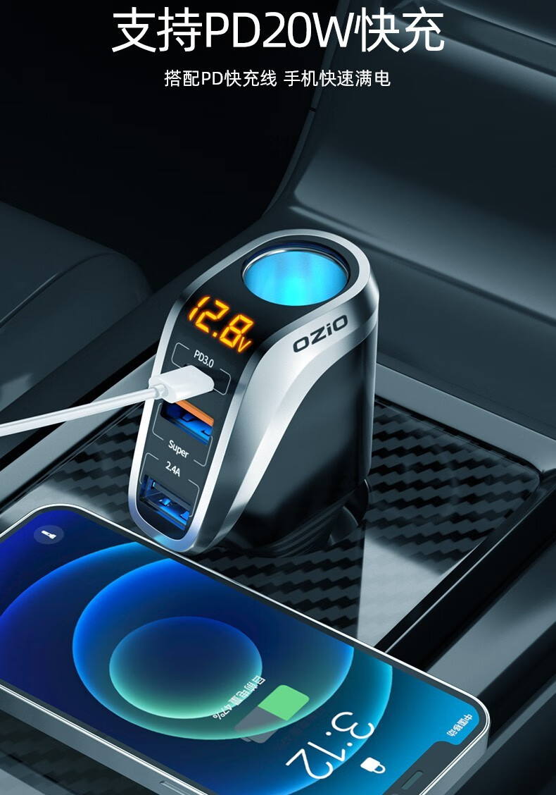 奥舒尔车载充电器66W超级快充汽车点烟器转换插头一拖三usb扩展口车充 【标准款】QC3.0快充+点烟口