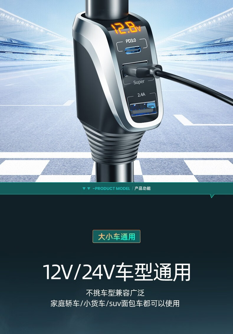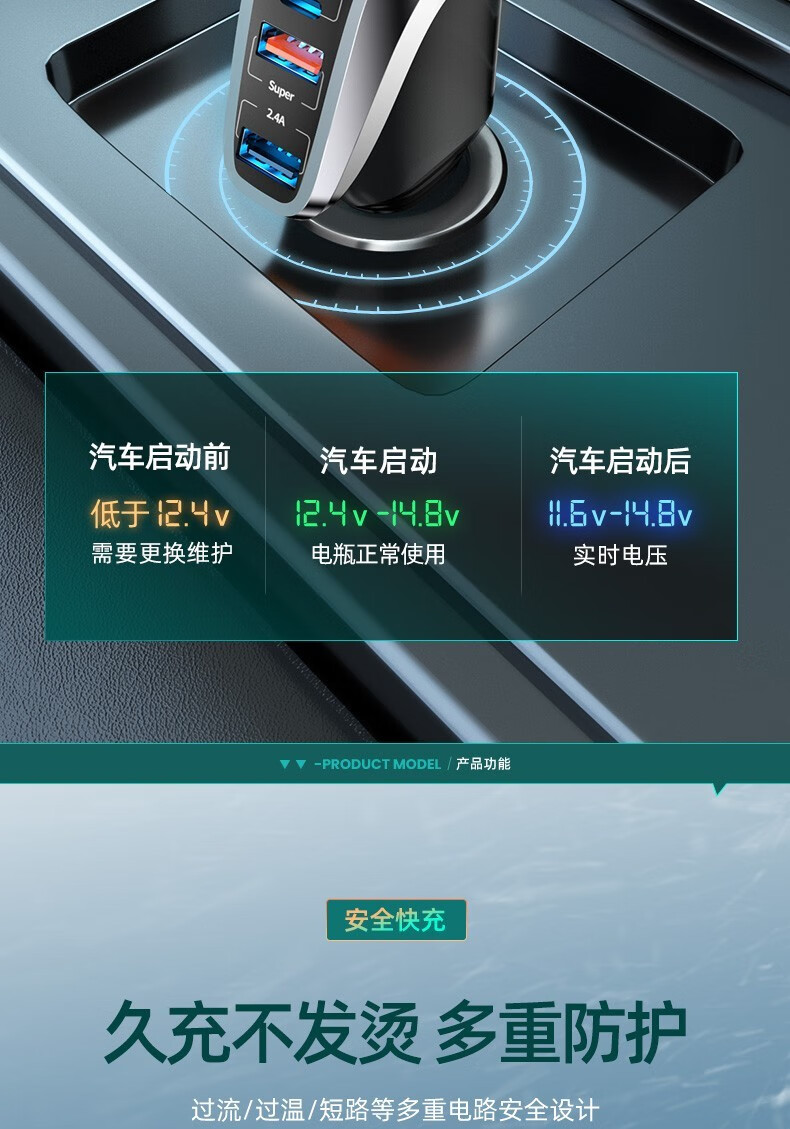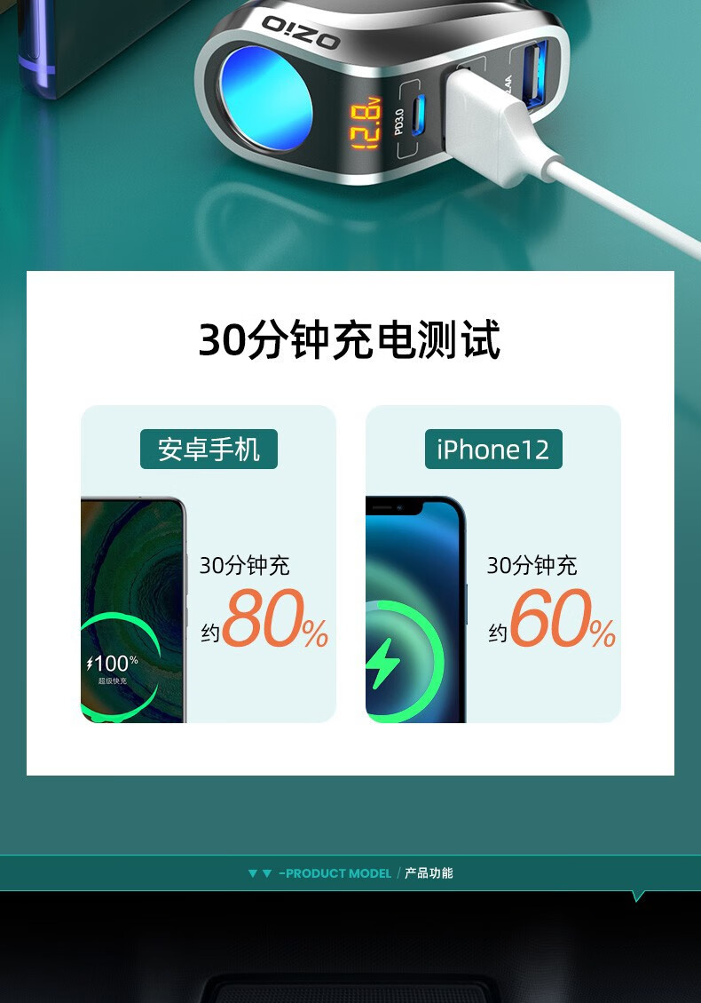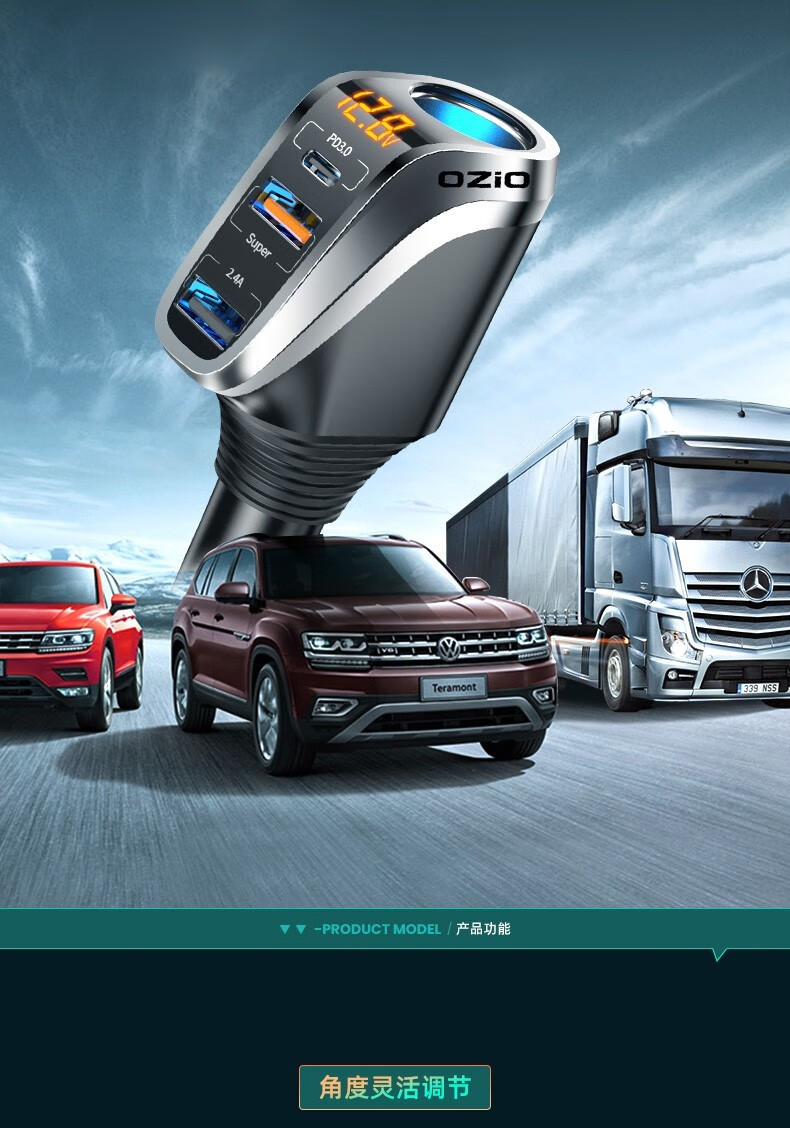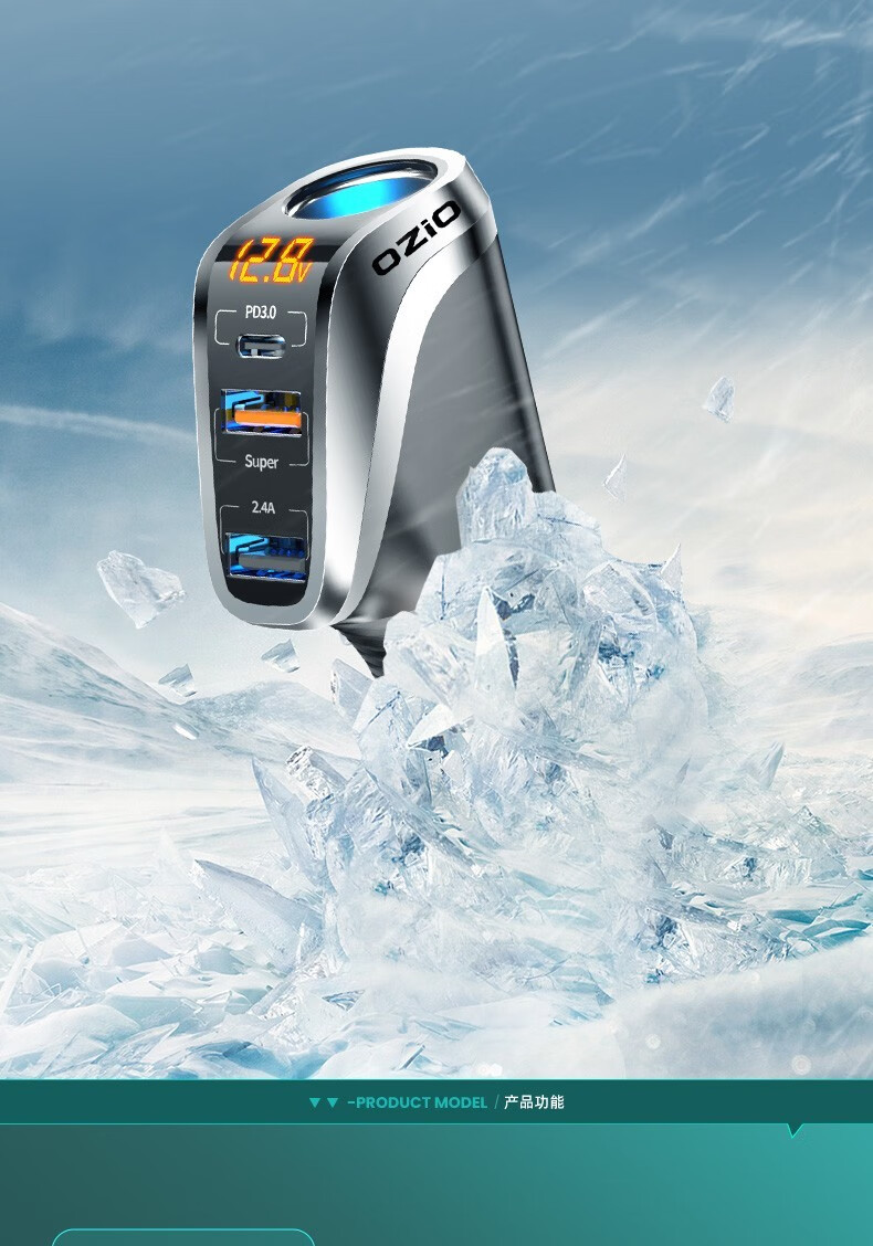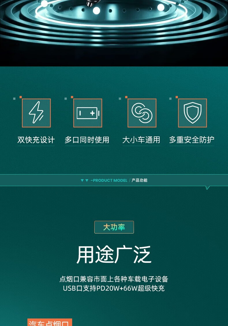 奥舒尔车载充电器66W超级快充汽车点烟器转换插头一拖三usb扩展口车充 【标准款】QC3.0快充+点烟口