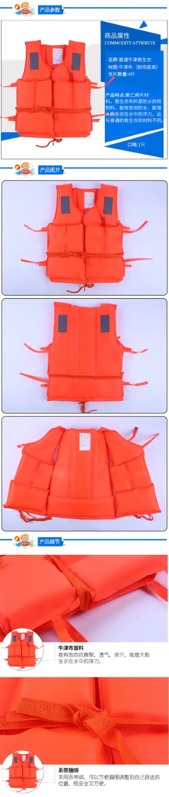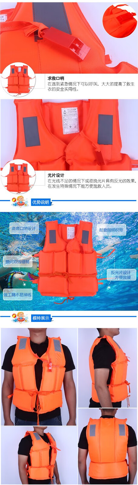 Tri-polar Outdoor Adult Marine Work Vest Foam Inflatable Flood-proof Maritime Life Jacket TP5006 Orange One Size