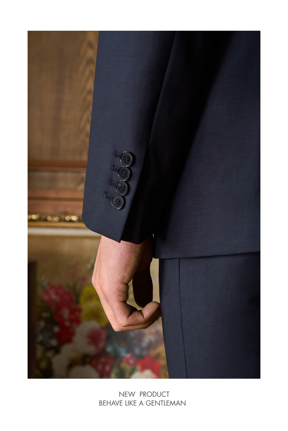Guillaume de Mons imported VBC Australian pure wool suit suit men's business formal dress groom wedding dress suit complete set for men black top + trousers 50 tops and trousers size please note