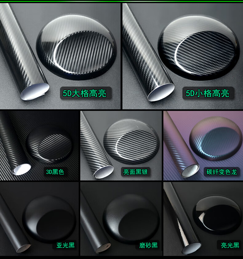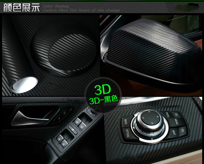 Yacheng Automobile Carbon Fiber Black Film 3D Interior Center Control Sticker 5D Column Body Roof Sub-Glossy Matte Color Changing Film Thickened 3D Carbon Fiber Black 0.5m*1m