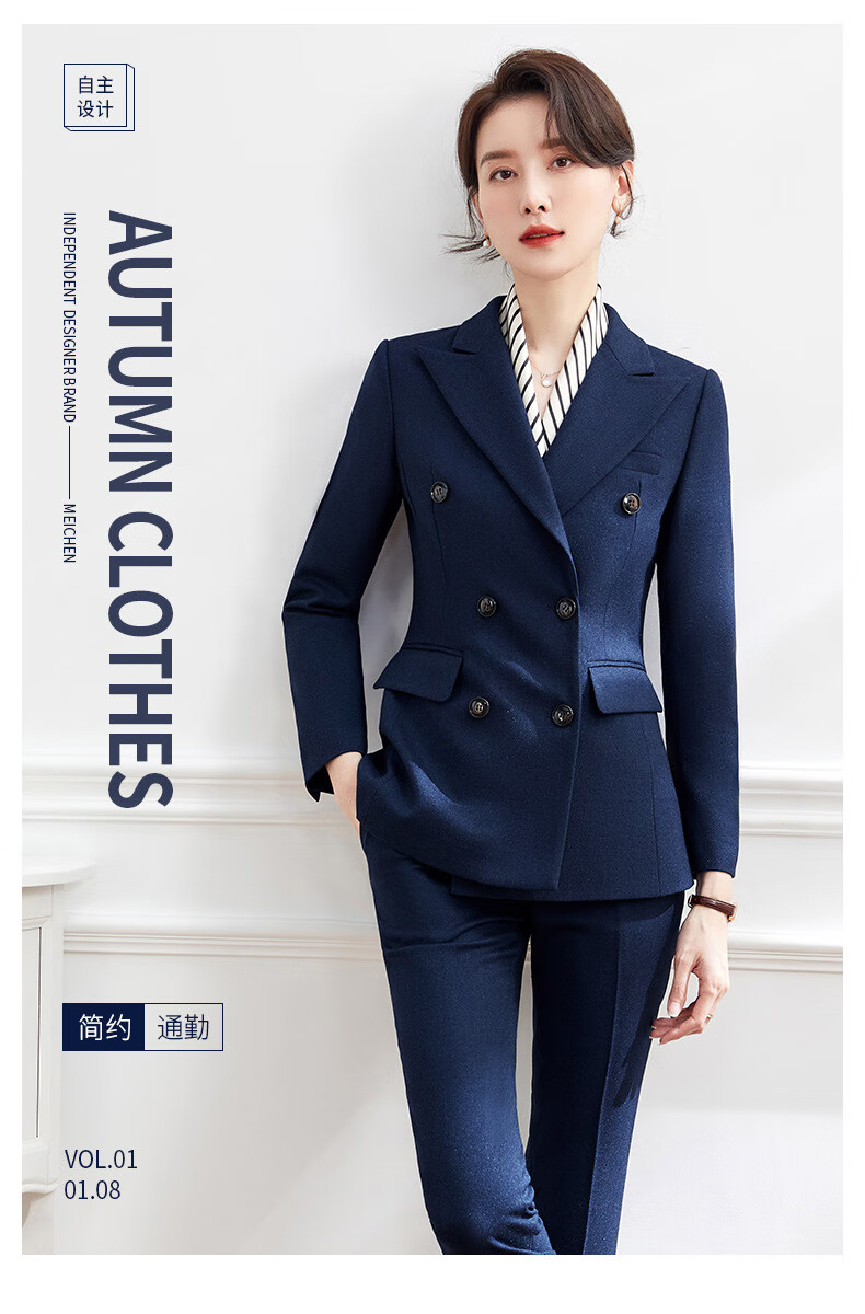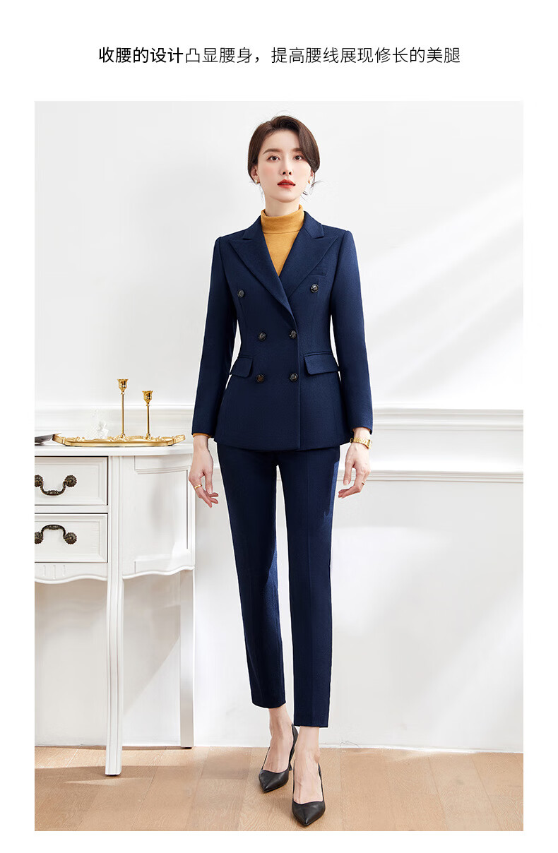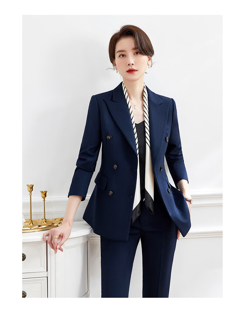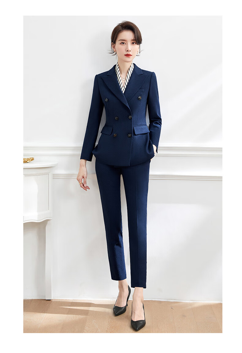 Luo Meng's professional attire, goddess style suit, fashionable suit, formal wear for women, Korean style interview work clothes, spring, autumn and winter thick work clothes, dark blue suit jacket + pants M