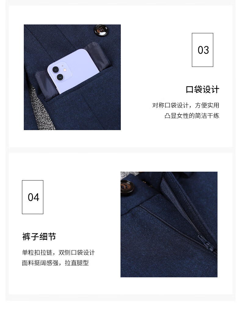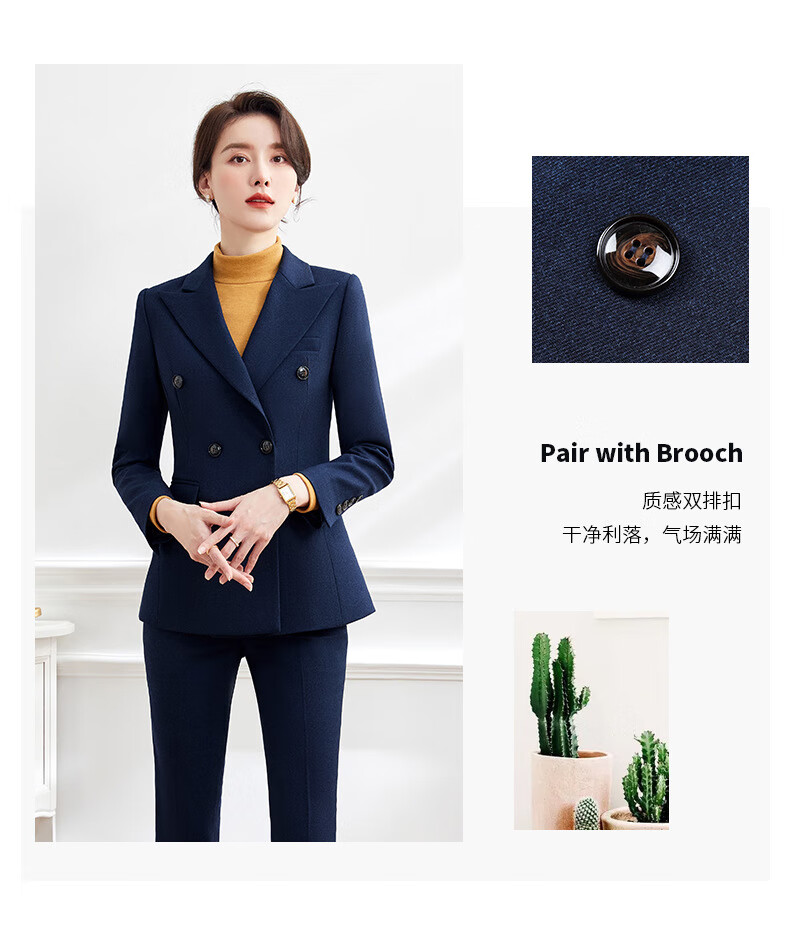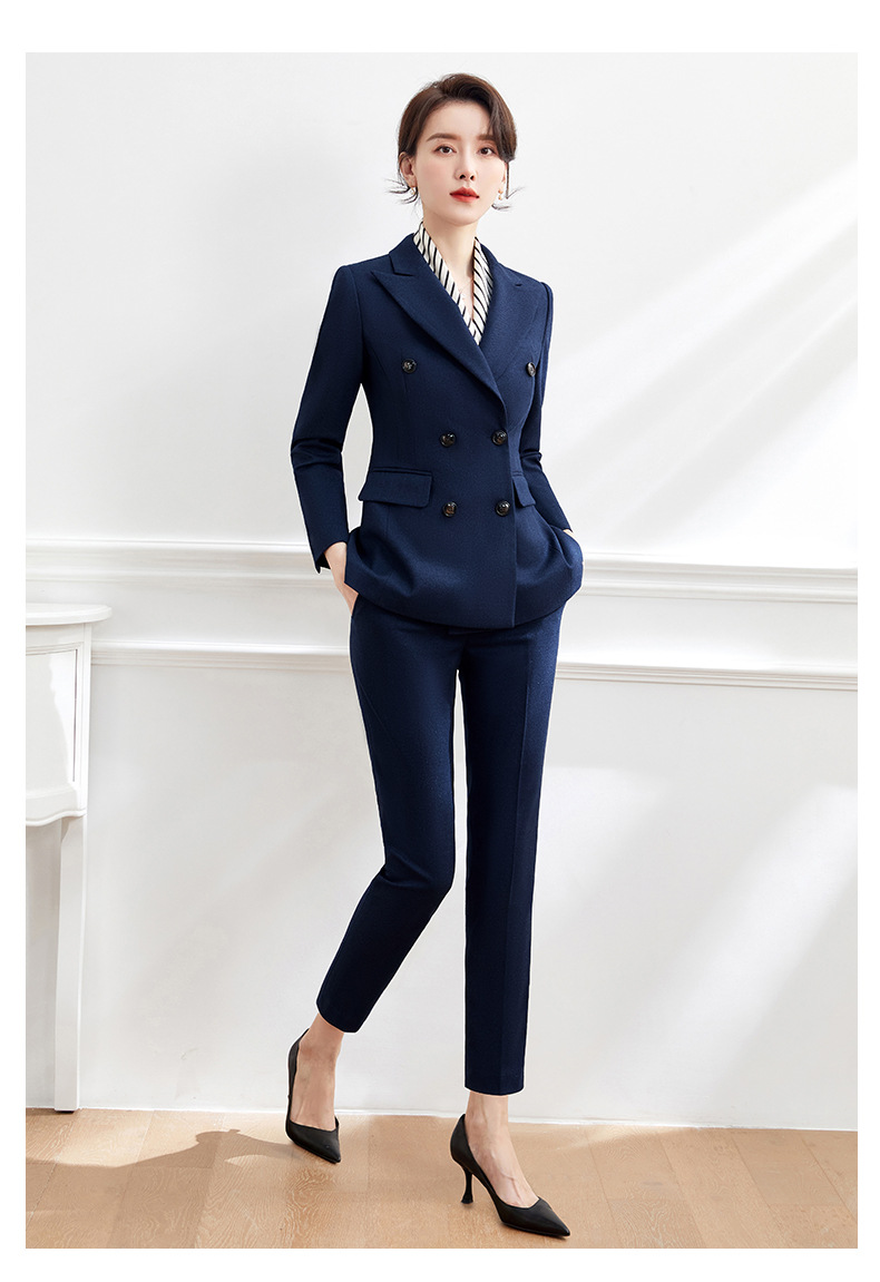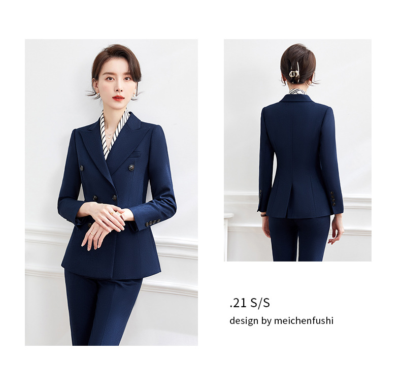 Luo Meng's professional attire, goddess style suit, fashionable suit, formal wear for women, Korean style interview work clothes, spring, autumn and winter thick work clothes, dark blue suit jacket + pants M