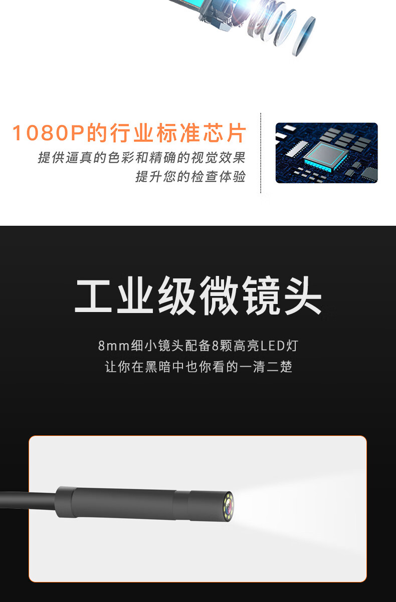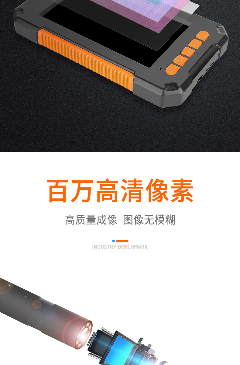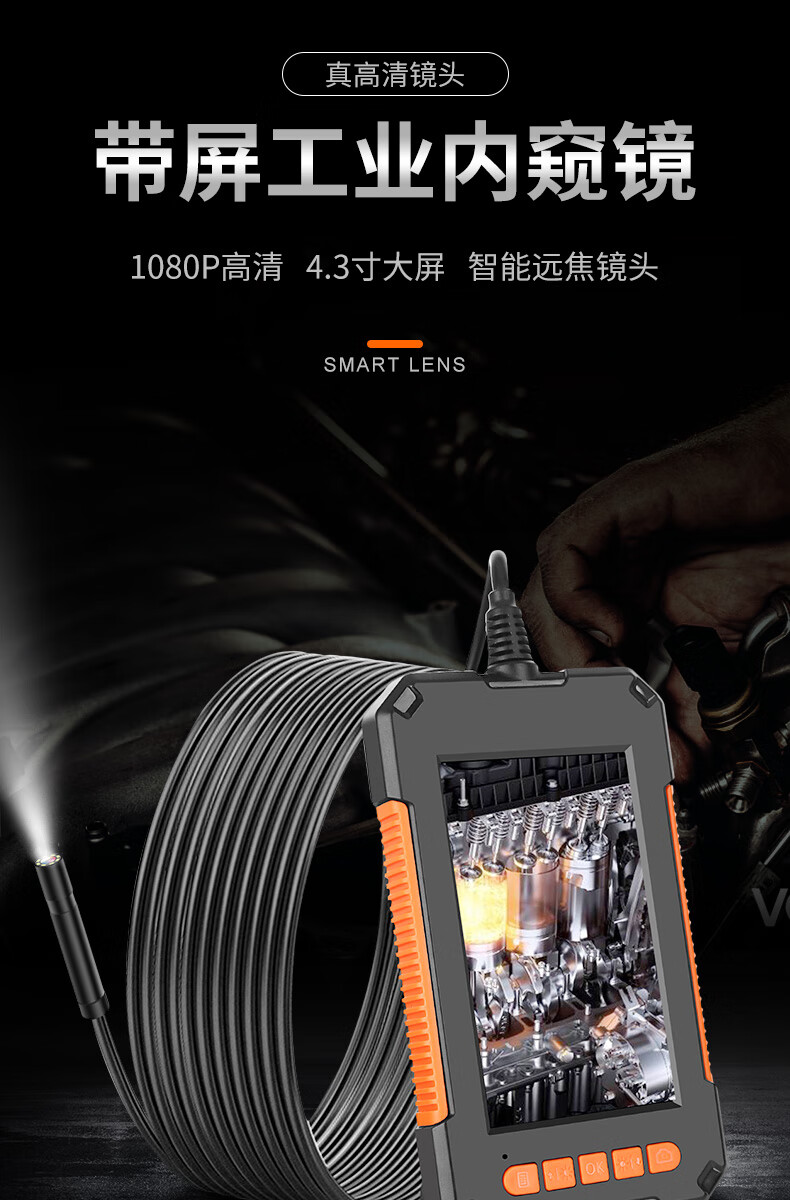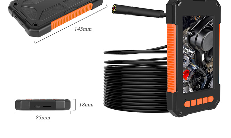 ZCF Industrial Endoscope HD Camera Car Maintenance Sewer Pipe Inspection Endoscope with Screen Photo Camera Waterproof and Oil-proof Detection Instrument Auto Repair Peep Mirror Probe P40-8mm-10 Meter Hard Wire-Orange 32G Memory Card