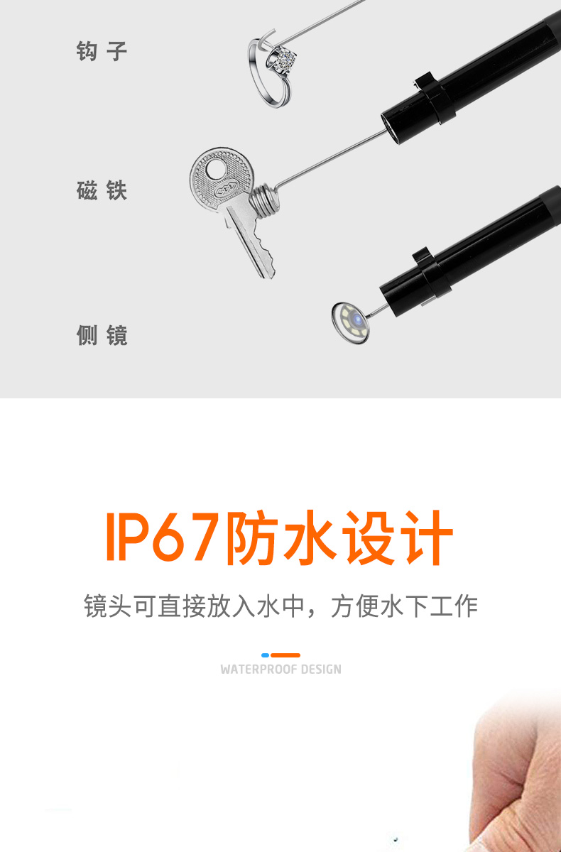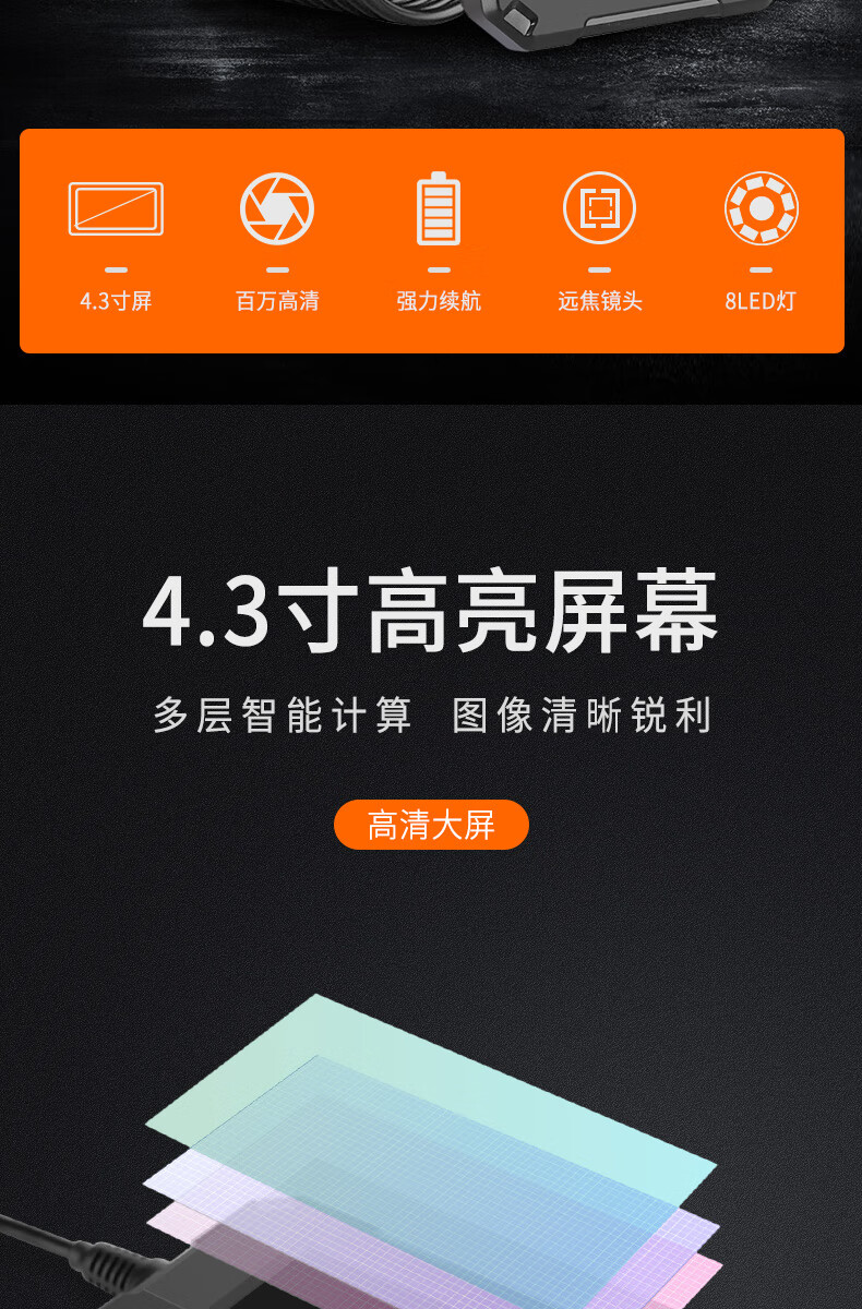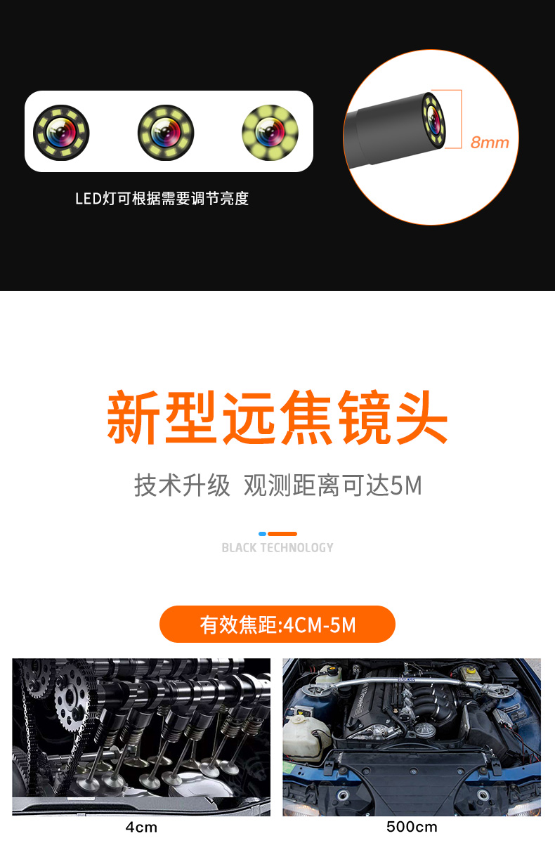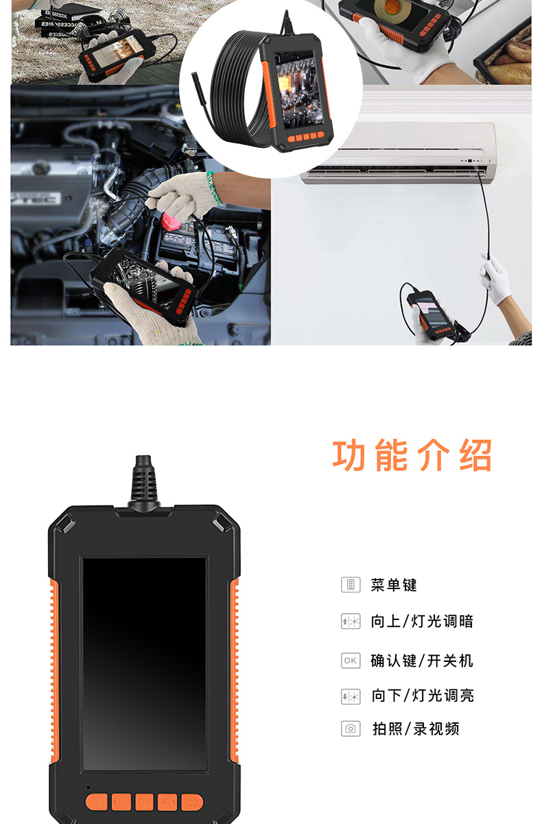 ZCF Industrial Endoscope HD Camera Car Maintenance Sewer Pipe Inspection Endoscope with Screen Photo Camera Waterproof and Oil-proof Detection Instrument Auto Repair Peep Mirror Probe P40-8mm-10 Meter Hard Wire-Orange 32G Memory Card