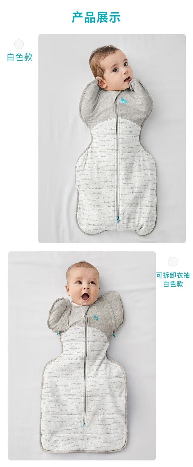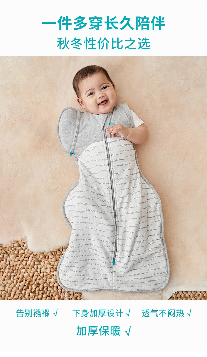 LOVE TO DREAM Anti-jump Sleeping Bag Newborn Baby Autumn and Winter Thickened Warm Swaddle Sleeping Bag Children's Surrender Anti-Kick Quilt White Detachable Sleeve Autumn and Winter Warmth 2.5TOG L Size 12-20Jin Jin equals 0.5kg